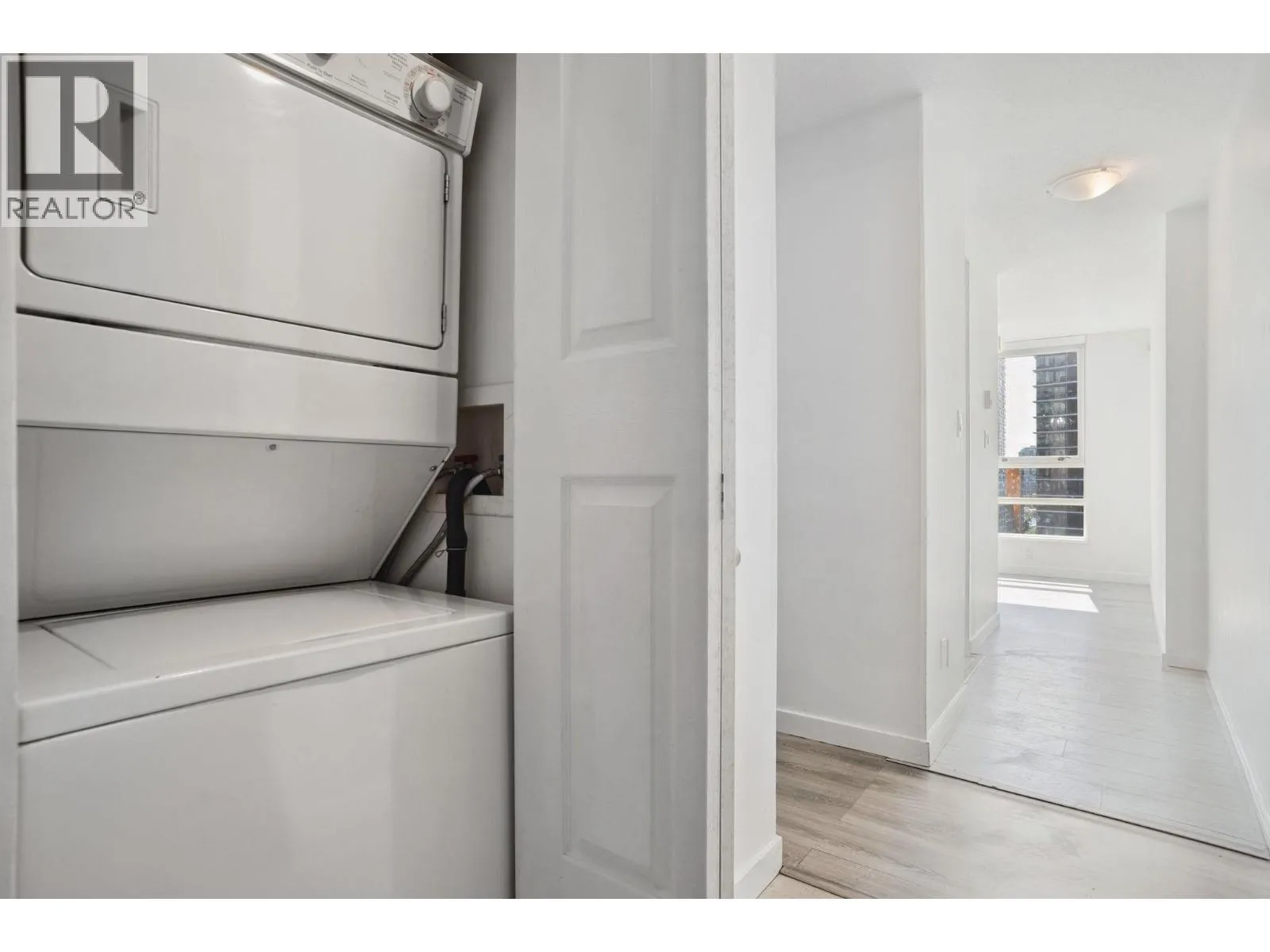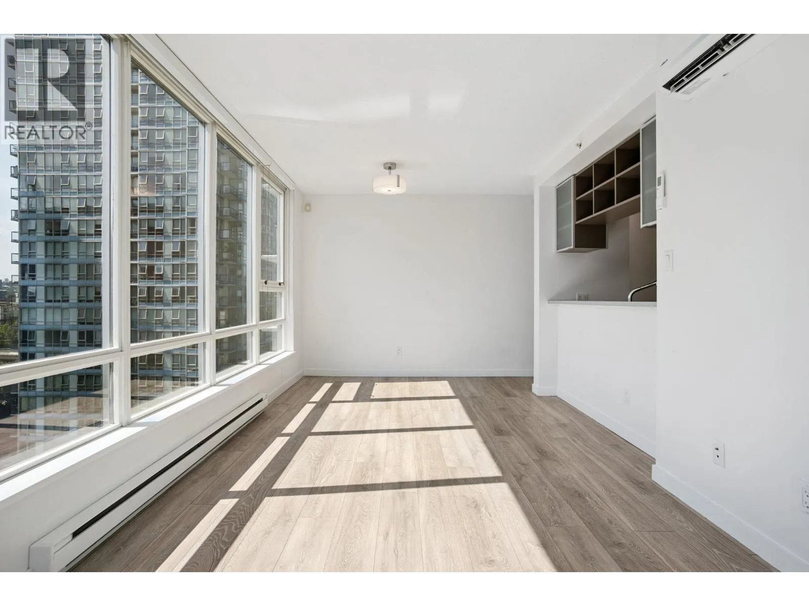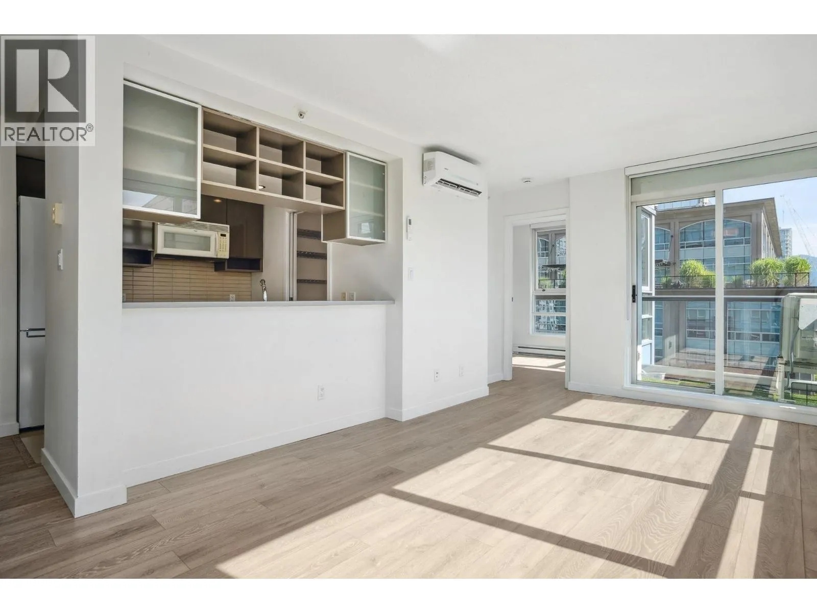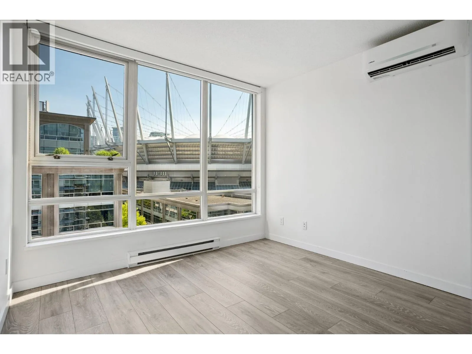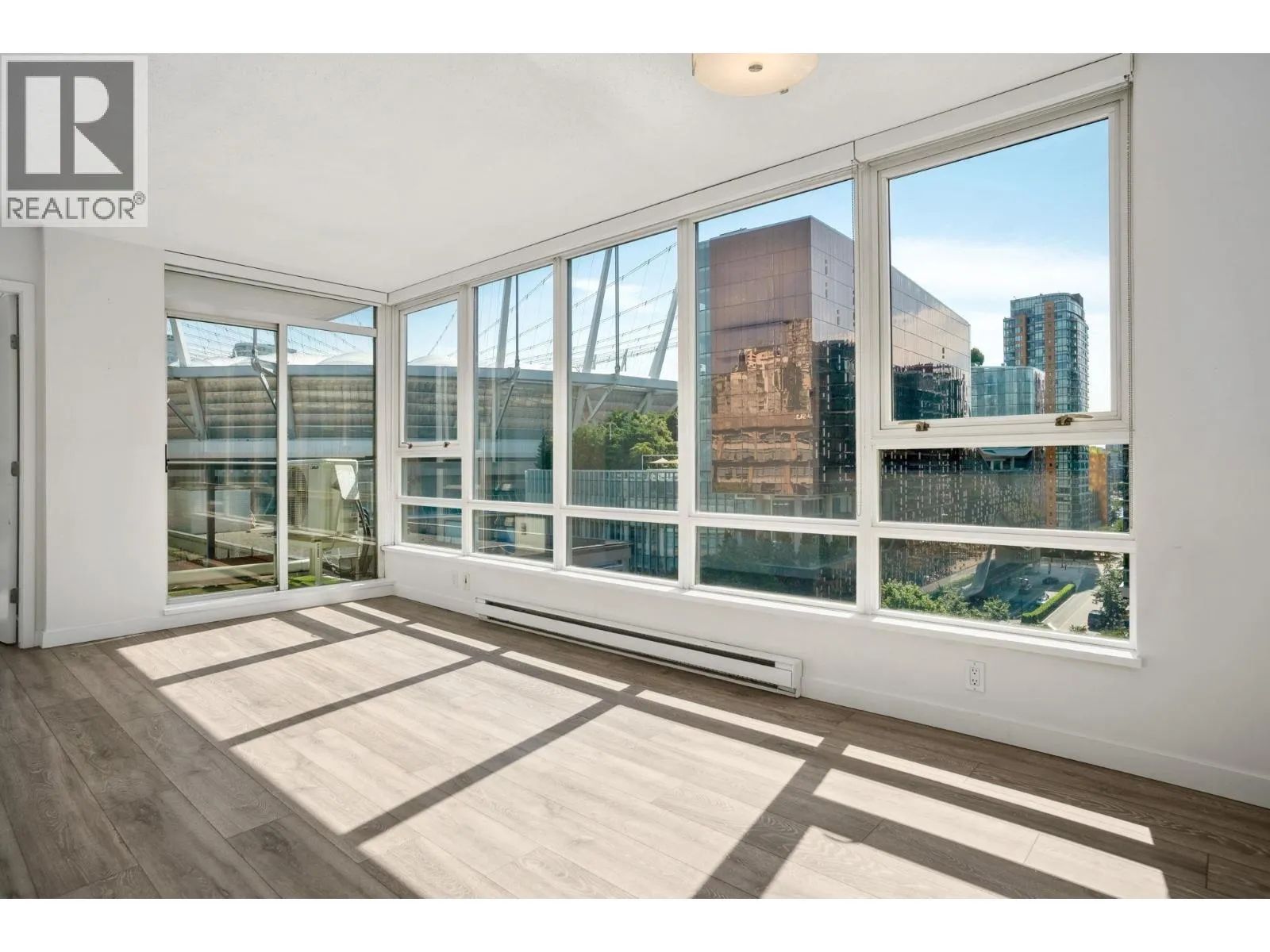 Welcome to THE MAX: this 2 bedroom + 1 bath home with new laminate flooring throughout, fresh paint, lighting fixtures, updated bathroom with Heat Pump. A thoughtful and open layout, this home balances comfort and function. The spacious second bedroom is well-suited for a child´s room or visiting guests, while the large den is ideal as a quiet home office-perfect for those working from home. Oversized windows invite lots of natural light. Well maintained building with elevator modernization and building enclosure renewal. Resort style amenities: indoor pool, hot tub, sauna, fitness center, lounge, landscaped gardens, and play area. This location is steps from restaurants, cafes, transit, shopping, seawall, transit, stadium, and more. (id:27476)