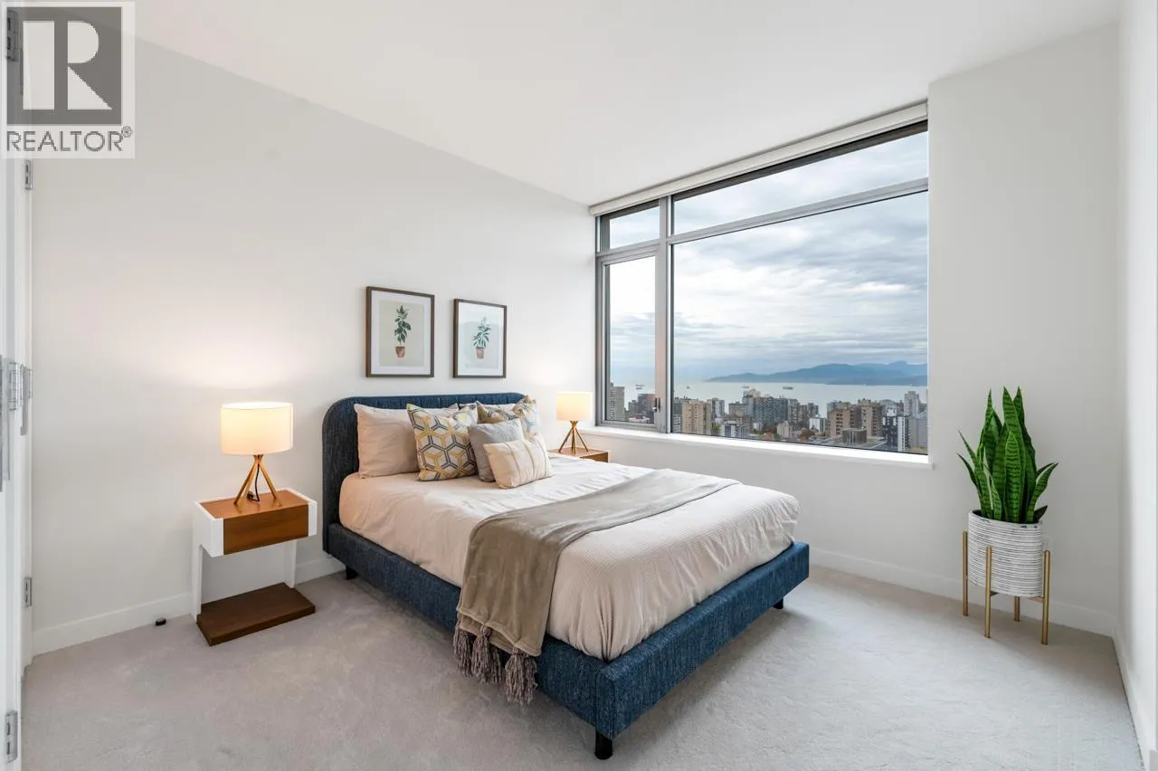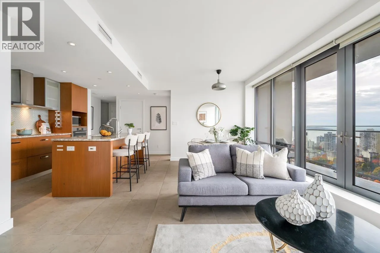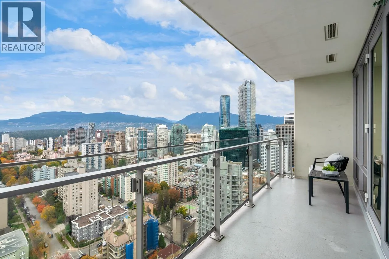 Beautiful home in the prestigious PATINA by Concert Properties, a highly regarded developer known for exceptional quality. This bright 2-bed, 2-bath + den residence offers panoramic views of the ocean, city, UBC, and nearby parks. The thoughtful layout provides excellent privacy with bedrooms located on opposite sides of the unit, while the open living, dining, and kitchen areas are designed to maximize the stunning views with no wasted space. The enclosed den offers flexibility for use as an office or extra storage. Prime downtown West End location with YMCA located downstairs, steps to luxury shopping, the waterfront, restaurants, and entertainment. Features include new paint and new carpet, low maintenance fees, Heating and Cooling system, and timeless modern design. Come view it today! (id:27476)