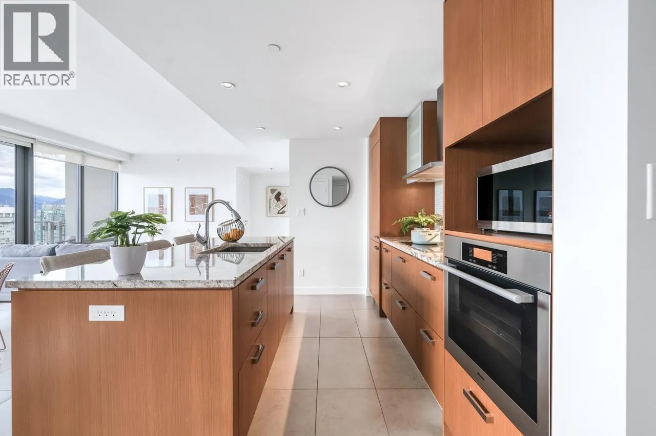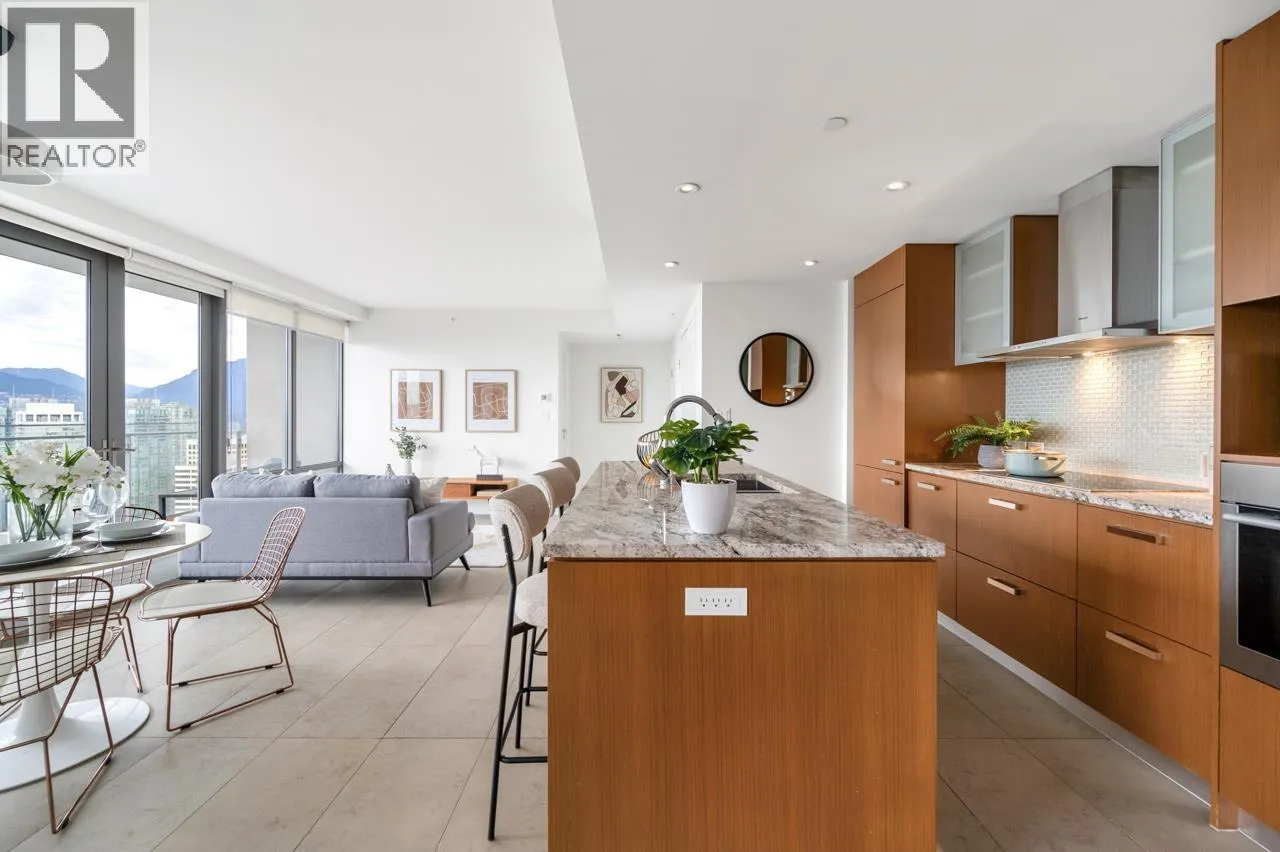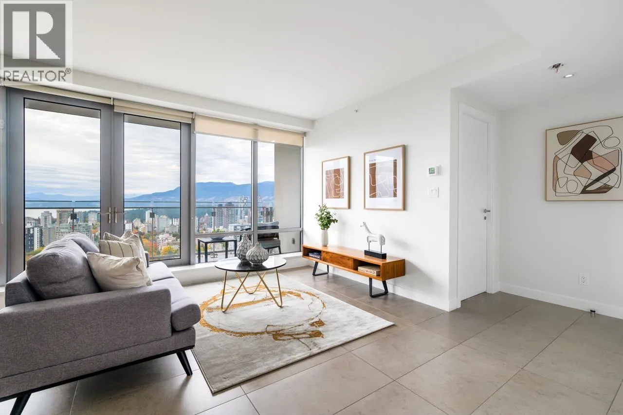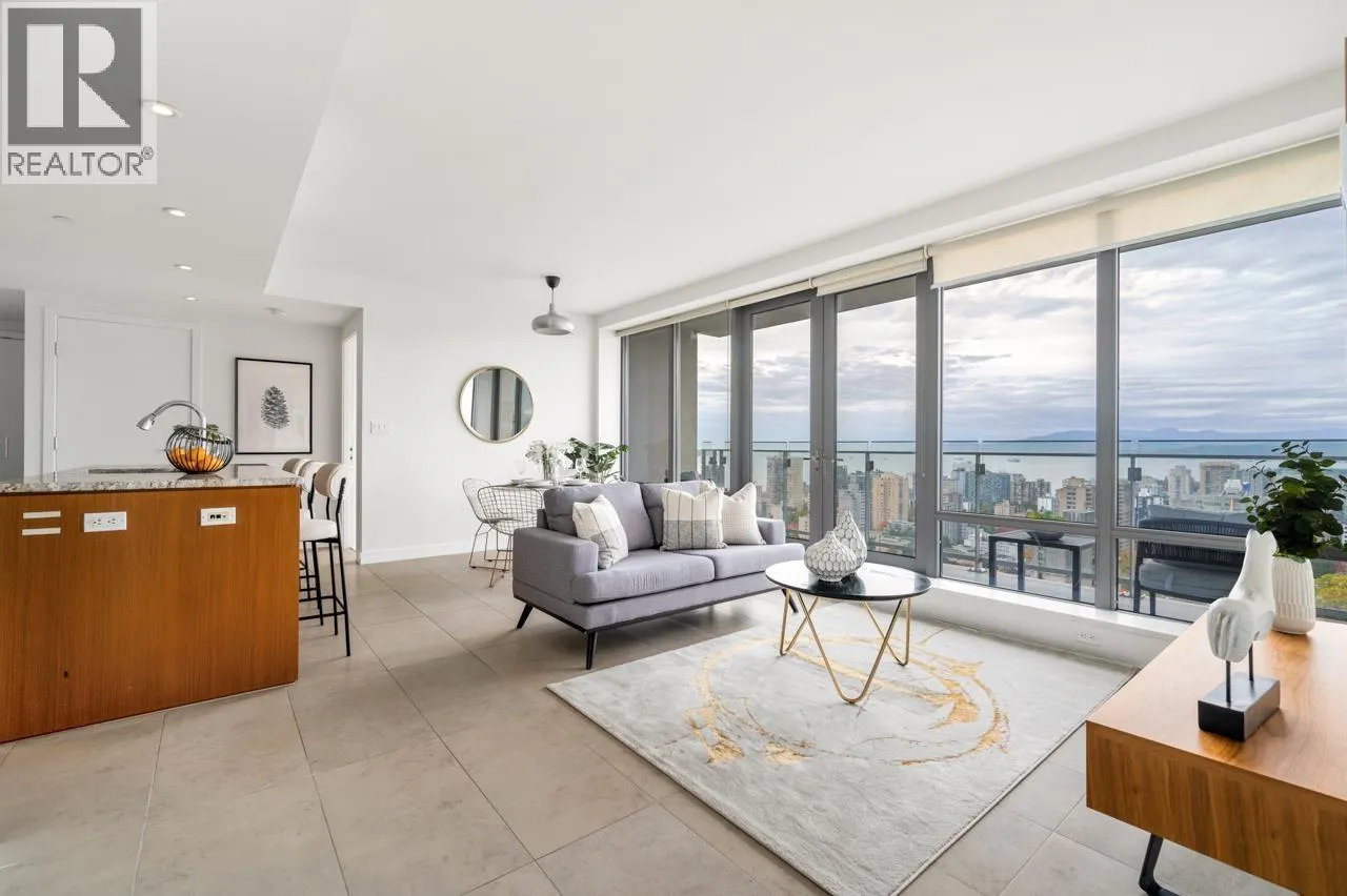 Beautiful home in the prestigious PATINA by Concert Properties, a highly regarded developer known for exceptional quality. This bright 2-bed, 2-bath + den residence offers panoramic views of the ocean, city, UBC, and nearby parks. The thoughtful layout provides excellent privacy with bedrooms located on opposite sides of the unit, while the open living, dining, and kitchen areas are designed to maximize the stunning views with no wasted space. The enclosed den offers flexibility for use as an office or extra storage. Prime downtown West End location with YMCA located downstairs, steps to luxury shopping, the waterfront, restaurants, and entertainment. Features include new paint and new carpet, low maintenance fees, Heating and Cooling system, and timeless modern design. Come view it today! (id:27476)