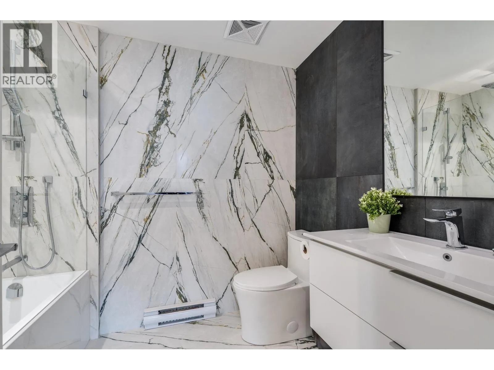 Stunning fully renovated loft style 925 sqft with a 91sqft patio, view this 2 bedroom 2 bathroom condo at this luxurious property called V6A. Move into this trendy & diverse neighbourhood. Sleek modern renovation in 2023, features include, white cabinetry, sleek black hardware, marble countertops, white carrara marble blacksplash, SS full sized appliances, motorized blinds throughout, sleek open-concept design, polished concrete floor. It also has a 71 inch bath tub in the master ensuite, dimmer switches & more. V6a has a concierge service, fully equipped fitness centre with state-of-the-art cardio equipment & free weights. Open house Sat Nov 8th 2-3pm. (id:27476)
