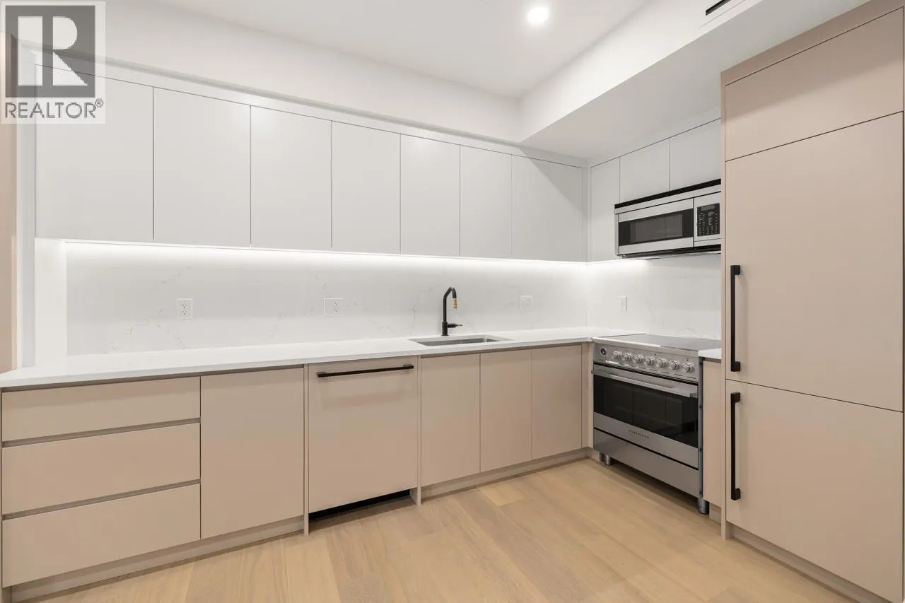 Welcome to 5West built by Asanti homes, a collection of 1, 3 , 3 + Den and 4 bedroom homes offering functionality, and style in every detail! This 1 bed, 1 bath residence spans 1 thoughtfully designed level. Boasting a spacious living room with fireplace and french doors leading to the large covered patio, dining area and gourmet kitchen, featuring custom BCG cabinetry and integrated Fisher Paykel appliances. Enjoy the spacious patio and storage locker for the bikes. Open House Nov 15th/16th Sat/Sun 2-4pm (id:27476)