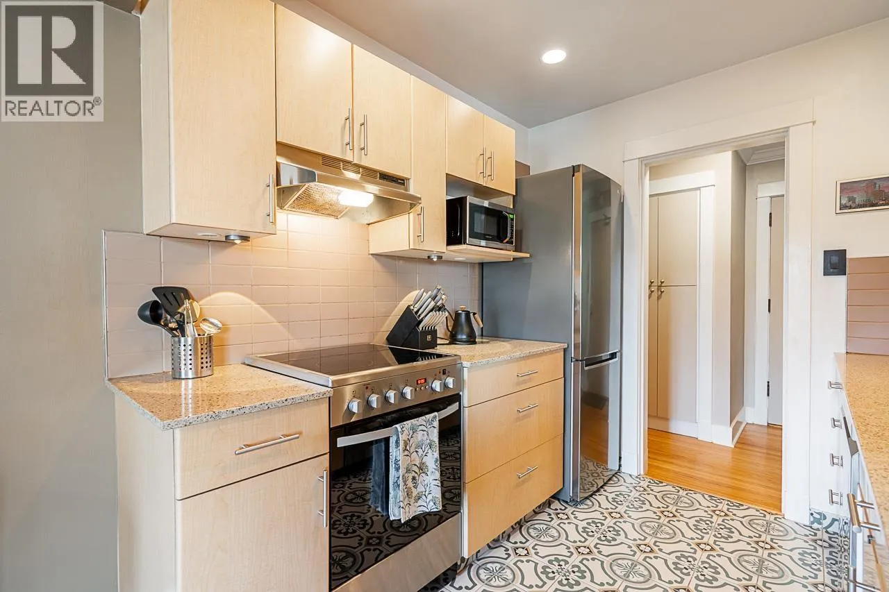 Cambie Village!!Steps to shopping, parks, eateries, a theatre & the King Edward Skytrain (Canada Line-9 min to DT). Tastefully decorated 1 bedroom, 1 bath character suite has 741 Sq.ft. Beautifully updated in 2024, mahogany inlaid hardwood flooring, a lovely electric FP & large, double paned windows. Spacious, top-floor unit faces a quiet, eastern side of the complex. Oversized bedroom will showcase your furniture. Large living space has numerous custom built-ins & an updated galley kitchen boasting S/S appliances and Silestone counters. The building is in excellent condition being meticulously self-managed incl. a low-cost common Wi-Fi system and a new roof in 2025. Brockville Manor is a low-rise, 22-unit, "equity co-op", walk up for those over 30 yrs old to own. OPEN Sat. Nov 22, 2-4:00. (id:27476)