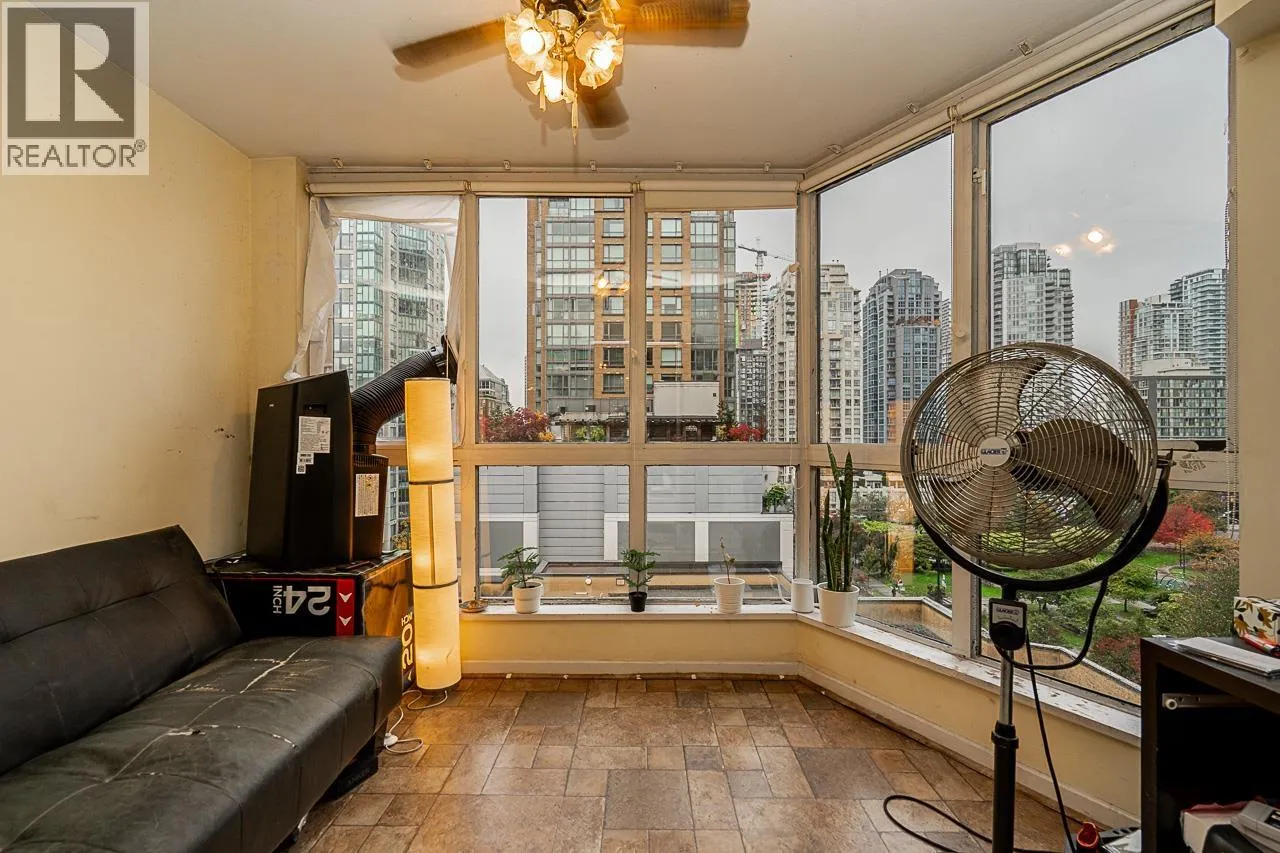 CORNER 2 BEDROOM condo for sale with 2 full bathrooms and 2 large parking stalls in Yaletown. This home has a great layout - they don't make them like this anymore! And did you see it has 2 parking? The home is ready for a cosmetic facelift but offers space for your dining table, king sized bed in the primary plus a few dressers, queen sized bed in the second bedroom and even a large couch in the living space. The enclosed solarium is a great extension of the living space or can be used as a den. Enjoy all of the building amenities including gym, games room, sauna and onsite caretaker. The unit includes a large storage locker. 2 Pets allowed with no size restrictions for dogs. Call for a private showing! (id:27476)
