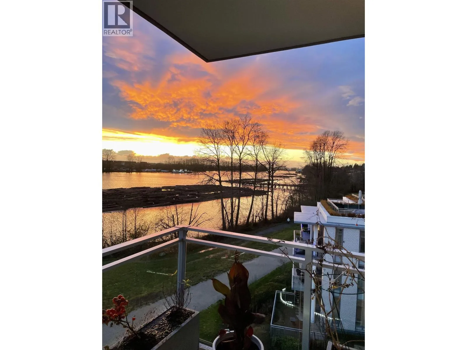 Indulge in breathtaking 180° water views from this pristine corner home, with a perfect vantage to revel in the outlook of the Fraser River from every room. Spanning a generous 1,138 sqft, discover 2 bedrooms, 2 full baths, & a dedicated office. Relish in the chef-inspired kitchen showcasing a gas stove, high-end Bosch appliances, & a vast island - perfect for entertaining. The primary suite promises relaxation with its walk-in closet & resort-style ensuite. Admire the architectural beauty of over-height ceilings & an open, airy design. Embrace outdoor living with a 200 sqft South-facing balcony. Enjoy unmatched conveniences: an exclusive storage room on your floor & 2 parking spaces (1 EV). Walk the waterfront trails & enjoy the nearby shops & restaurants. (id:27476)