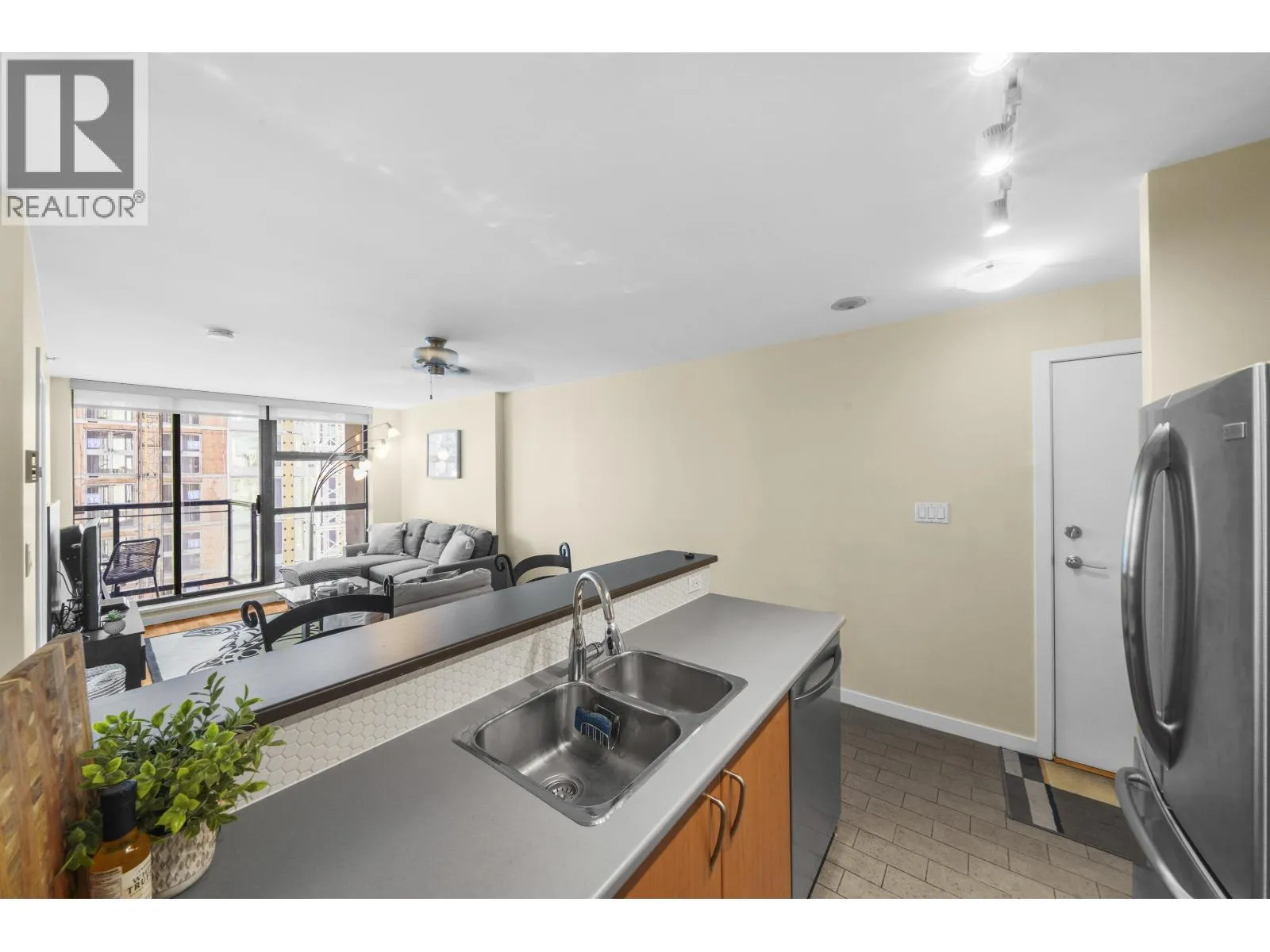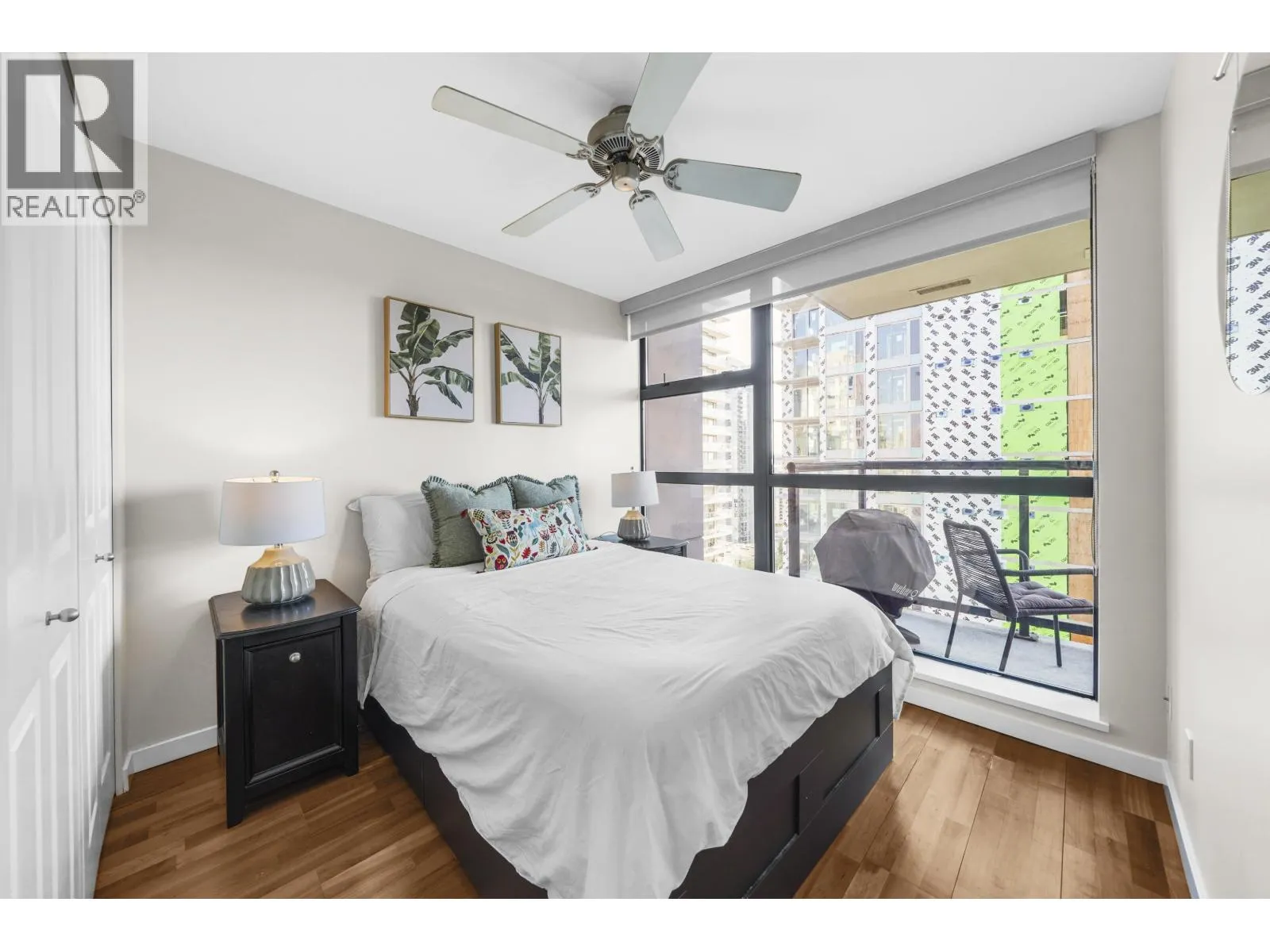 Welcome to Oscar by Bosa- a highly reputable building known for its quality construction & great management. This is the one you've been waiting for- the most efficient floor plan in the building! This 1 bedroom + Den offers a smart layout with zero wasted space. As you enter, you're welcomed by an open concept floor plan & floor to ceiling windows bringing in an abundance of natural light. Enjoy beautiful city & peekaboo ocean views. This home features hardwood floors, stainless steel appliances, custom closet organizers, + blackout shades in the bedroom. Get the best of both worlds- all the perks of city living, plus the rare luxury of a tranquil courtyard garden retreat located on the 2nd floor of your building. Additional amenities include a fitness centre, party room, bike storage, & an on-site caretaker. Located just steps to the seawall, Yaletown, Robson Street shopping, Skytrain, grocery, restaurants & Cafes. Includes 1 parking stall. Pets and rentals allowed. **OPEN HOUSE SAT NOV. 1 FROM 2-4PM** (id:27476)