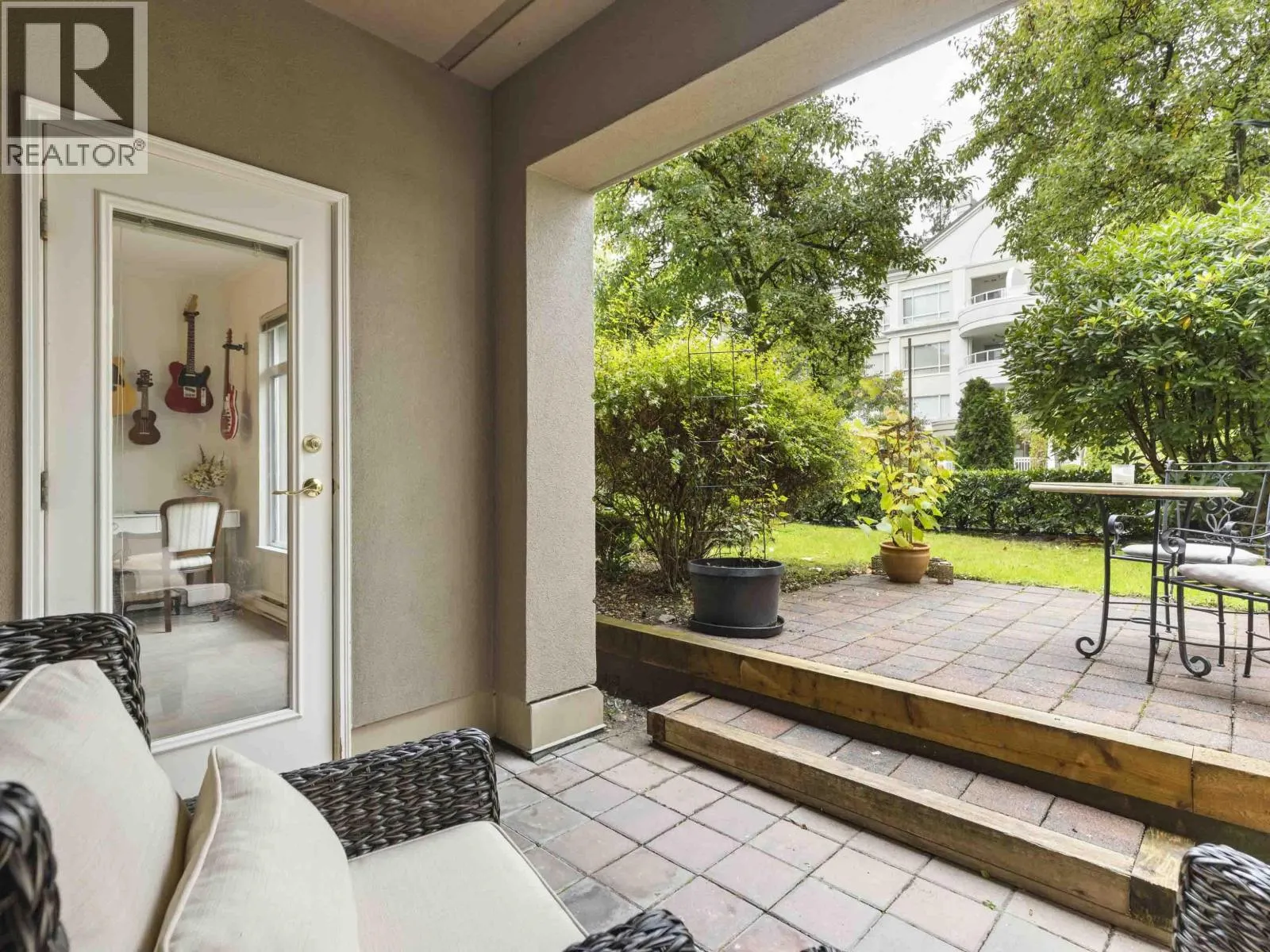 Welcome to this serene oasis, nestled in the quiet community at The BRISTOL. This spacious and secure ground floor home expands directly to your generous PATIO which opens out to a private, lush courtyard & tranquil fountain. Find 9' ceilings and expansive windows for a light and airy feeling, generous open living/dining areas, cozy gas fireplace, kitchen with ample storage, bathroom with walk-in shower & separate soaker tub. Updates include refinished hardwood floors, new paint throughout and newer carpets. The Bristol is diligently-managed strata, well-maintained by onsite caretakers, featuring abundant amenities such as 2 guest suites, a club house, gym, hot tub, sauna, and has park-like landscaping throughout. 1 parking & 1 storage locker included & 2 pets welcome. Located just off of Wesbrook Mall where you'll find all the shops, cafes, grocery stores, community centre, parks and of course Pacific Spirit trails just steps away! Call for your own private viewing today! (id:27476)