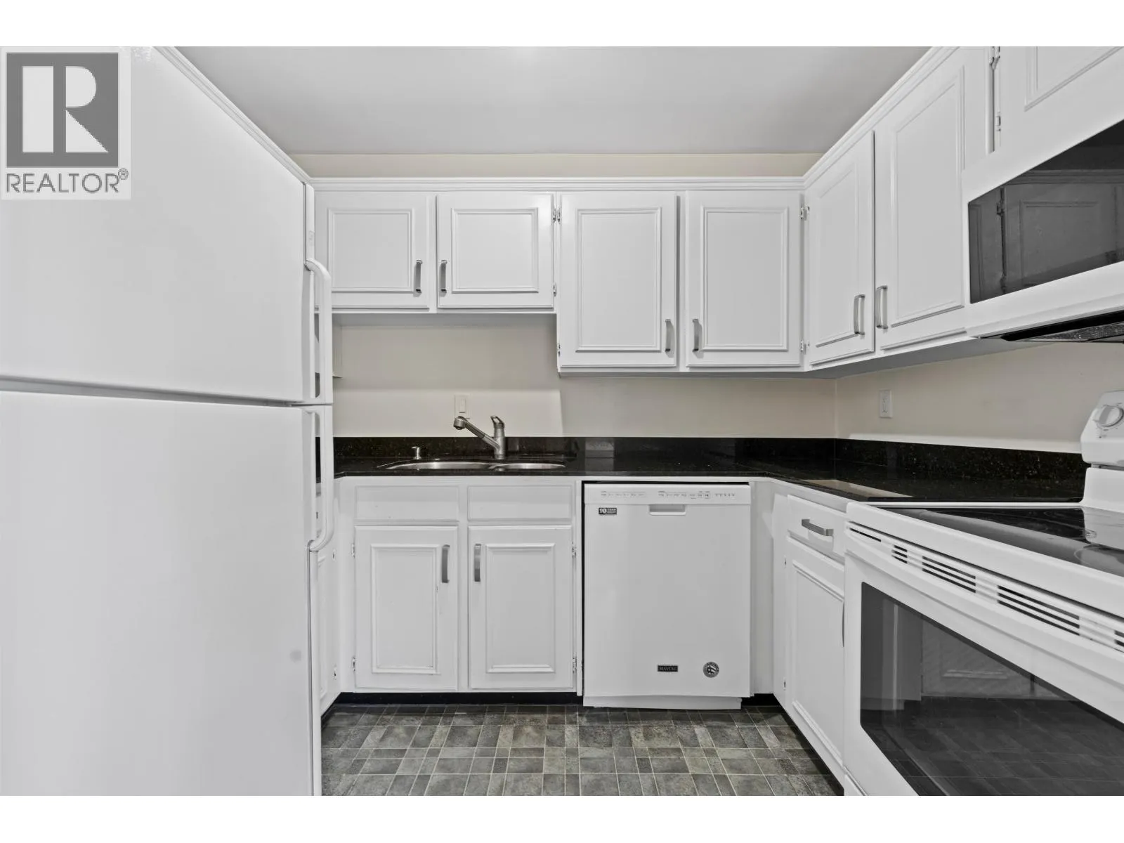 Welcome to La Belle Court. This TOP FLOOR over 700 sq/ft 1 bedroom unit offers a very efficient floor plan and south facing covered patio. The suite itself has a huge living and dining space, large bedroom that easily accommodates a king sized bed, ample closet space, insuite laundry and partially updated bathroom and kitchen with newer appliances and granite counters. Well maintained partially rainscreened building with upgrades incl siding, windows & sliding doors (2000 & 2003), roof (2019), pipes (2000). Conveniently located on the West 10th bike route and centrally located close to VGH, the South Granville and W Broadway shops and the upcoming Millenium Line to UBC. Site Labelled FSOA 'High-Rise' in Broadway Plan. 1 parking, 1 storage locker. Pets allowed & Rentals allowed. (id:27476)