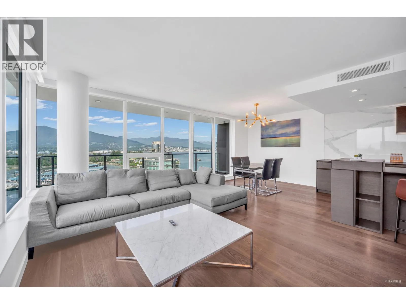 OCEAN VIEW!! Cardero, the definition of pure luxury and elegance. Brand new Bosa built redefines the Vancouver skyline with distinctive and world class design by Henriquez Partners Architects. This truly exclusive collection site in the heart of Coal Harbour and is steps away from the city's best restaurants, parks, and entertainments. Coveted N/W corner 3 bedroom + 2.5 bathrooms, 1500+ sqft of living space, imported Italian kitchen w/premium Miele appliances + integrated technology. Quartz countertops with fully integrated sinks, with wide plank oak hardwood and limestone tile flooring. Bathroom floor-to-ceiling book matched porcelain Calacatta slab with contemporary design. 2 parking, SMART HOME technology, 24 hour concierge, gym, outdoor lounge and more! Open House: 11/22 (Sat) 2:30-4PM (id:27476)