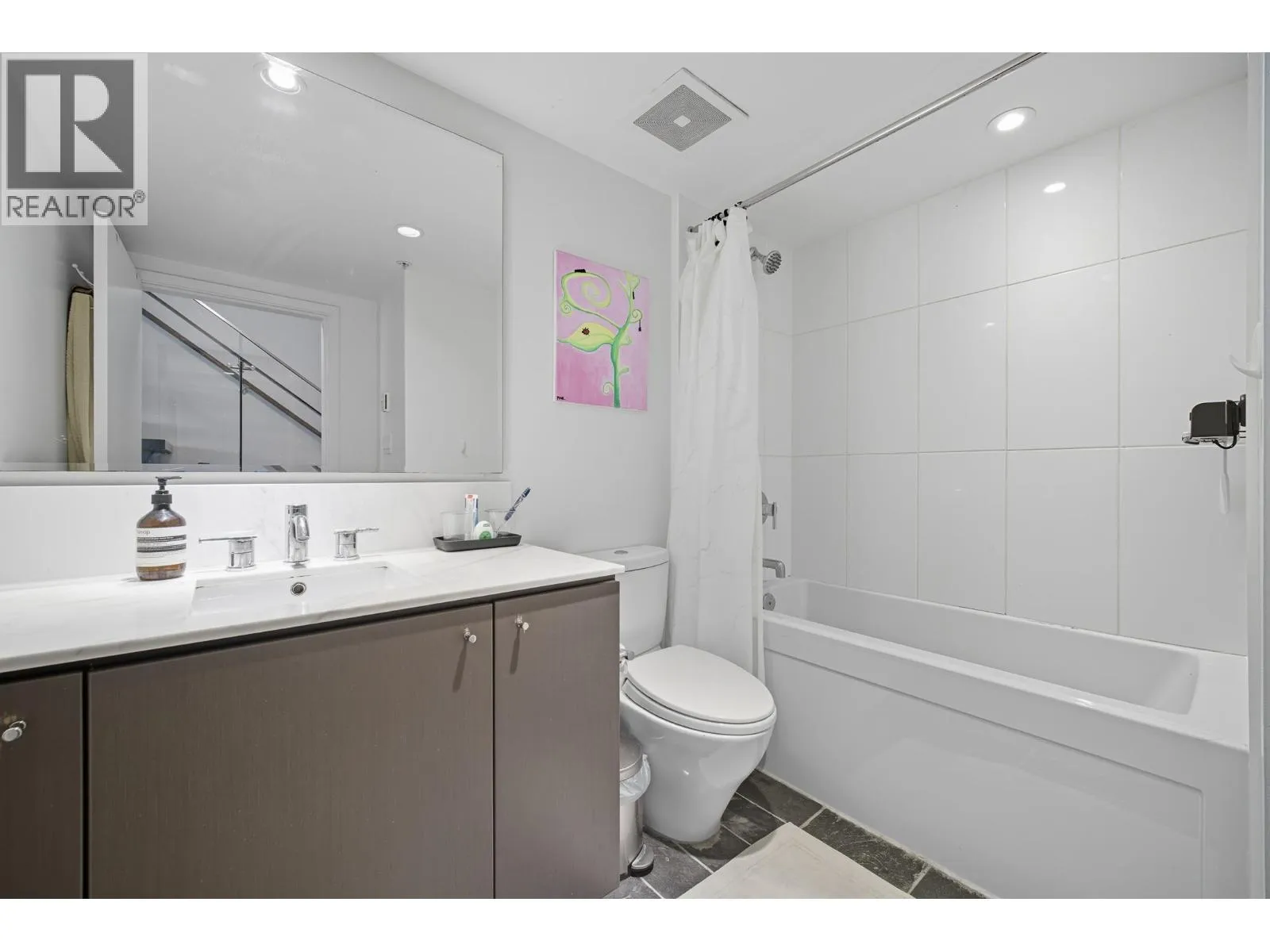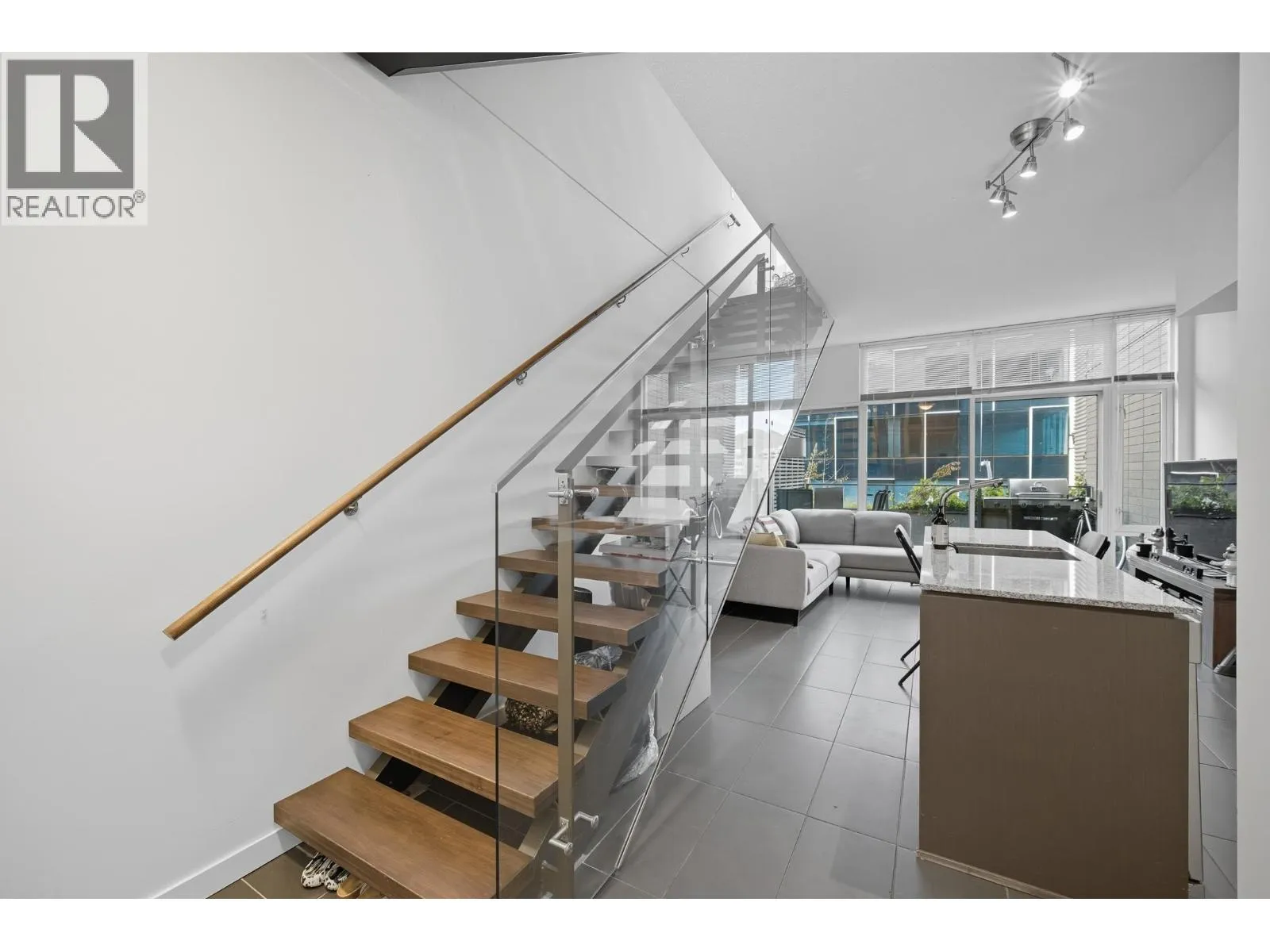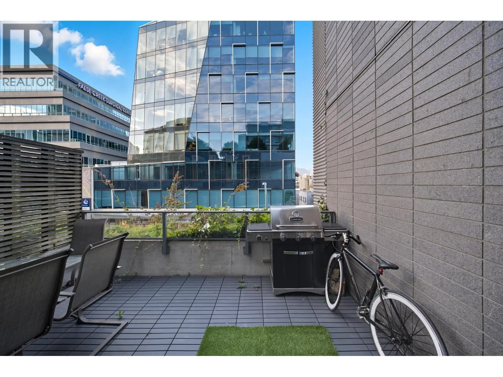 **CENTRAL Cambie & Broadway LOCATION at CROSSROADS** Rarely available stylish 1 bedroom + den, 2 bath, 3-level townhouse with 3 private balconies including a large rooftop deck for unwinding under the stars. Featuring a large patio & powder room on the main floor, bedroom with juliette balcony and den on the second floor, and an additional 2nd entry into the unit and roof deck on the third floor. Stylish, spacious and very bright floor plan with 3 levels of floor to ceiling windows with North facing views and open-concept kitchen with S/S appliances, gas stove and granite countertops. Great building amenities including a huge fitness centre, rooftop garden, playground and bike room. Close to everything and above Whole Foods, next door to shopping and Canada Line, steps to VGH & False Creek (id:27476)