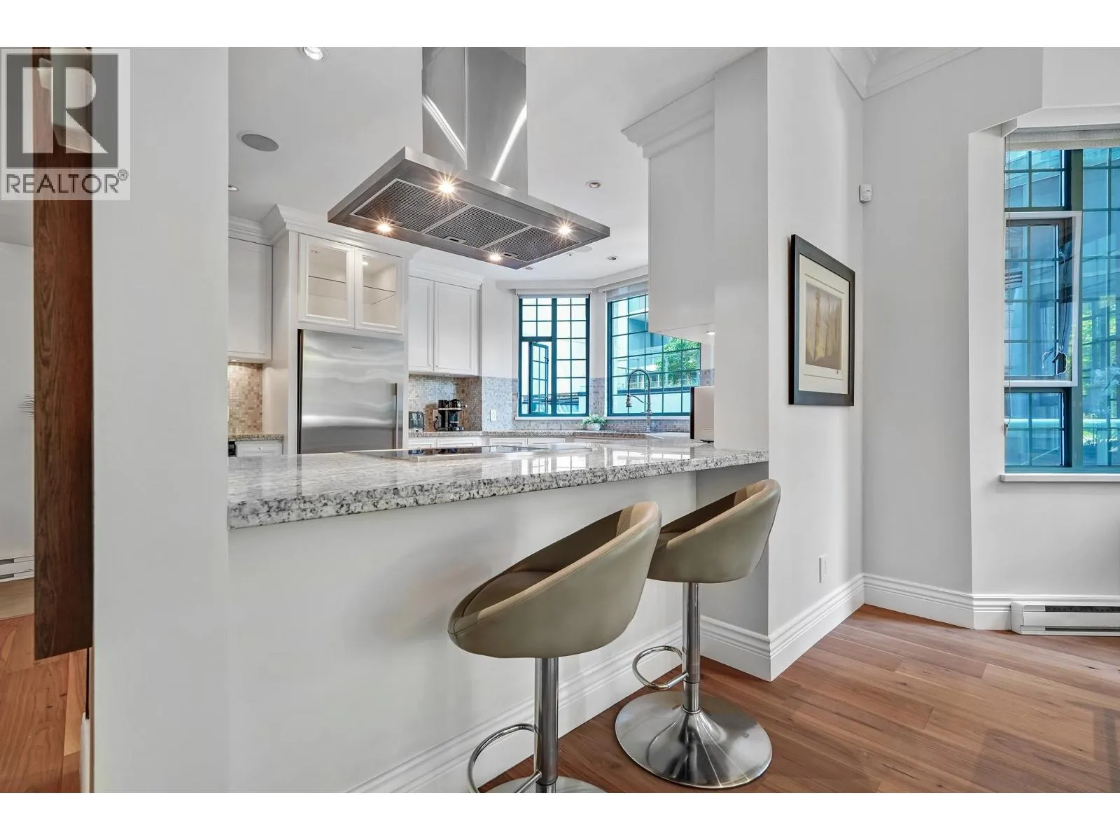 Sophisticated and Elegant Yaletown Townhome - This rare street-access corner unit lives like a house with 10-ft ceilings, 3 private patios, and floor-to-ceiling atrium windows. Fully renovated featuring 2 spacious bedrooms (including Murphy bed and desk in the second), 2.5 baths, steam shower, PRIVATE ROOF TOP HOT TUB, full-size laundry, walk-in closet, and built-in beer tap. Includes 2 side by side parking , large storage locker, and access to hotel amenities: pool, gym, concierge, EV charging, lounge, and more. (id:27476)