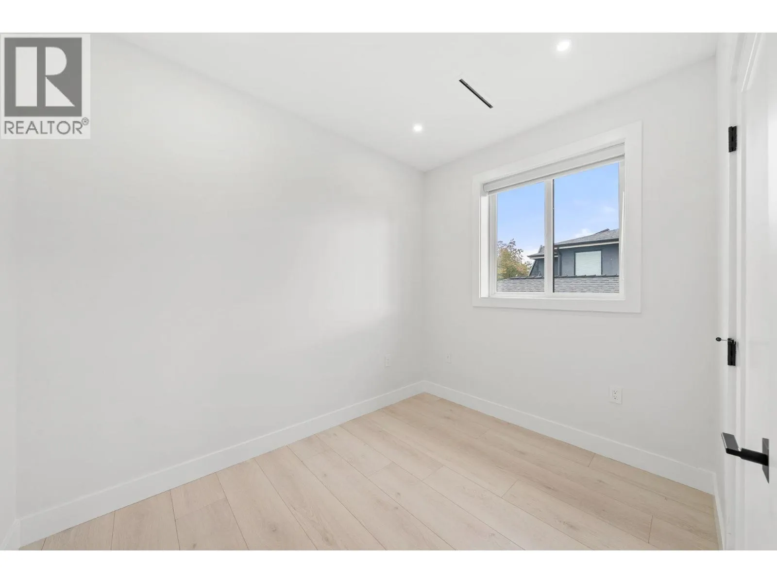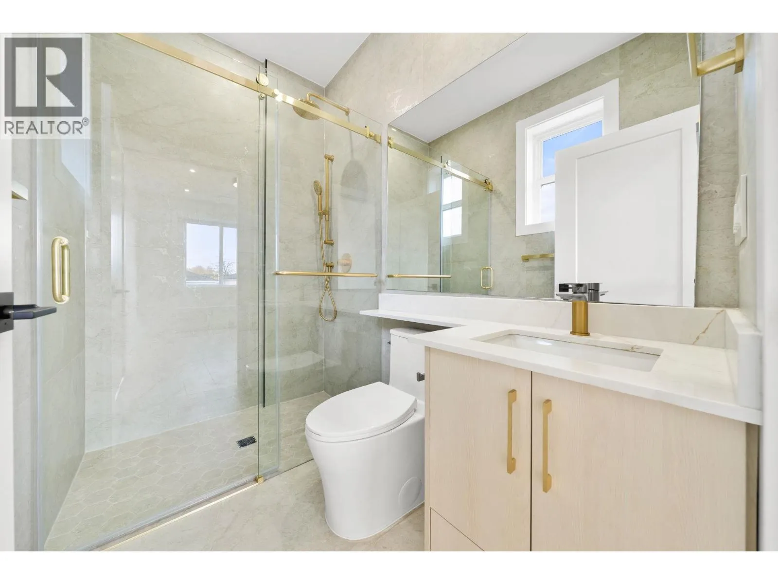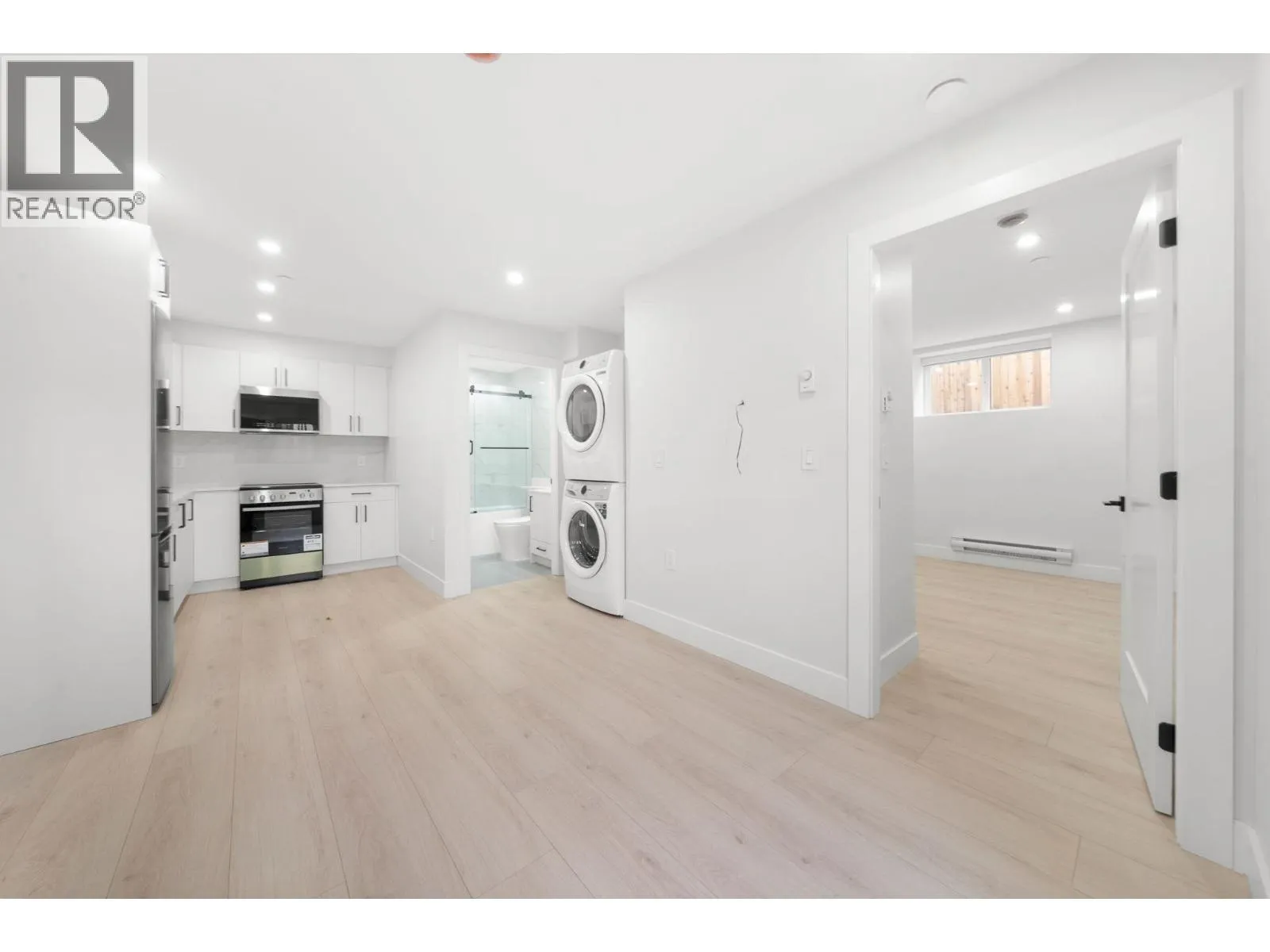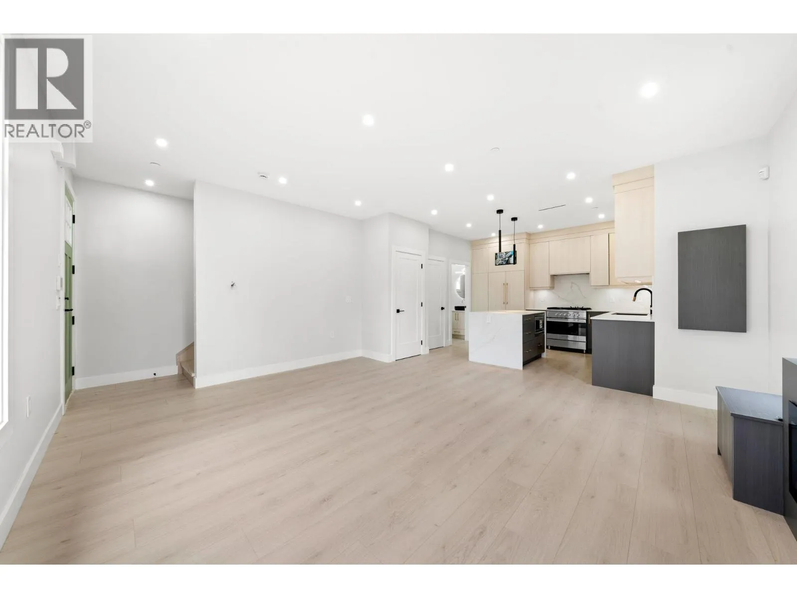 This stunning front half-duplex offers elegant design and quality construction in highly desirable Killarney, Vancouver. Featuring approx. 1,600 sq. ft. of well-planned living space, it includes a bright open-concept main floor with high ceilings, engineered hardwood, A/C and an electric fireplace. The gourmet kitchen boasts quartz countertops, premium appliances, and custom cabinetry. Upstairs features spacious bedrooms, a luxurious primary with walk-in closet, spa-like ensuite and sundeck. The lower level includes a self-contained 1-bedroom suite ideal as a mortgage helper. Additional highlights: HRV, security system, designer lighting and garage. Conveniently located close to parks, schools, shopping and transit, this home offers the best of modern urban living. (id:27476)