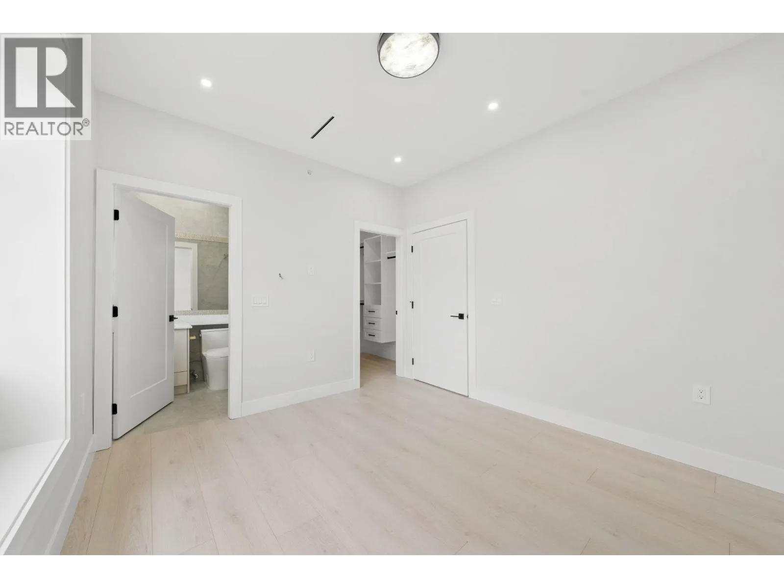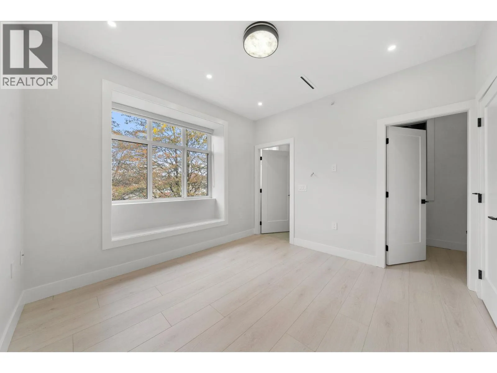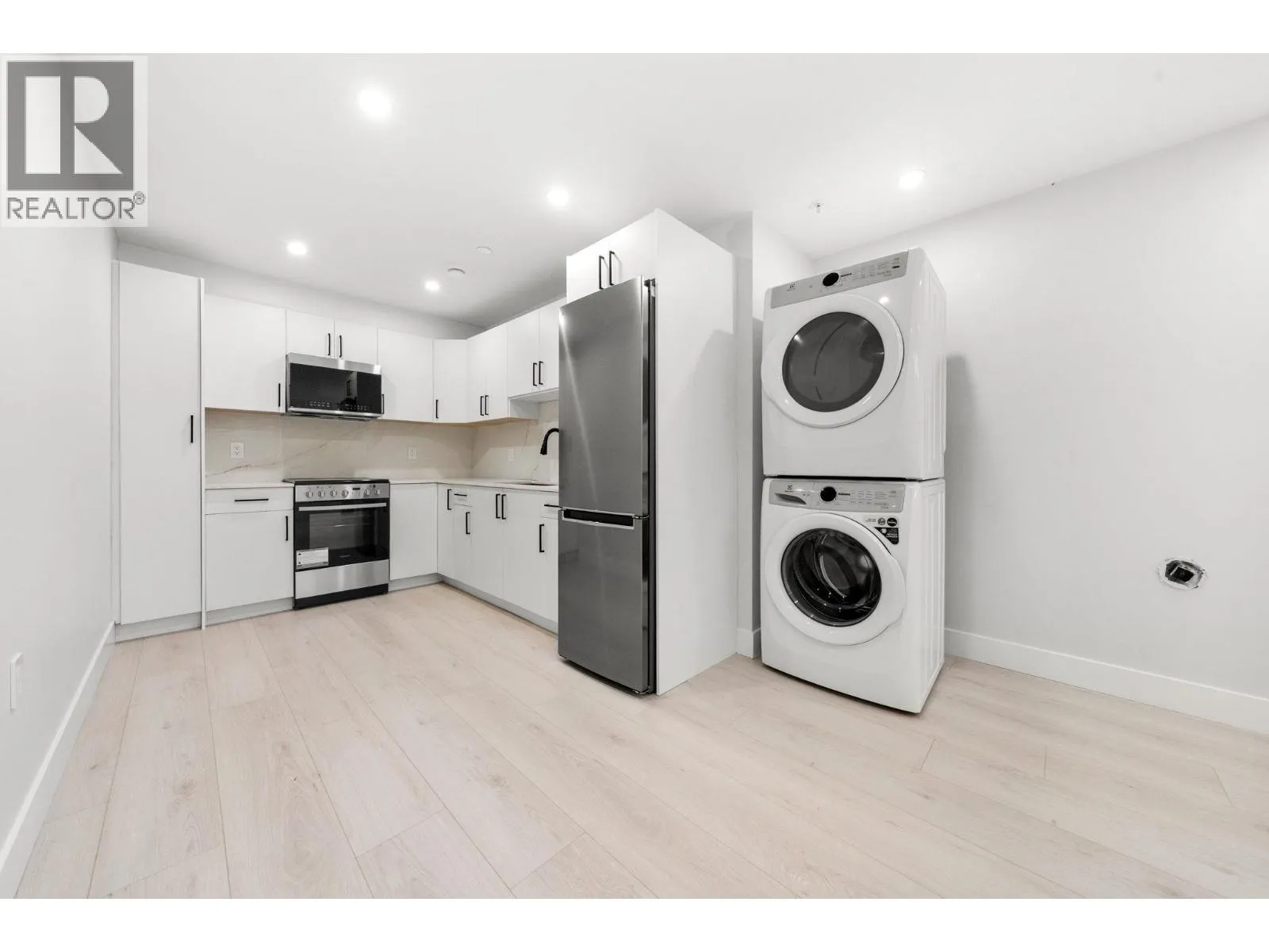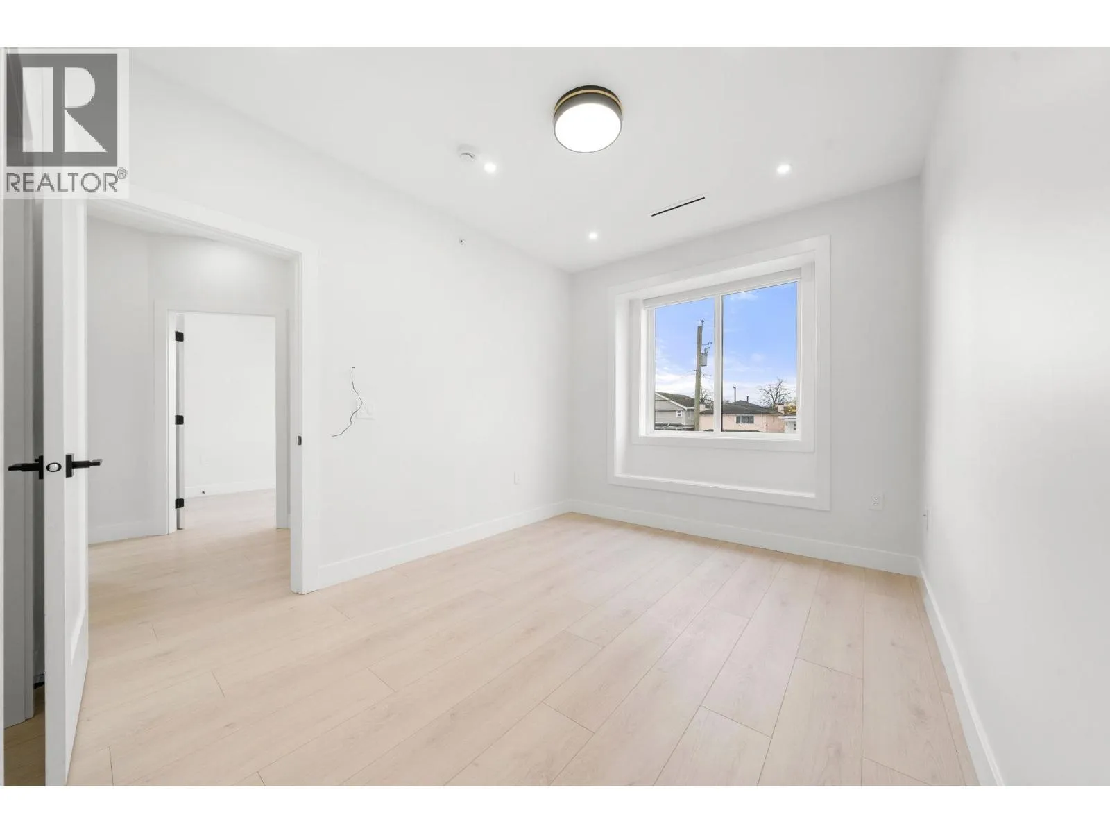 This stunning front half-duplex offers elegant design and quality construction in highly desirable Killarney, Vancouver. Featuring approx. 1,600 sq. ft. of well-planned living space, it includes a bright open-concept main floor with high ceilings, engineered hardwood, A/C and an electric fireplace. The gourmet kitchen boasts quartz countertops, premium appliances, and custom cabinetry. Upstairs features spacious bedrooms, a luxurious primary with walk-in closet, spa-like ensuite and sundeck. The lower level includes a self-contained 1-bedroom suite ideal as a mortgage helper. Additional highlights: HRV, security system, designer lighting and garage. Conveniently located close to parks, schools, shopping and transit, this home offers the best of modern urban living. (id:27476)