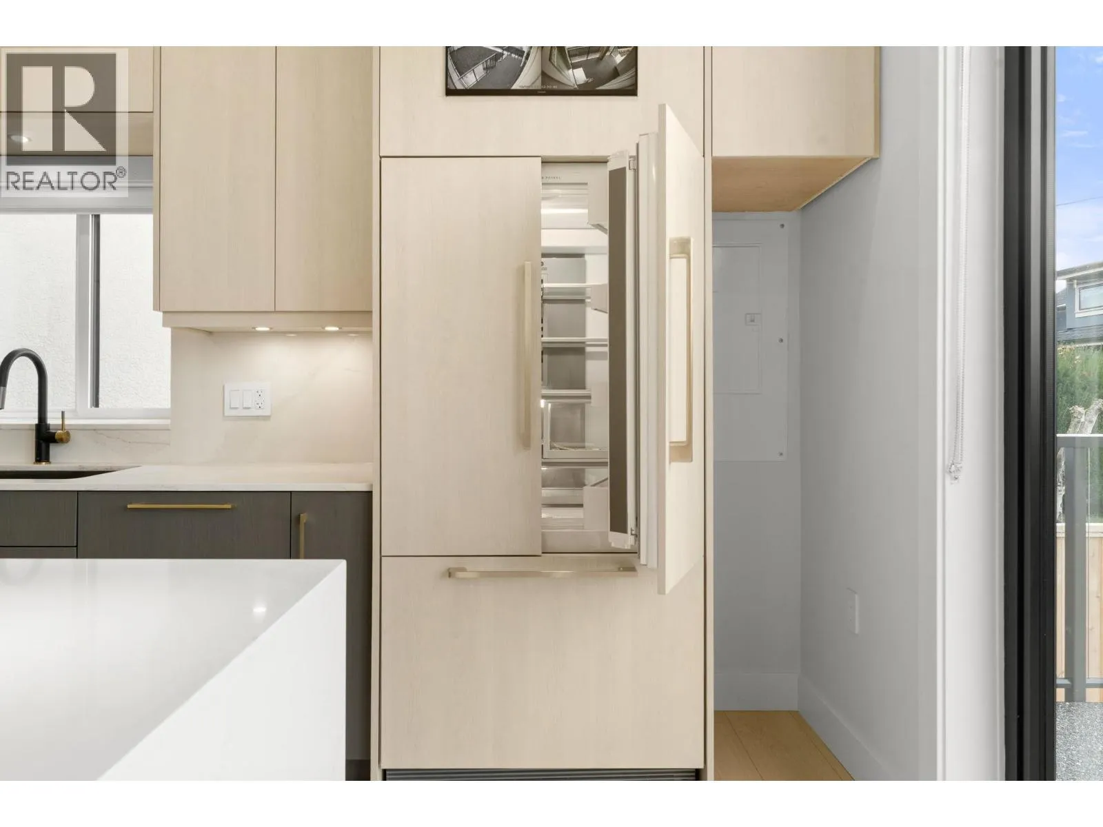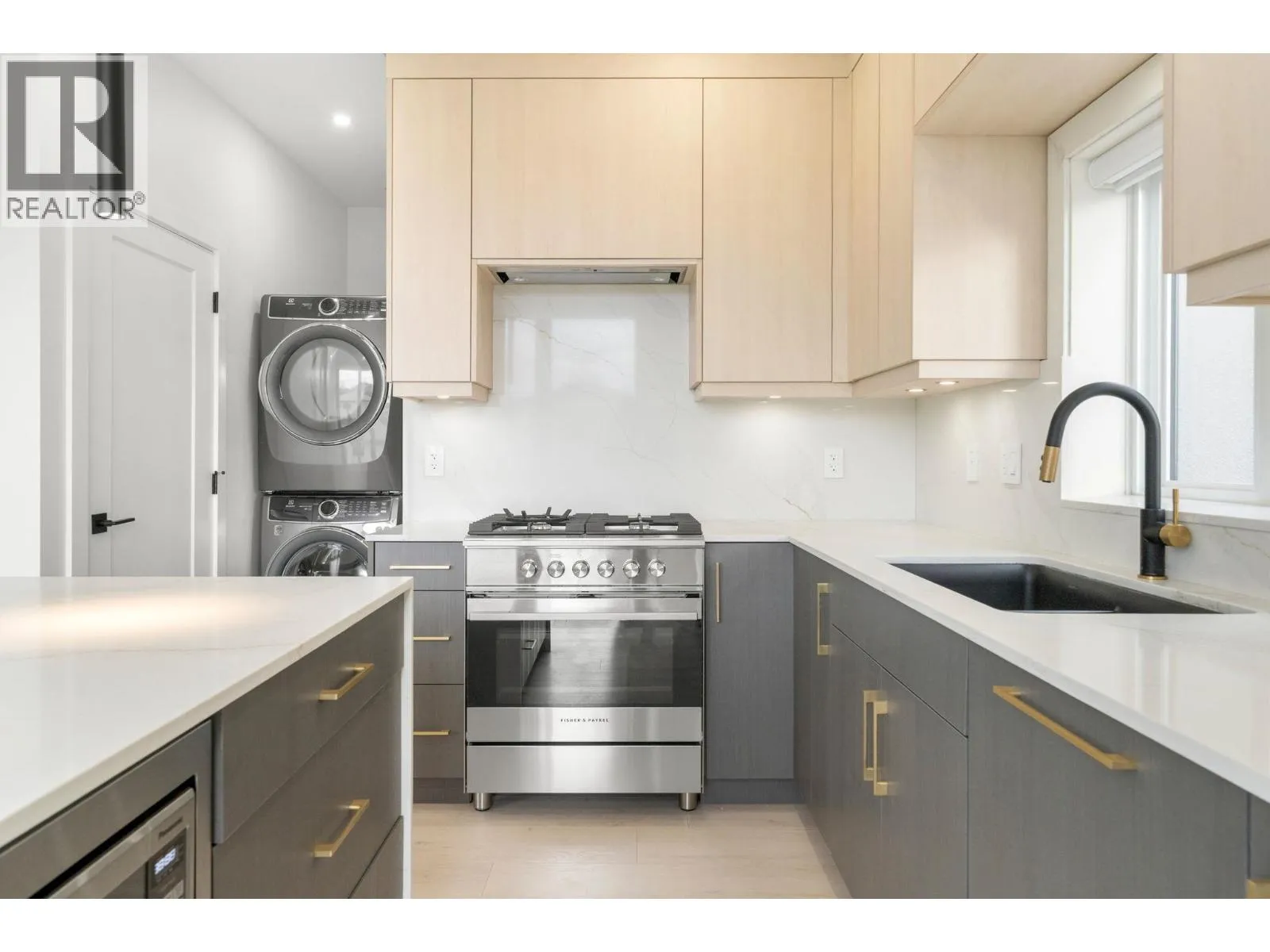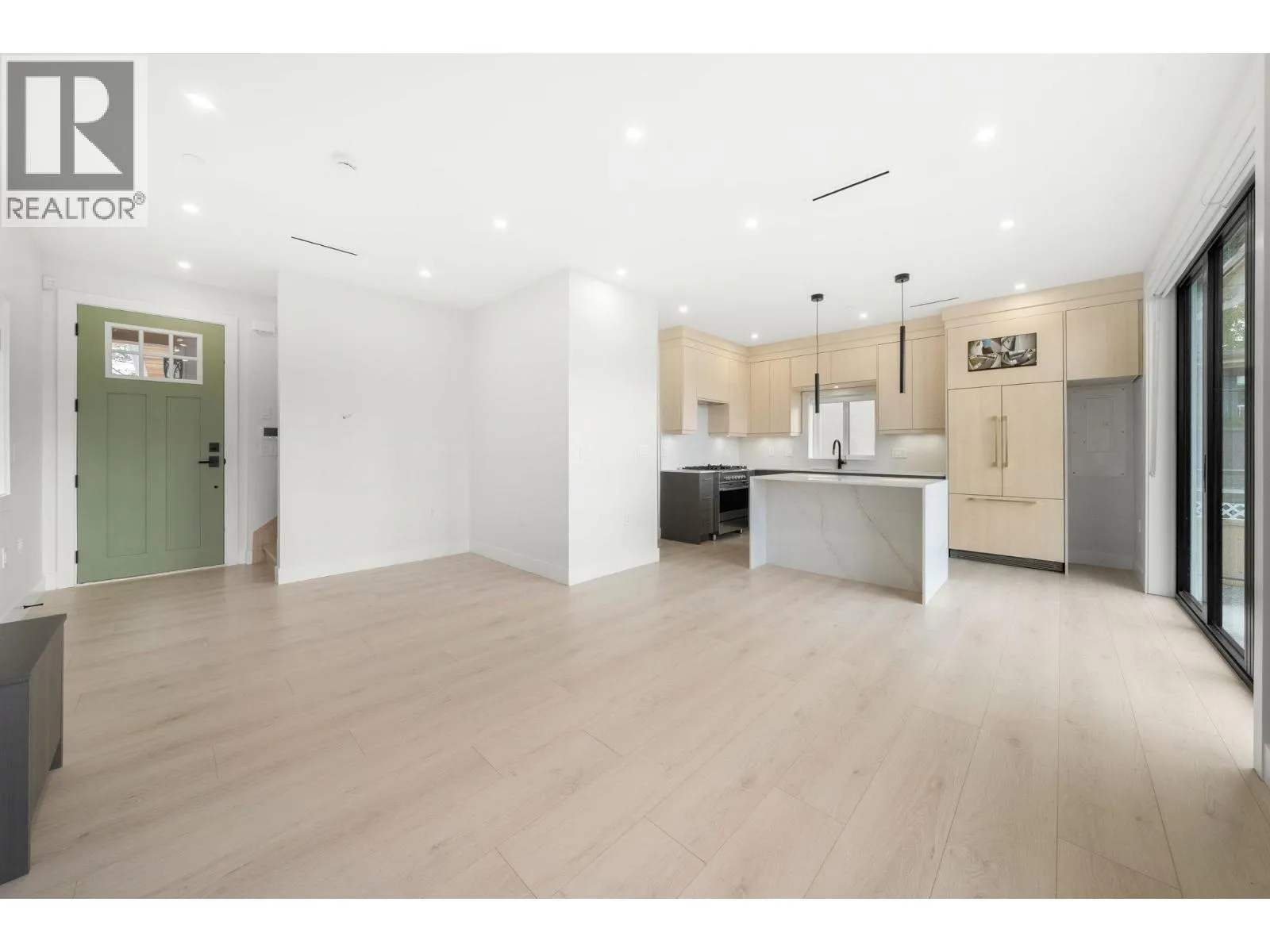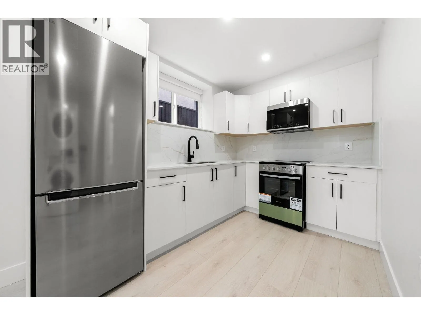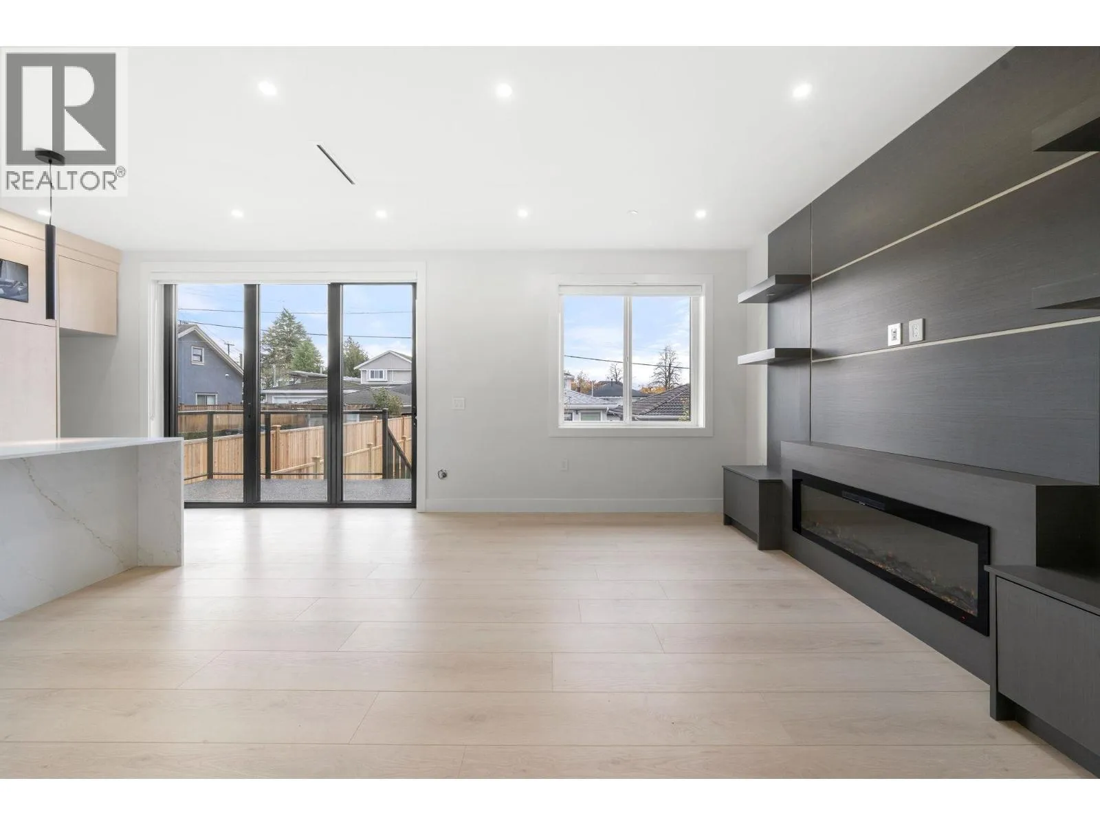This stunning back half-duplex offers elegant design and quality construction in highly desirable Killarney, Vancouver. Featuring approx. 1,643 sq. ft. of well-planned living space, it includes a bright open-concept main floor with high ceilings, engineered hardwood, A/C and an electric fireplace. The gourmet kitchen boasts quartz countertops, premium appliances, and custom cabinetry. Upstairs features spacious bedrooms, a luxurious primary with walk-in closet, spa-like ensuite and sundeck. The lower level includes a self-contained 1-bedroom suite ideal as a mortgage helper. Additional highlights: HRV, security system, designer lighting and garage. Conveniently located close to parks, schools, shopping and transit, this home offers the best of modern urban living. (id:27476)