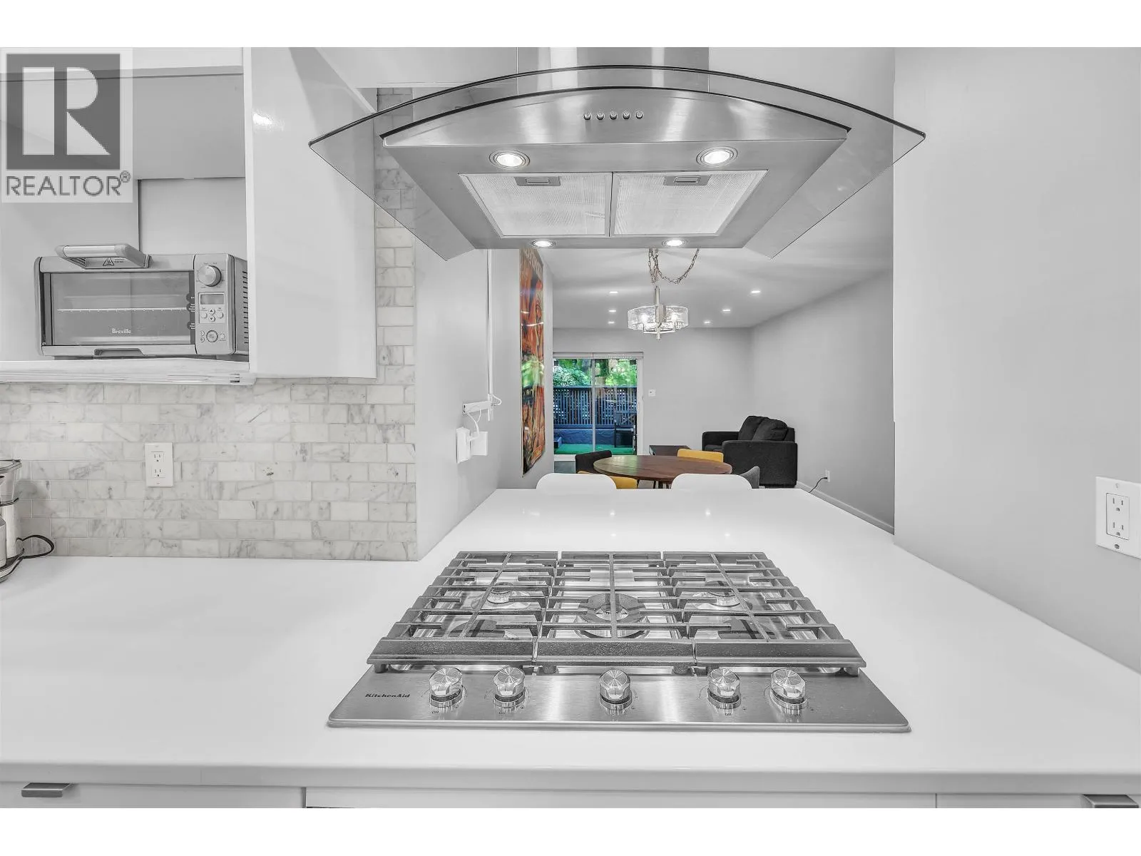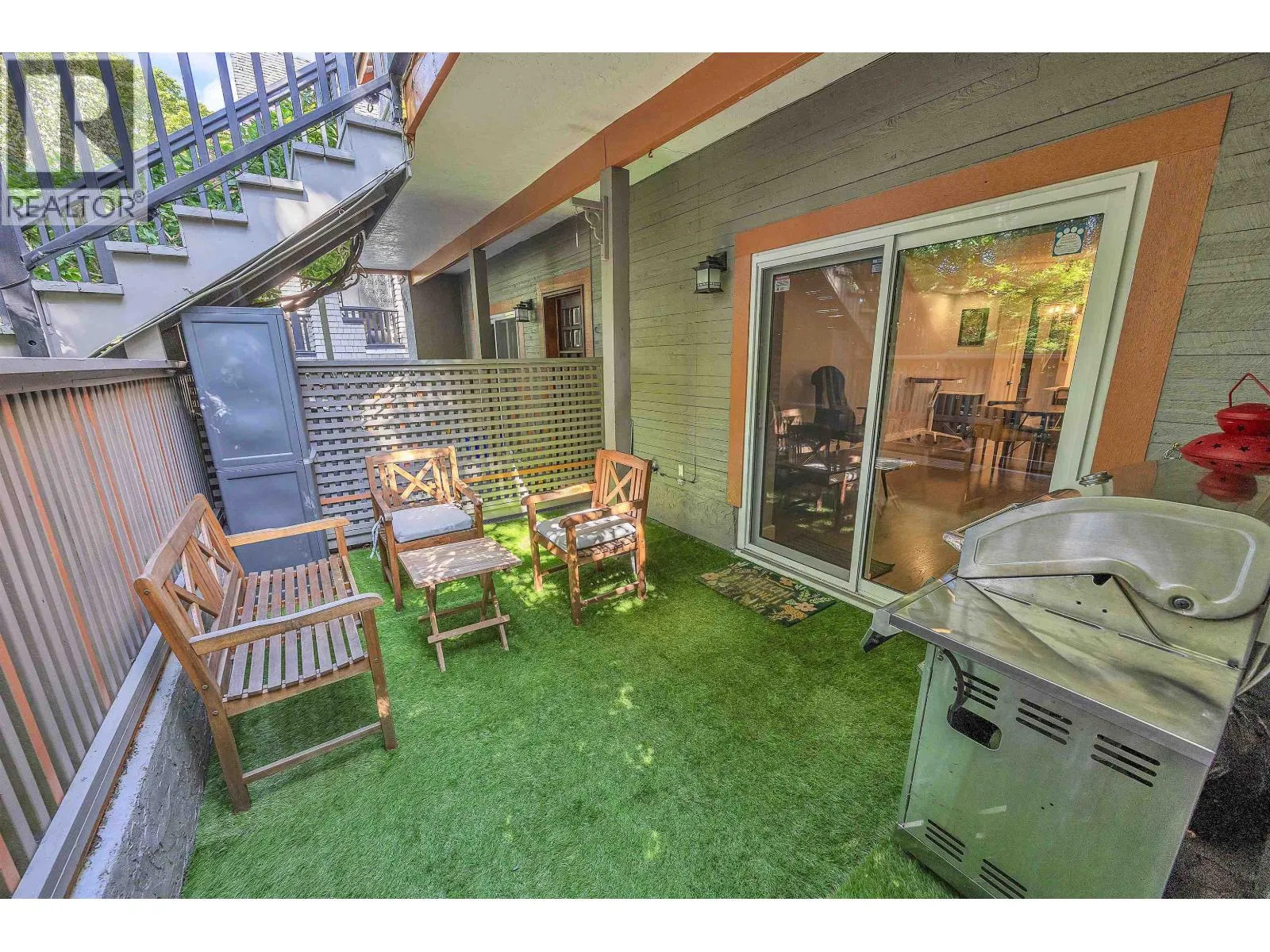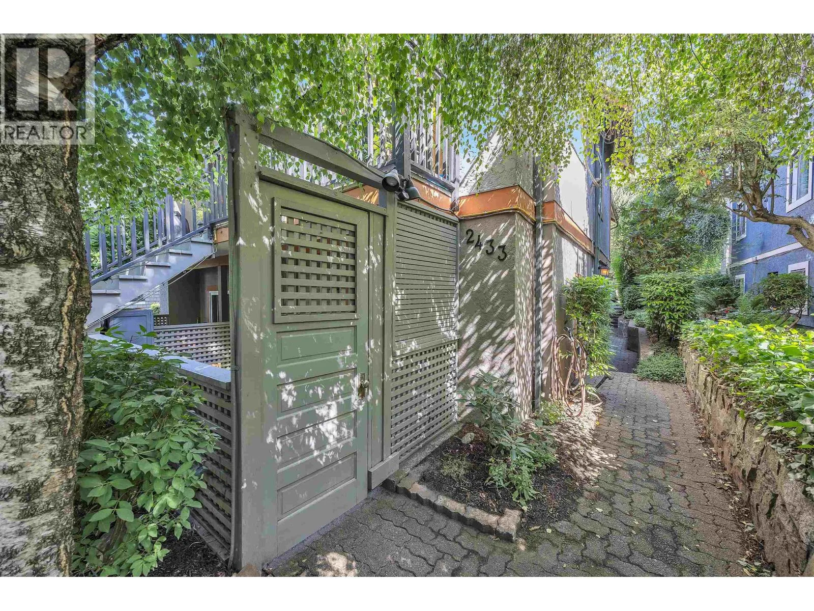 Beautifully renovated 2-bed townhome blends refined design with unbeatable walkability. 2 blocks from W 4th´s vibrant shops and cafés and mins. from Kits Beach. The chef´s kitchen flows into a spacious living space with gas fireplace and direct access to a private, south-facing patio. A bright bed and full bathroom are located on the main level, while the upper level is dedicated to a spacious primary retreat complete with custom built-ins and a sophisticated ensuite featuring a new vanity, quartz counters, and a double walk-in shower. Renovations completed with permits in 2018, including a new hot water tank. Quiet, well-managed 4-unit strata, low monthly fees. Included: wall-mounted 64" LG TV (like new), BBQ, double Murphy bed, shared bike room, and ample in-unit storage. (id:27476)