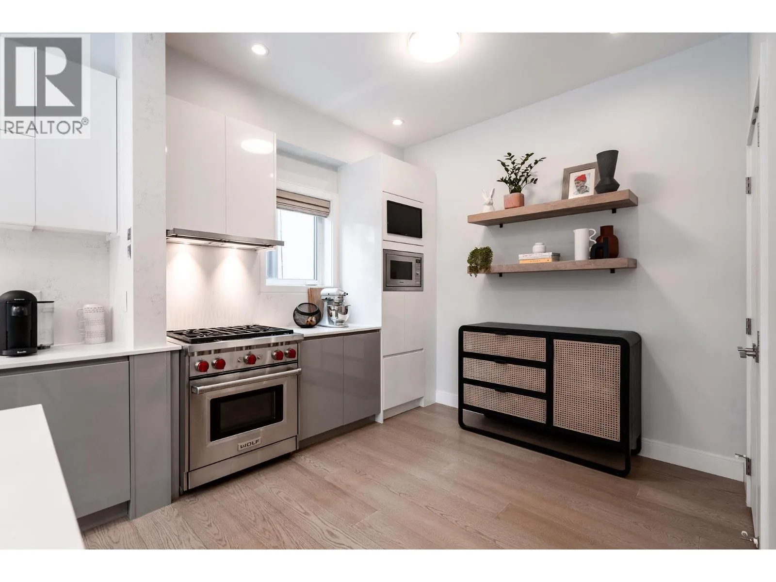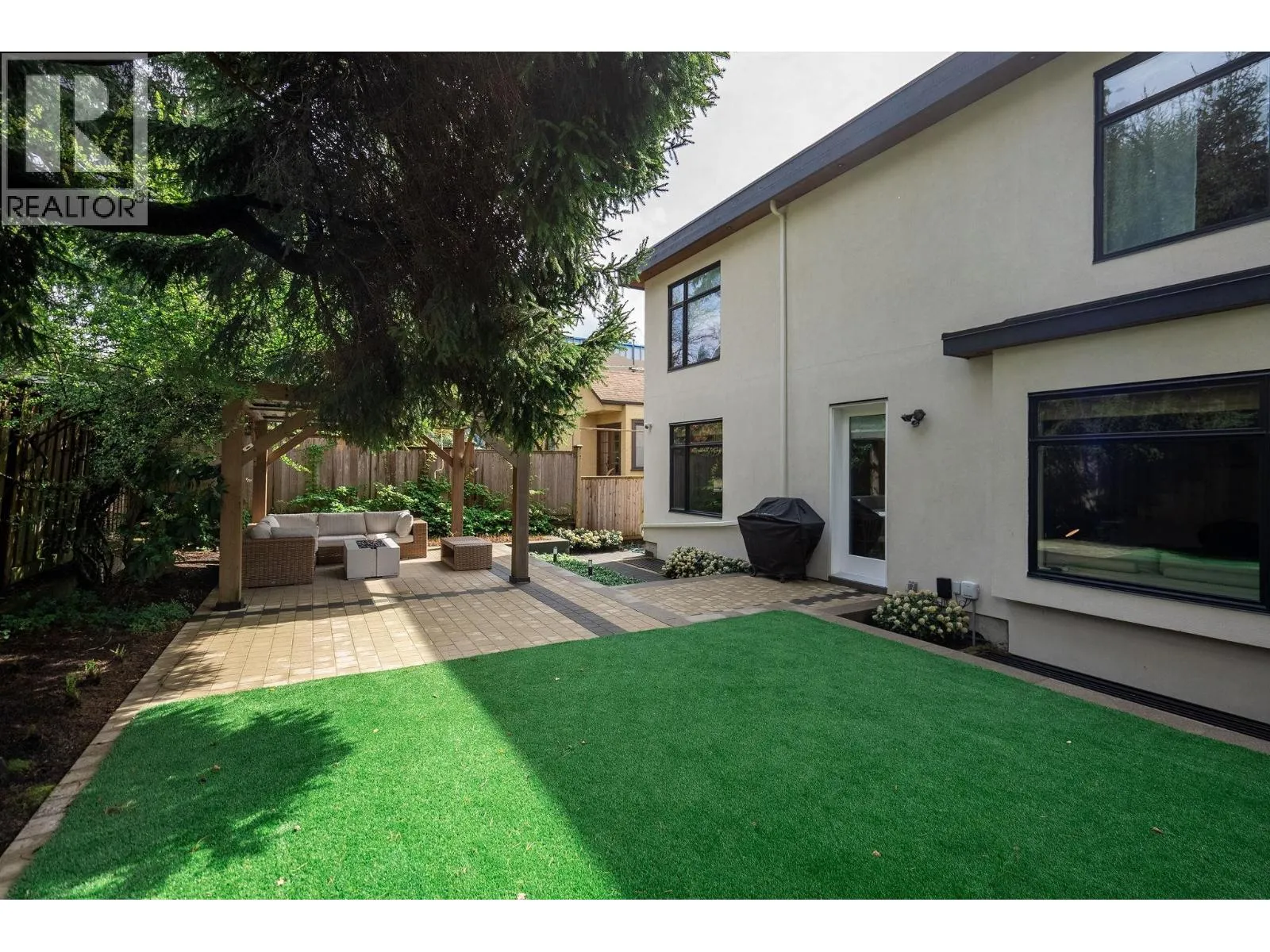 SPECTACULAR, incredibly-rare BACK half-duplex in prestigious DUNBAR with almost 2,300 square ft of beautifully finished living space & over 1700 square ft of perfectly manicured, sun-drenched, private BACKYARD space. The perfect plan with large living & dining, upstairs 3 bed/2bath & downstairs a family room, full bath, 2 beds & plumbed for kitchen (easily converted to suite). Chef's kitchen with high end appliances, Wolf gas range & quartz counters. High-end finishes throughout, engineered wood floors, arch. speakers, custom millwork, radiant in-floor heating & AIR-CONDITIONING. Stunning curb appeal & remainder of 2-5-10 warranty. Central location within Kerrisdale Elementary, Point Grey Secondary & Sir Winston Churchill school catchment. Attached garage. (id:27476)