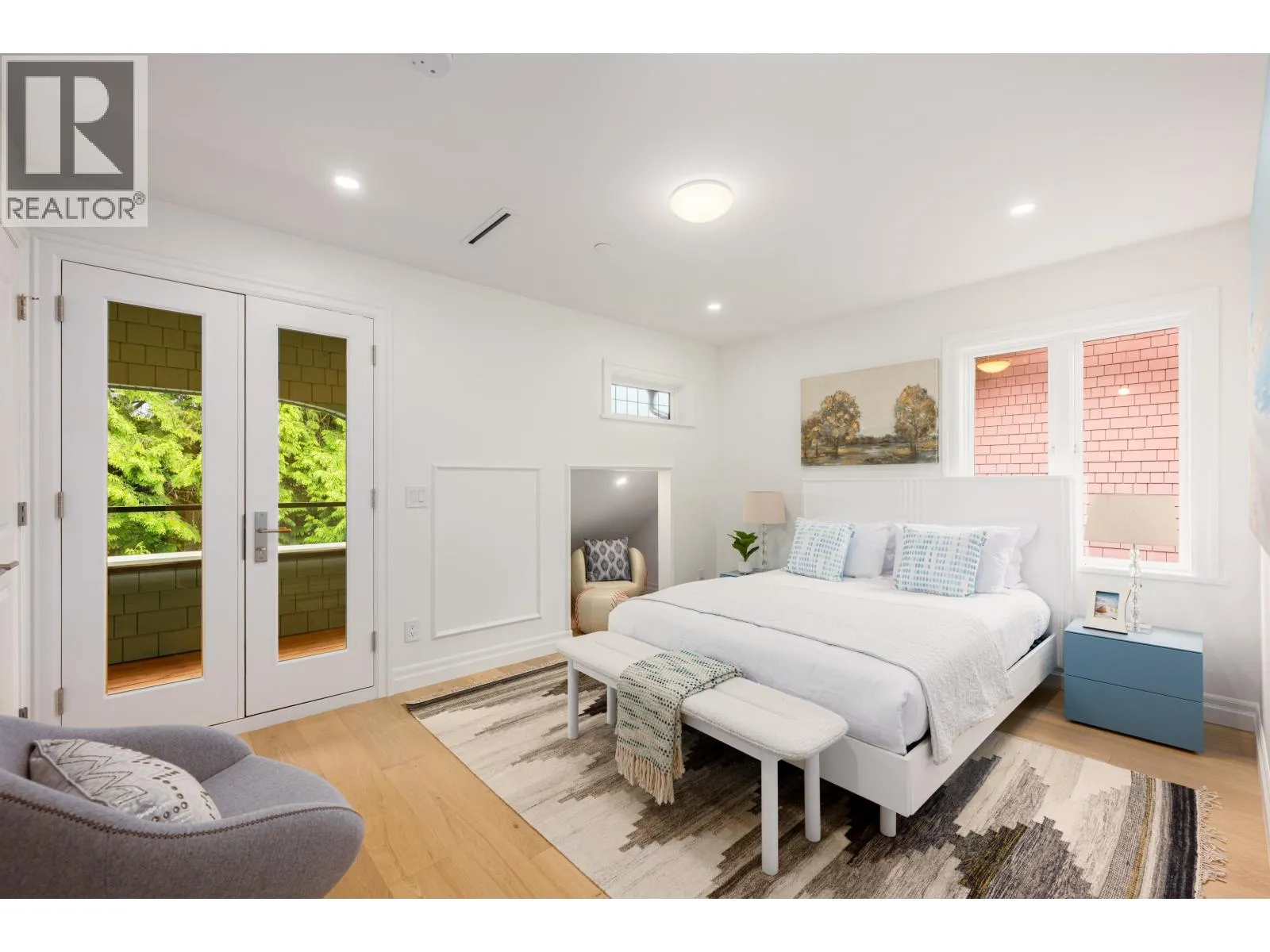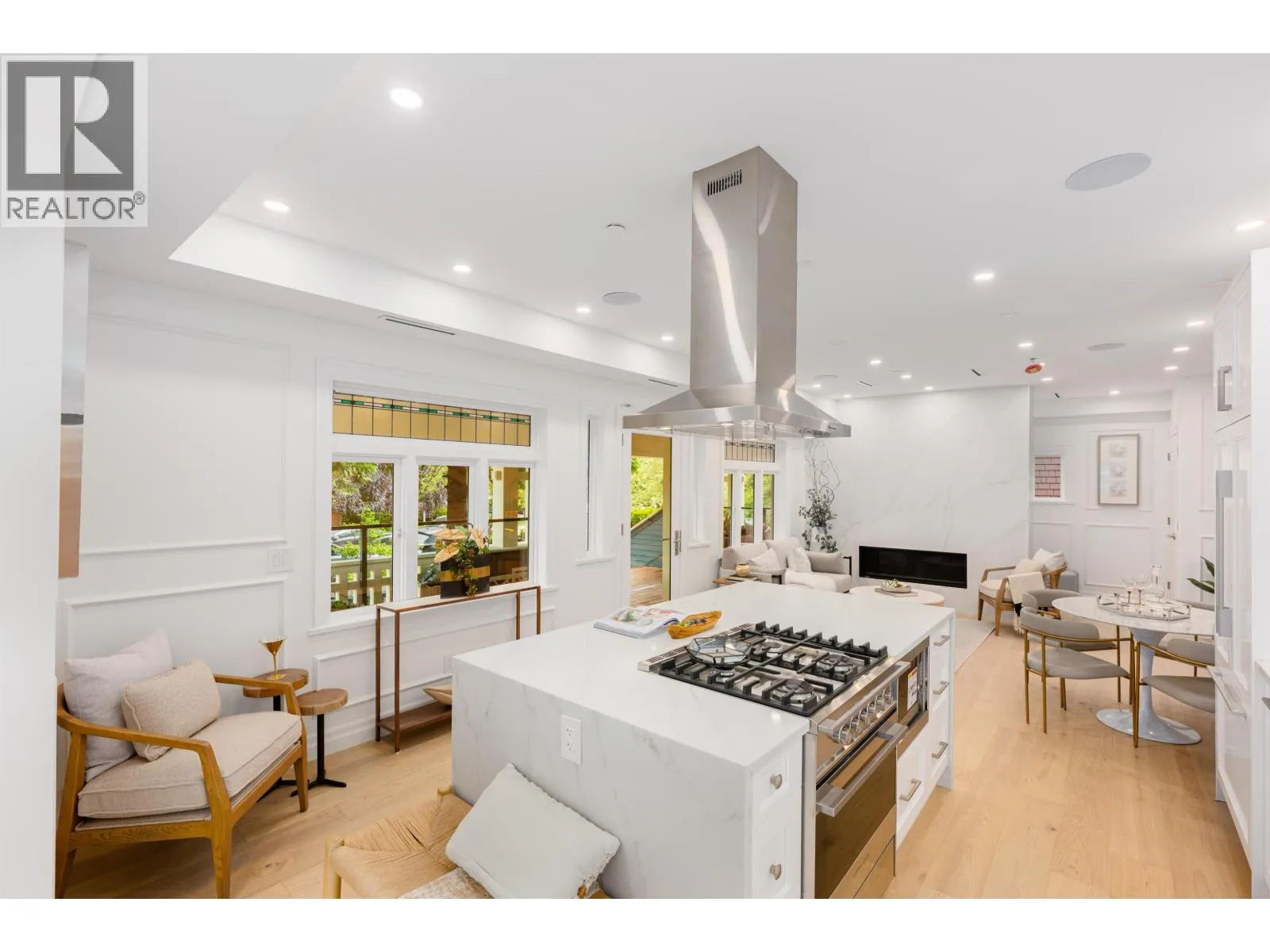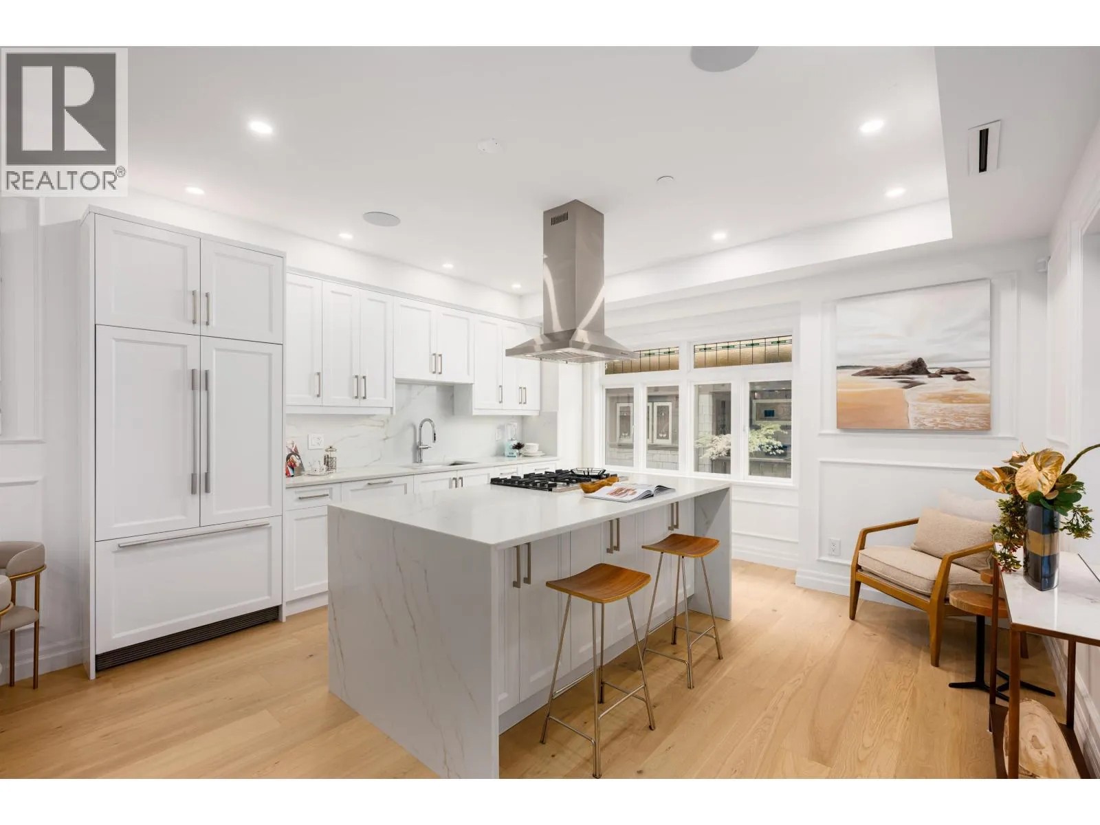 Welcome to this flagship front-facing home at the newly completed Morrison Residence. Ideally located less than a block from the Arbutus Greenway, and just steps to groceries, public transit, and every Kitsilano essential. This 1,774 square ft brand new 3-level home blends heritage character with modern comfort, featuring a gourmet kitchen with Fisher & Paykel and Miele appliances, A/C, and a beautiful front patio perfect for entertaining. Upstairs offers 2 spacious bedrooms and 2 baths, including a luxe primary ensuite. The lower level includes a large bedroom with full bath and private entry. Enjoy a built-in sound system and smart home features with remote access to select lighting, alarm, and cameras. EV-ready covered garage, additional storage, and 2-5-10 year home warranty (id:27476)