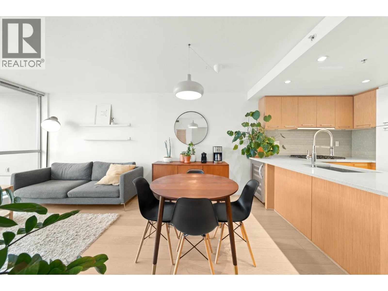 Welcome to Mantra, built by Cressey! This 673 sq ft. Sub-Penthouse 1 bed+1 bath boasts exceptional features, with a special highlight on its exquisite millwork and expansive kitchen cabinetry. The award-winning "Cressey Kitchen" is a standout, showcasing a gas cooktop, built-in microwave and oven, sleek quartz countertops, a wine cooler, and abundant cabinetry for unmatched storage and style. Custom millwork throughout elevates the home´s sophistication, adding elegance to every space. Enjoy floor-to-ceiling windows with breathtaking mountain and city views from the spacious living room, a functional den, a solarium, and a BBQ-ready patio. This concrete-constructed home also includes geothermal heating and cooling in the condo fees! Complete with 1 parking and 1 locker. (id:27476)
