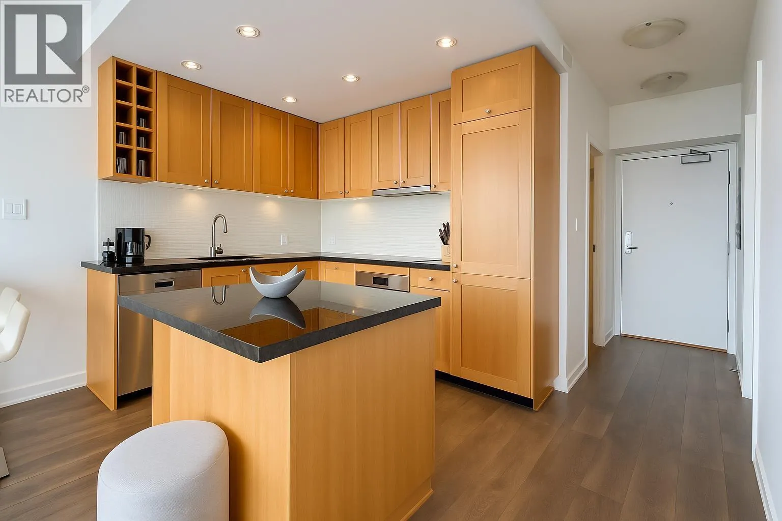 Experience stunning False Creek water views from this stylish 1 bedroom + flex home at Raffles on Robson. Enjoy panoramic vistas of Mt. Baker, the North Shore Mountains, and across to Burnaby. Features include Miele appliances, granite countertops, built-in wine rack, marble bathroom with separate shower, and intelligent air conditioning. Additional highlights: roller blinds, wide window ledges, and access to concierge, gym, hot tub, outdoor courtyard. Amenities include day concierge, gym, hot tub, outdoor courtyard and 15 visitor stalls. Open House sat/Sun 2-4pm. (id:27476)