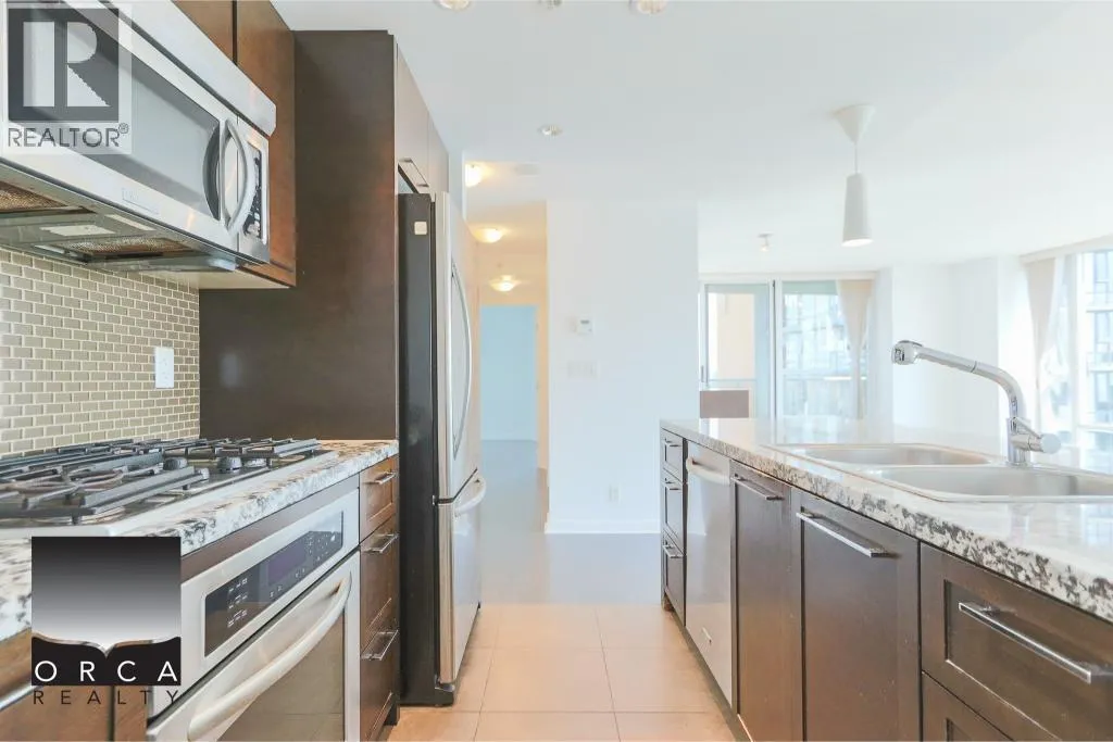 Welcome to Mariner at Cooper´s Lookout-where luxury meets waterfront living! This 2-bedroom + 2 den, 2-bathroom condo sits directly on the beach, offering panoramic south-facing views of False Creek. Designed for comfort, the open concept layout features floor-to-ceiling windows, a modern kitchen with granite counters and gas cooktop, and a versatile den perfect for a home office. Step out to your private balcony and soak in the serene waterside setting. With in-suite laundry, secure parking, and access to resort-style amenities including pool, gym, bowling alley, theatre, and concierge, this home is the ultimate Yaletown retreat just steps to the seawall, dining, and SkyTrain. (id:27476)