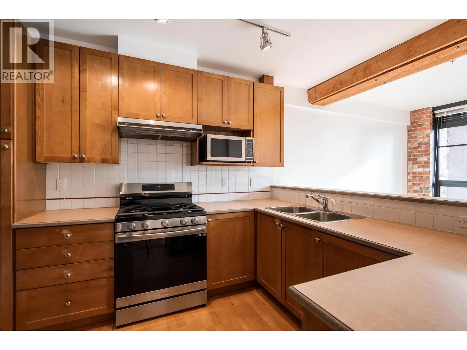 Welcome to The Grafton This New York style 2 bedroom + 1 Bathroom condo features exposed brick and beam throughout. The oversized windows flood the living space with lots of natural light. The kitchen offers an open concept floor plan, stainless steel appliances and plenty of storage. The living room has a stunning gas fireplace with concrete mantle and surround. Two generous sized bedrooms complete this space. This home comes with new in-suite laundry and 1 Parking Spot. The Grafton is located in the heart of Yaletown-close to restaurants, bars, grocery stores and The Roundhouse Skytrain Station. Book your private showing today ! (id:27476)
