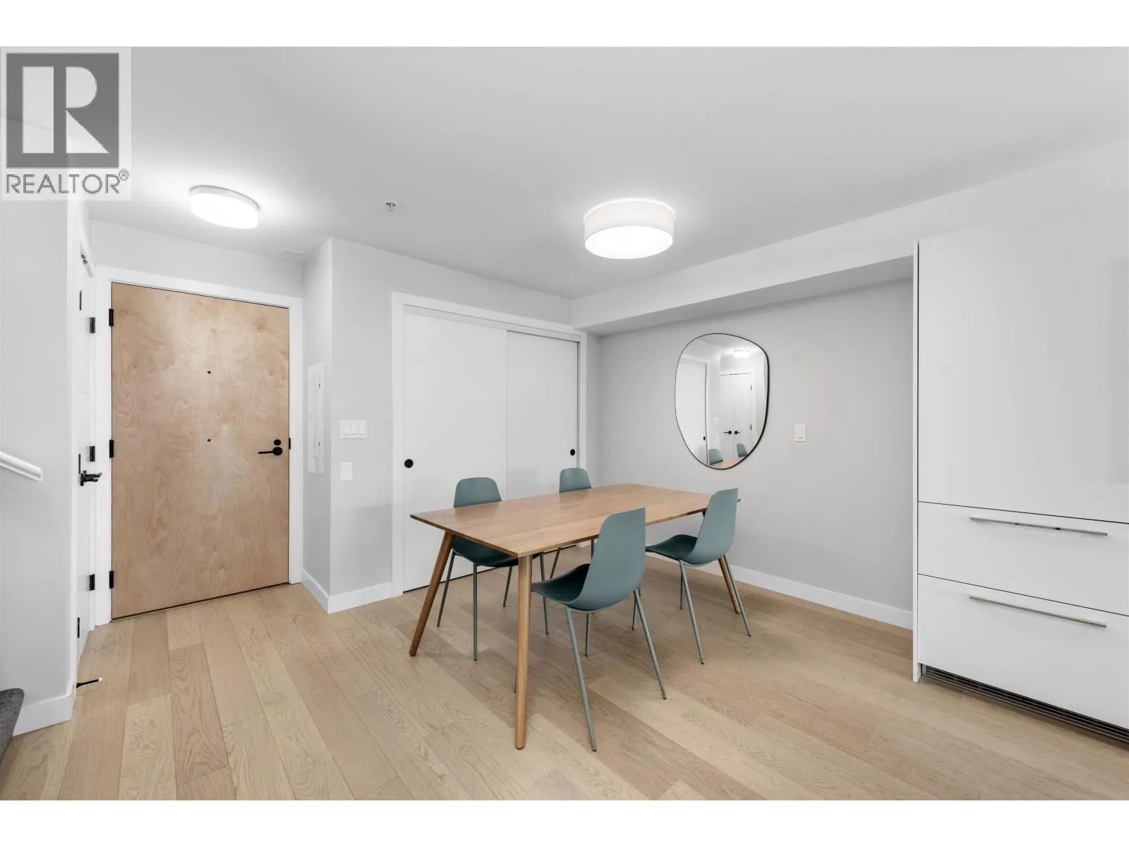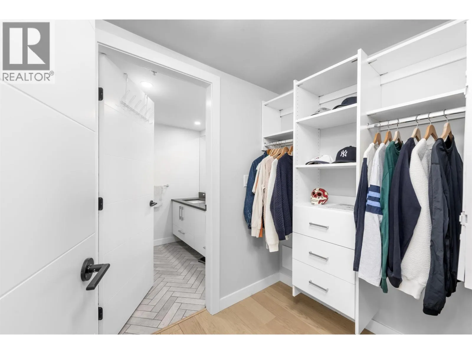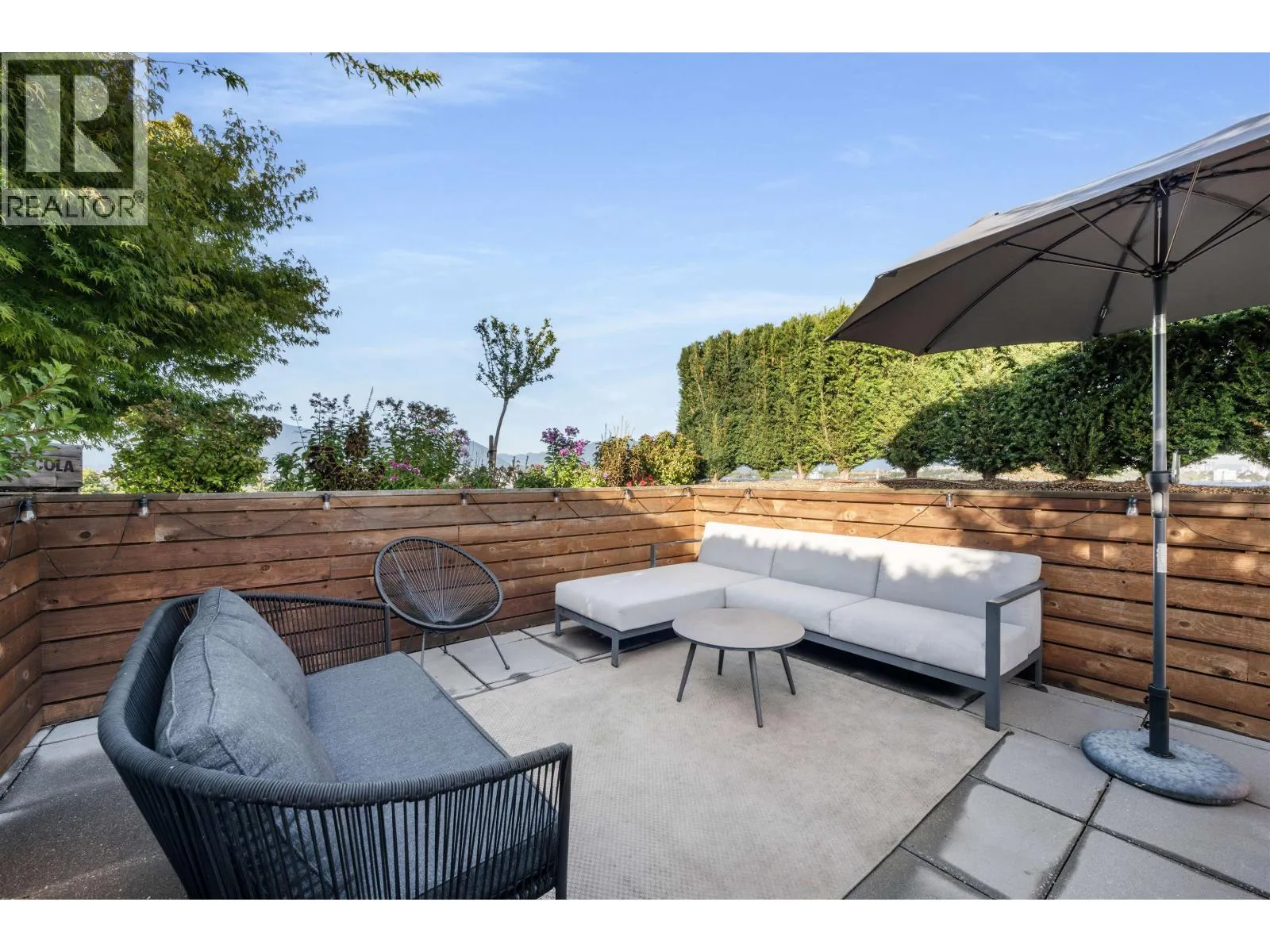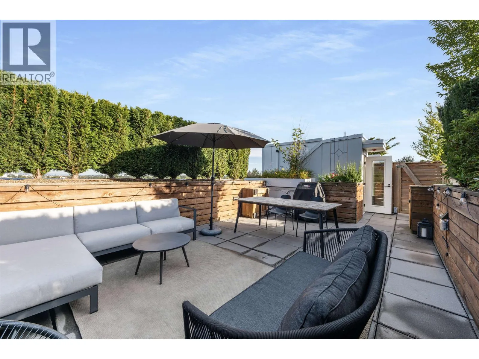 Top-floor corner penthouse in the heart of Mt. Pleasant! This bright & modern 1 bed, 2 bath home features a spacious open-concept layout with wide-plank flooring & oversized windows that flood the space with natural light. The sleek chef´s kitchen includes a large island, quartz countertops, Carrara marble backsplash, & high-end integrated appliances. The generous bedroom offers a walk-through closet & a spa-inspired ensuite with double vanity & herringbone tile. Enjoy spectacular North Shore mountain & city views from your massive private rooftop patio-complete with a gas line for BBQs, perfect for entertaining. Located in a boutique 35-unit building at Broadway & Fraser, steps to cafés, parks, transit, & Main Street. Includes 1 parking, 3 large storage lockers, & 2 bike lockers. (id:27476)