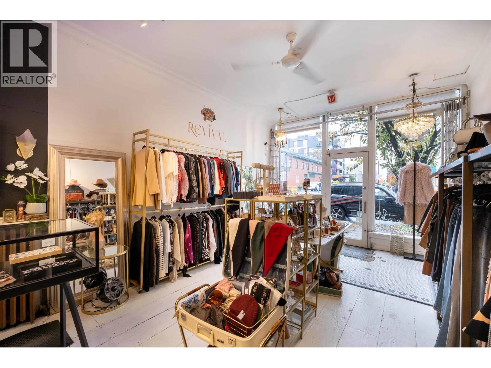 Exciting opportunity to acquire Revival, a well-established and highly curated retail brand with two prime Vancouver locations. Revival blends vintage fashion, home goods, and unique gifts into a modern lifestyle concept built around sustainability and slow fashion. The flagship store on Main Street sits in the heart of Mount Pleasant's thriving retail corridor, while the secondary location at Bentall Centre in downtown Vancouver captures strong commuter and office traffic. With an engaged customer base, strong brand identity, and a product mix that appeals to today's mindful consumers, this turnkey operation is positioned for continued growth. The business offers tremendous potential to expand online sales, develop private-label collections, and host branded events. A rare chance to step into a profitable and stylish venture with loyal clientele, excellent visibility, and endless upside in one of Canada's most dynamic retail markets. TWO LOCATIONS FOR THE PRICE OF ONE! (id:27476)