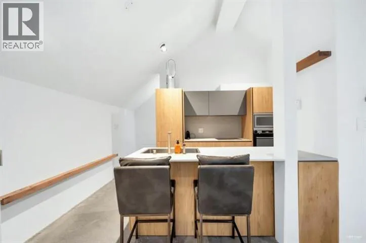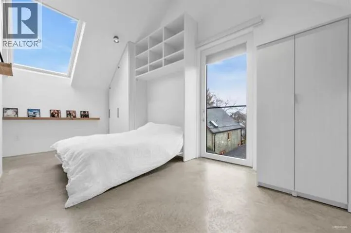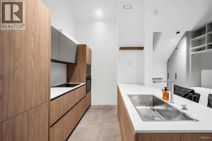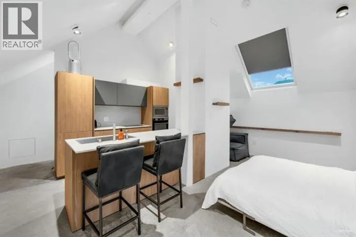 Truly 1-of-a-kind! A boutique 4-unit complex with no restrictions (AIR-BNB ALLOWED) & no maintenance fees! This top-floor West Coast contemporary studio impresses with its minimalist design, clean lines & modern aesthetic. Feat vaulted ceilings, radiant polished concrete floors & loads of natural light. Custom built-in Murphy bed with storage & electric blinds add both function & style. The kitchen is a showpiece by "Maistri" with premium "Barazza" appliances, complemented by "Oli/Toto" fixtures & Artelinea vanities & mirrors. Scandinavian Asko washer/dryer & dishwasher complete the high-end package. Located steps from the shops, schools, downtown, the NEW ST.PAULS Hospital & great restaurants/breweries. Lots of free street parking. Do not miss out on this turn key investment. (id:27476)