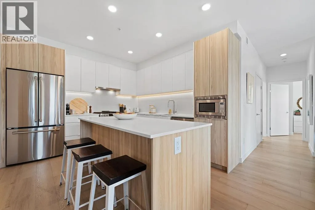 OVER 1870 SF of indoor-outdoor living awaits you with this sub-penthouse at Grafia by Porte! This NW corner home w/stunning MOUNTAIN & city views features 3 bedrooms, large den PLUS flex, air conditioning, wide-plank laminate floors, full-size S/S appliances, EV parking - & the definition of indoor/outdoor living! Designed by award-winning BYU, your home at Grafia is located in one of East Van's most coveted pockets - a 10 minute walk to skytrain, Commercial Drive with all of its restos & retail, minutes to great schools, trails, & parks including scenic Trout Lake! Amenities incl. social lounge, garden & rooftop terrace, gym, dog wash station & more. This is truly a one of a kind home w/space for the entire family - with the convenience of one-level living! Book your showing today! (id:27476)