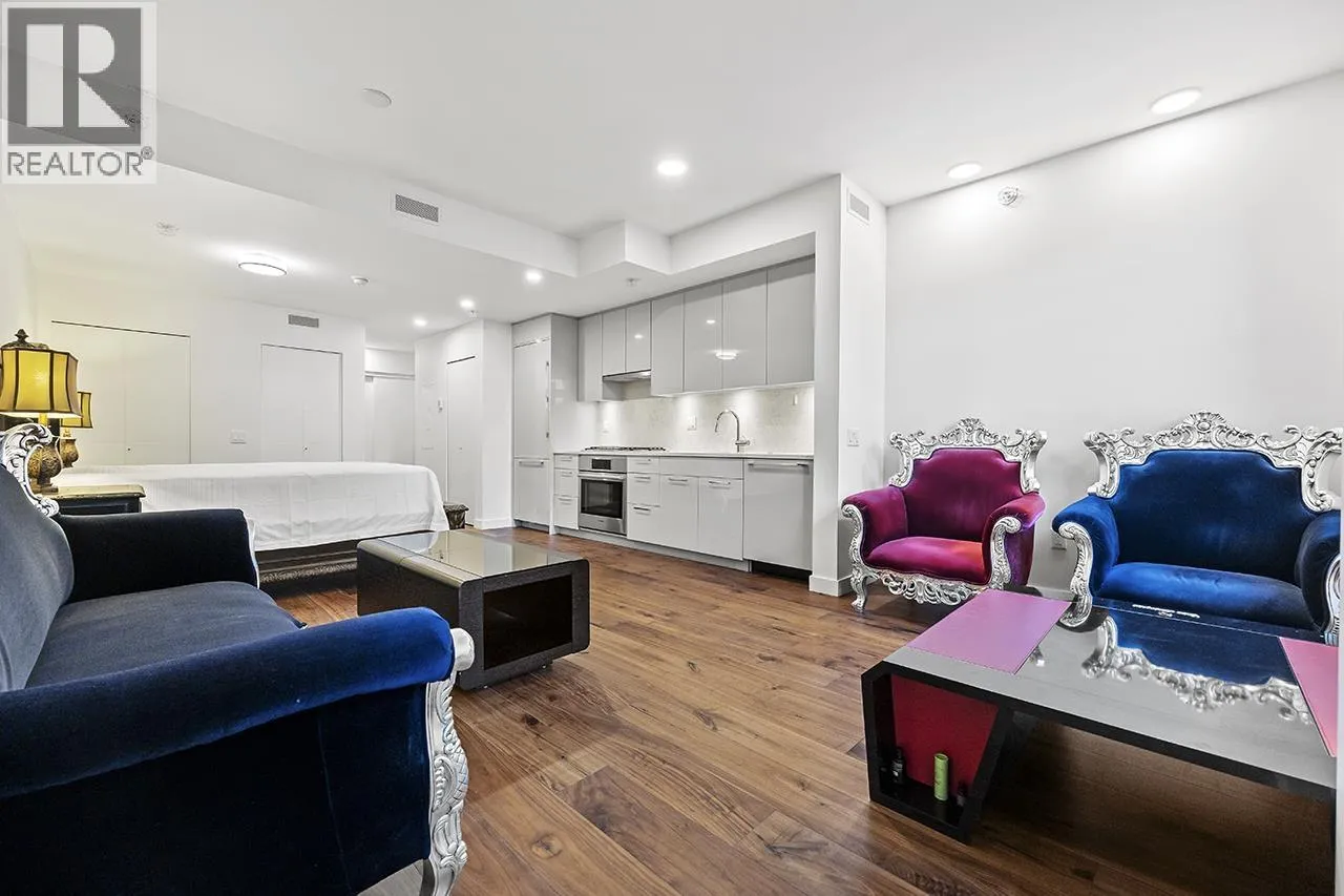 Bright, East Exposure with Peaceful Ambiance! Step into this immaculate Studio Home that feels just like new, boasting soaring high ceilings and a RARE oversized private patio. Facing east on the quiet side of the building, you´ll enjoy serene mornings with soft natural light and a tranquil setting away from the hustle. The functional open layout maximizes every inch of space, perfect for both daily living and entertaining. Truly move-in ready condition -this home offers the ideal blend of comfort, style, and privacy. Only 4 minutes´ walk to the QE Park. Come with 1 Parking. Don´t miss this rare opportunity to own a quiet urban retreat with a spacious outdoor oasis! Open House, Nov 15, Sat, 2-4p.m. (id:27476)