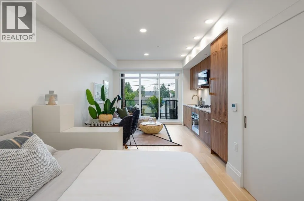 This lovely studio suite at 2550 Garden Drive features 426 sqft of open and light filled space. Incredible construction quality from trusted Developer Bucci Developments. Spacious and thoughtfully designed kitchen with premium integrated Fulgor & Milano appliances, wood cabinets and quartz counter. Further features include A/C, HRV system, 9' ceilings, engineered white oak floors, ample storage solutions, built-in laundry station, custom front entry storage niche and more! Just steps to Nanaimo St and Commercial Dr., Trout Lake Park and Commercial-Broadway Skytrain. Amenities include a social lounge, expansive outdoor terrace, garden plots and children's play area. One parking and a storage unit incl! Come see before it's gone! Fantastic investment opportunity! (id:27476)