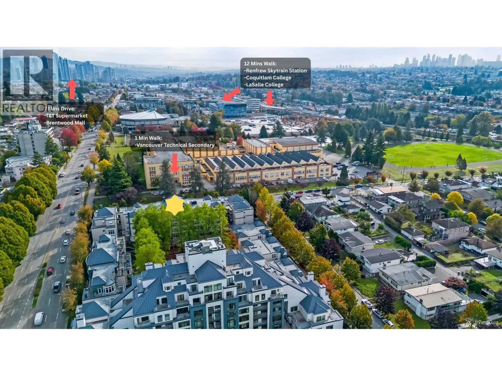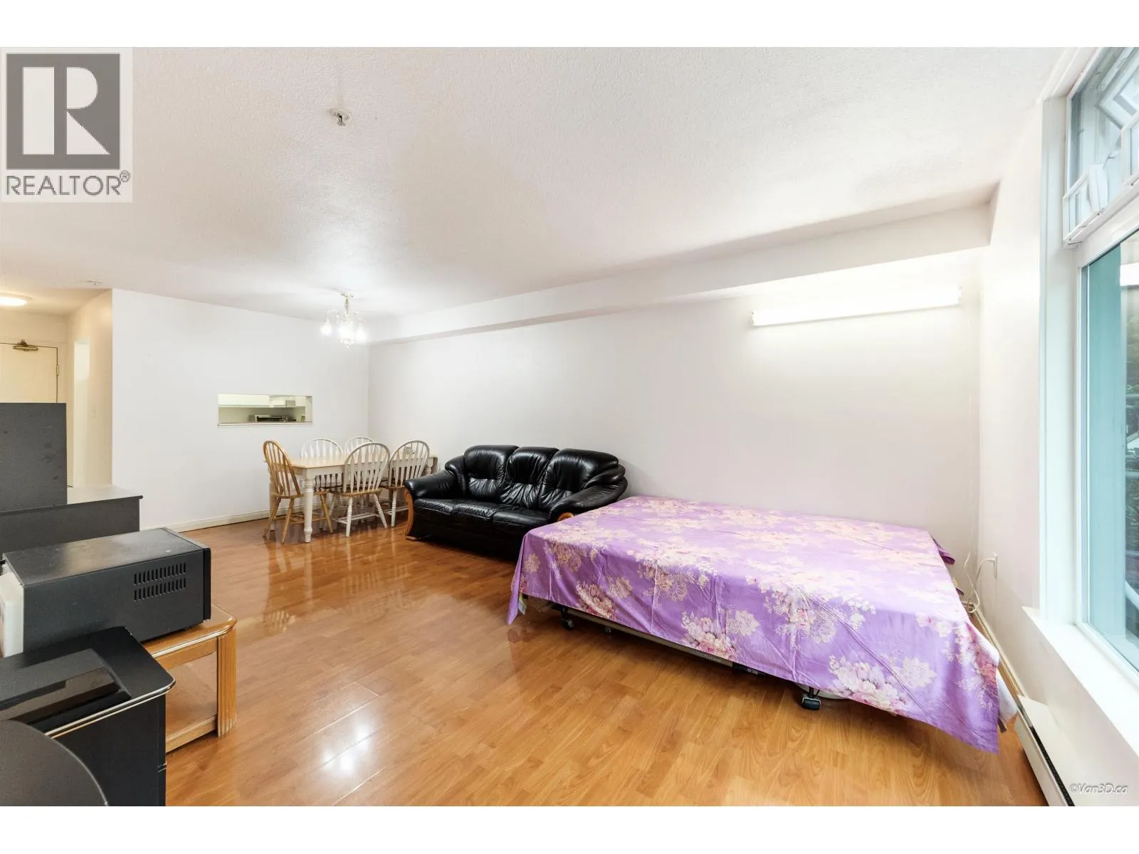 Welcome home to Gardenia Villa! This bright home faces a quiet inner street and enjoys abundant natural light. Functional layout with spacious living and dining areas, plus a large flex room ideal for an office, storage, or walk-in closet. Covered patio opens to a generous outdoor space-perfect for BBQs and for kids to play. Steps to Commercial-Broadway and Renfrew SkyTrain stations. Convenient access to Safeway, Superstore, T&T, and restaurants on Commercial Drive. 1 parking & 1 locker. Building remediation is estimated to have substantial completion around June 2026, includes the replacement of building envelope (doors/windows/cladding/siding/balcony), plumbing, roof, mechanical systems, and common building interior (carpet/paint/light fixtures) - See Documents. (id:27476)