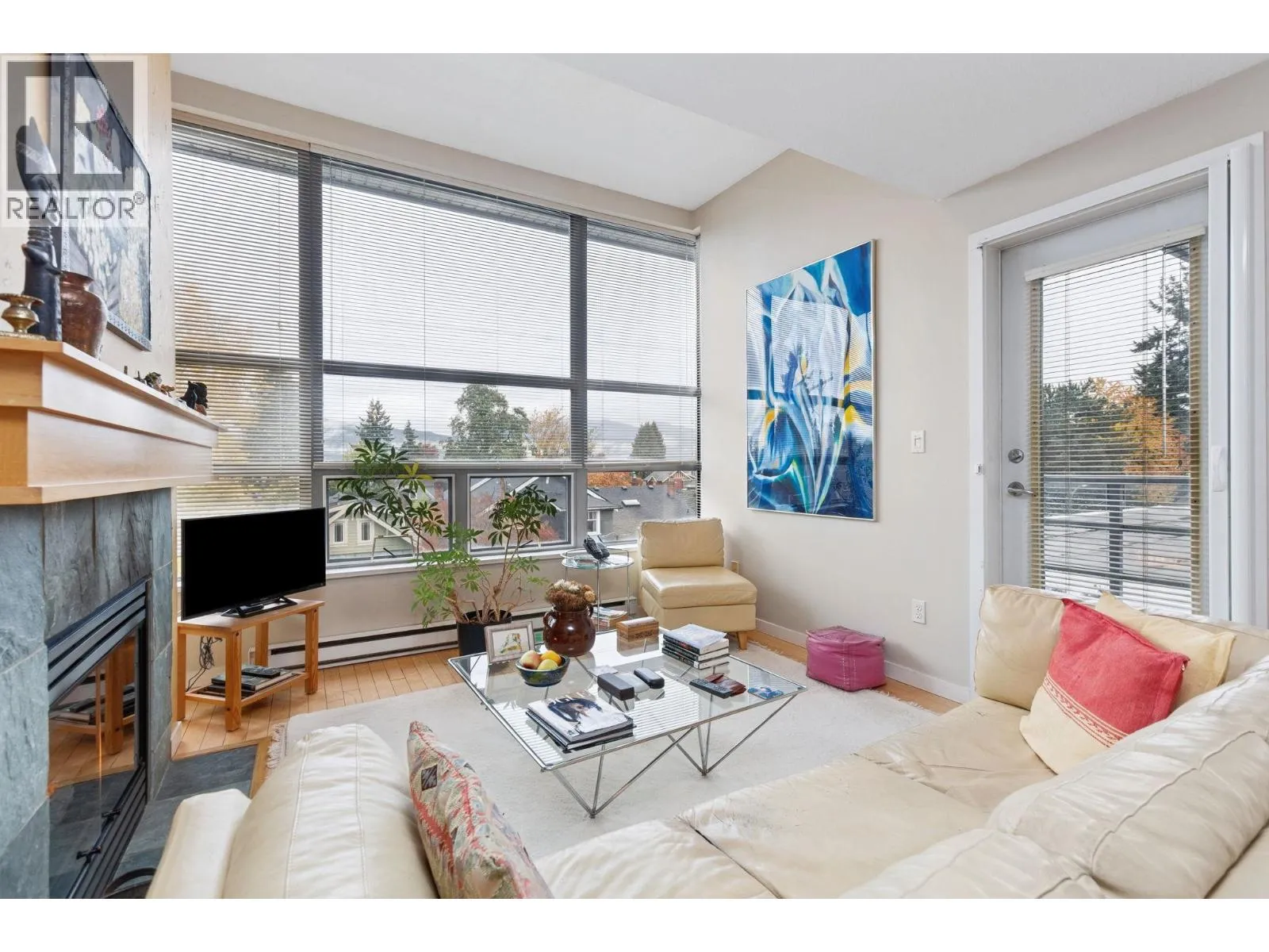 Welcome to Bridgewater by Bosa - This immaculately maintained corner penthouse suite is nestled on the quiet side of the building, offering serene living with views of the North Shore. Large windows throughout fill the space with natural light. The open-concept design features an efficient floor plan with no wasted space. Heated floors in both the kitchen + bathroom add a touch of luxury, while the cozy gas fireplace provides the perfect ambiance. Step outside onto your private deck to enjoy your morning coffee. The generously sized bedroom easily accommodates a king-sized bed. If you work from home, you will love the den with windows, providing a peaceful setting. Bridgewater is a rainscreened building, including roof replacement in 2017 + parkade membrane replacement this past year. (id:27476)