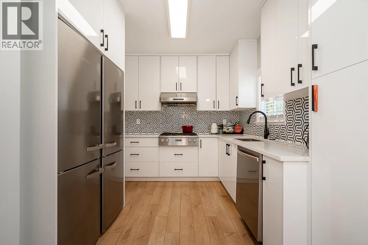 Experience the best of Kitsilano living on a sun-drenched corner lot! This beautifully updated home offers over 2,300 square ft of living space & 400+ square ft of private outdoor space. Once you enter the home, on the main level, you'll find 3 bedrooms, spacious open living & dining areas, new kitchen with high-end stainless steel appliances, crisp white cabinetry & sleek countertops. The lower level features 2 bedrooms & 2 bathrooms with lots of privacy. Enjoy a landscaped front yard, private backyard & the generously sized, detached 2-car garage offers abundant storage & parking. Zoned RT-7, offering excellent flexibility-whether you´re looking to move in, update further, or explore multi-family development potential. Just steps to West Broadway & 4th Avenue shops, & short walk to Kits Beach. (id:27476)