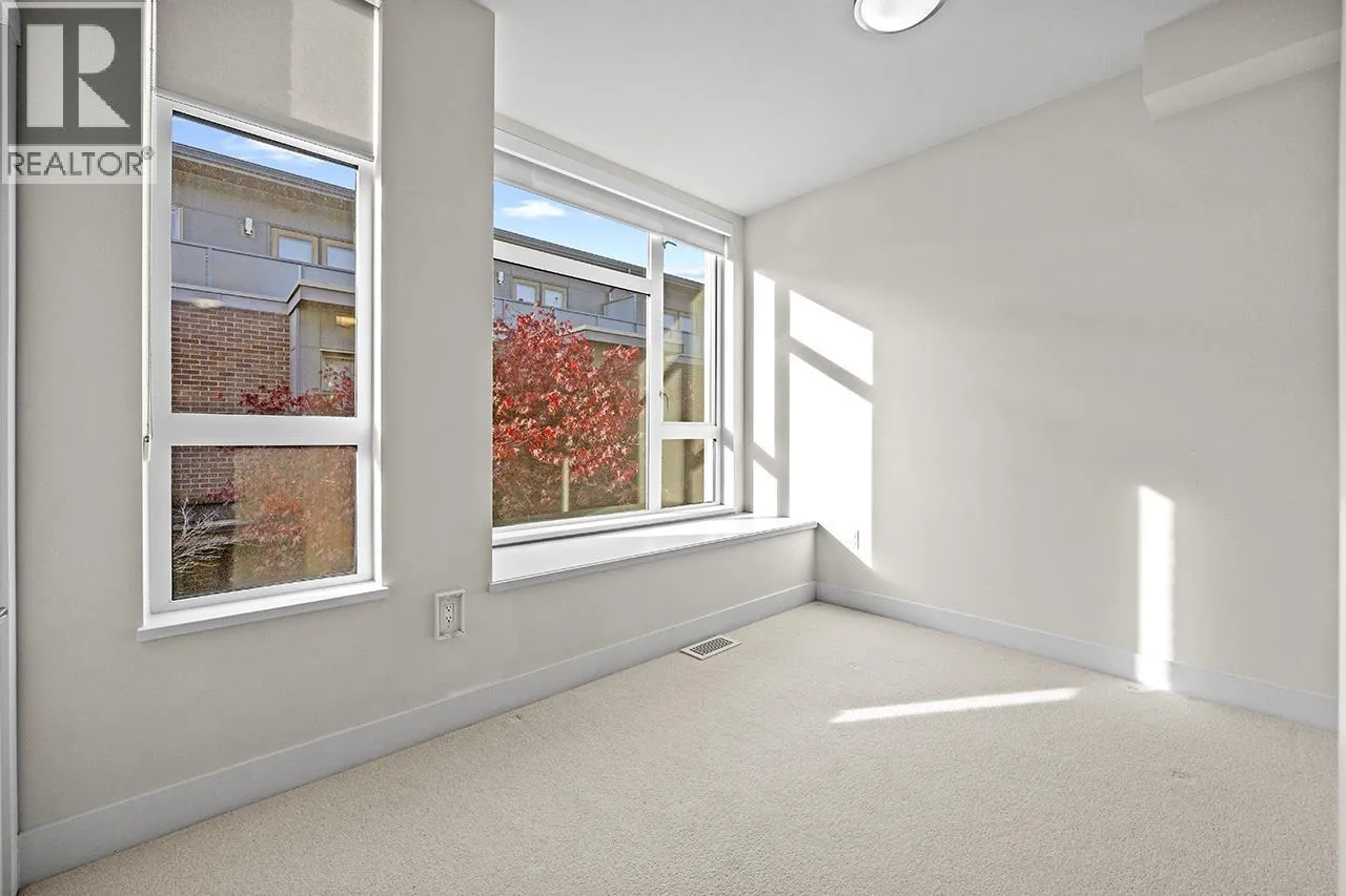 **Open House Nov 23rd Sunday 2-4pm** Welcome to 5522 Oak - a spacious 3-bed + den, 3.5-bath townhouse in the sought-after Bennett by Listraor situated in the quiet lane away from Oak. Featuring a large office/family room with direct access to garage, it´s perfect for working from home. The gourmet kitchen is outfitted with Bosch integrated appliances, quartz countertops, and sleek modern cabinetry. Enjoy engineered hardwood floors, central heating & A/C, in-home parking access, and an entertainment-sized patio. The primary bedroom includes a private balcony and a walk-in closet with custom shelving. Steps from Oakridge Mall, VanDusen Garden, and transit. (id:27476)