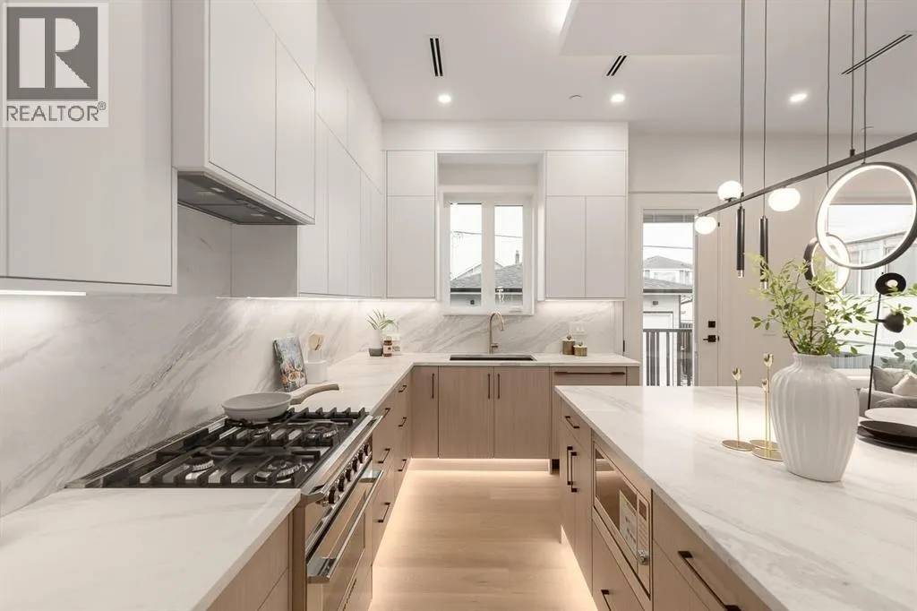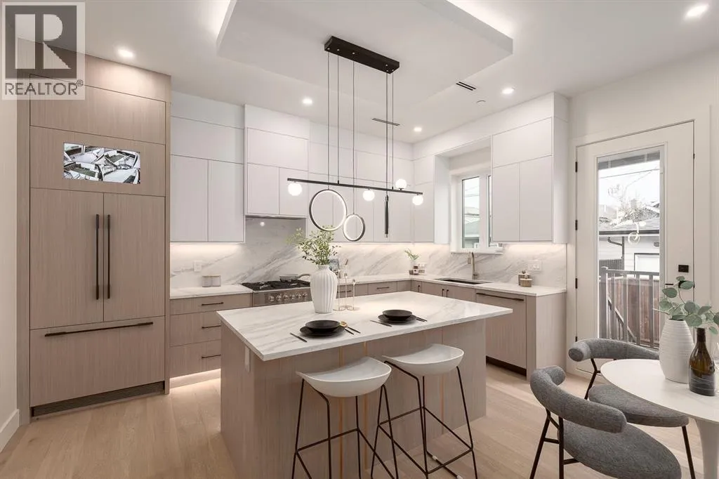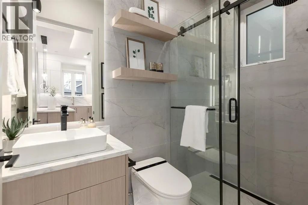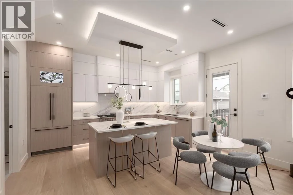 Sunny south-facing brand-new 1/2 duplex in a vibrant neighborhood close to parks, shopping, and community centers. Enjoy a private backyard, gourmet kitchen with quartz counters, custom cabinetry, Italian Fisher & Paykel appliances including gas range, fridge, and dishwasher. Soaring 10-ft ceilings, engineered hardwood floors, and large windows fill the home with natural, blissful sunshine. Bathrooms include a sleek ensuite and a smart toilet on the main. Downstairs flex space with sink and full bath offers versatility. Includes radiant heating, central heat pump, security system, crawl space, and detached garage with durable grey epoxy-coated floor. Front unit also available. Open House Sat/Sun 3-5 PM. (id:27476)