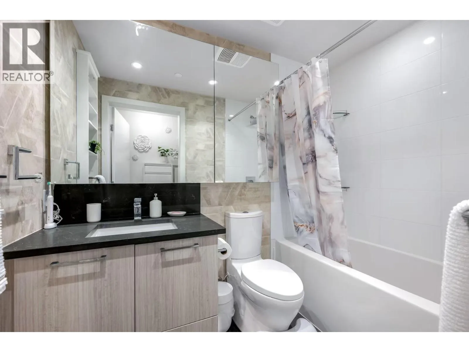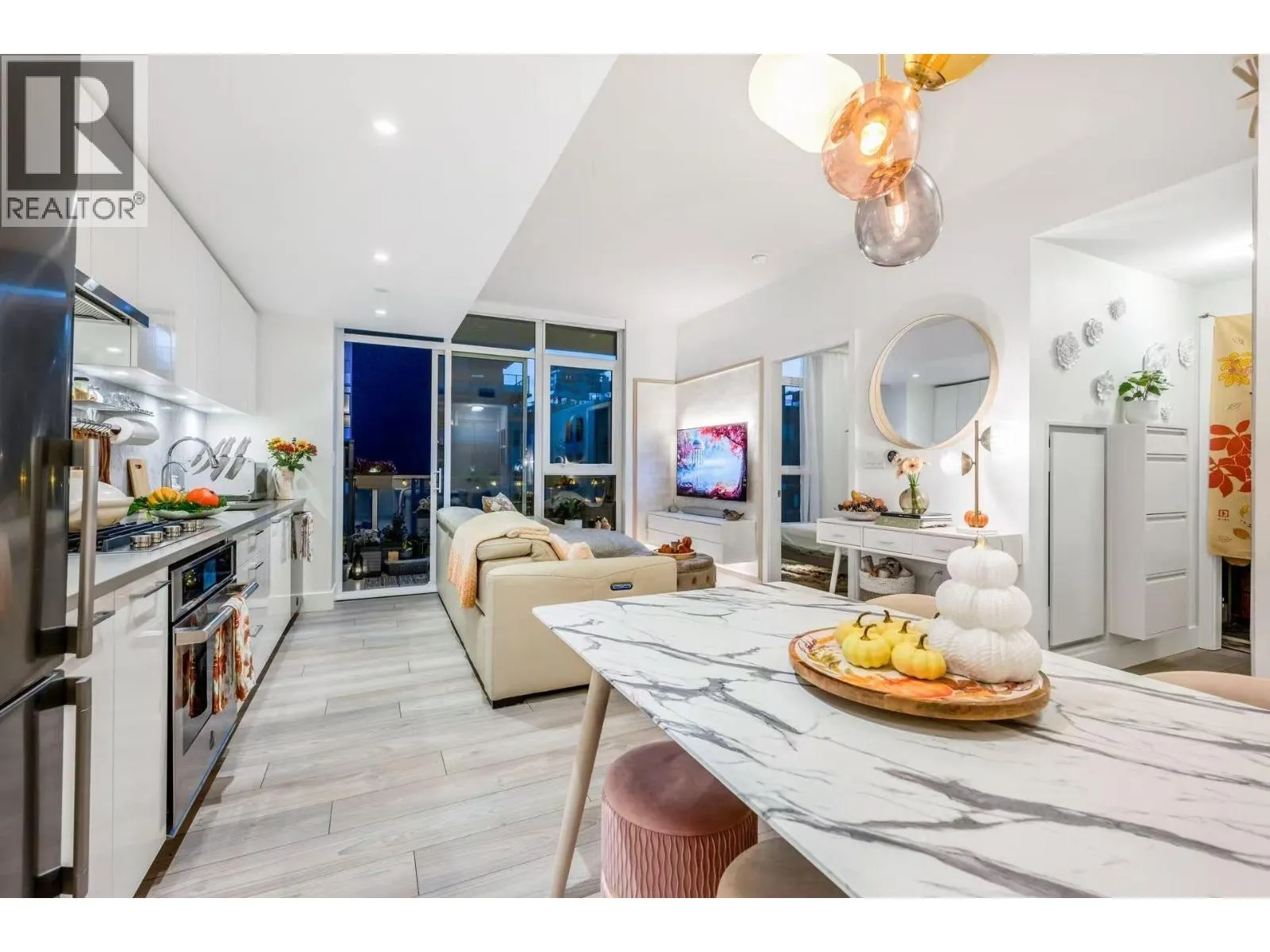 Like new 1 bedroom at Avalon. This concrete construction unit faces the quiet Avalon courtyard offering a private and peaceful outlook. Beautiful stainless steel appliances, a gas cooktop and heating & cooling are equipped in the home. This unit features an den/flex and also includes a storage locker and a parking stall. Live in the fast growing River District community with waterfront trails at your doorstep, retails including Save on Foods and Shoppers Drug Mart. Restaurants, wine store & bank nearby. (id:27476)