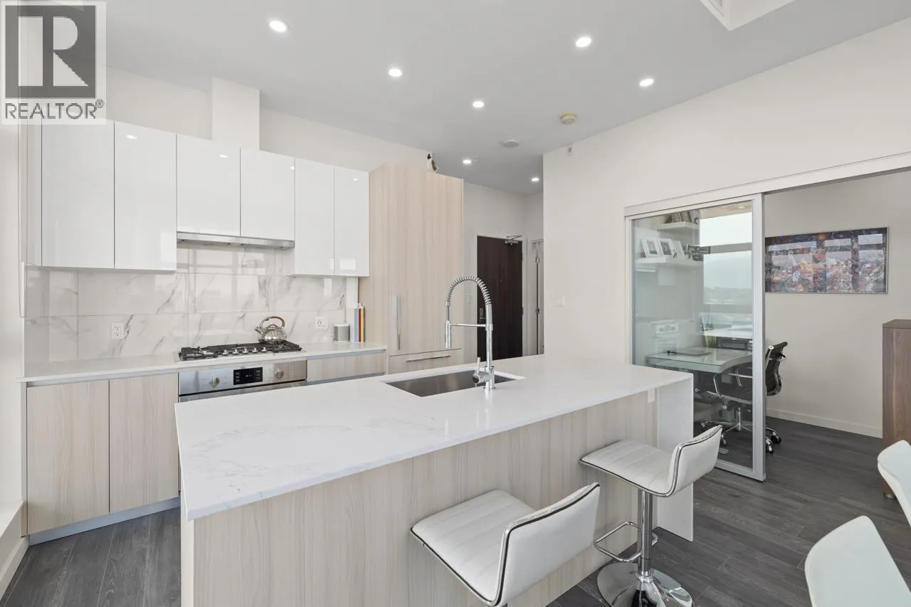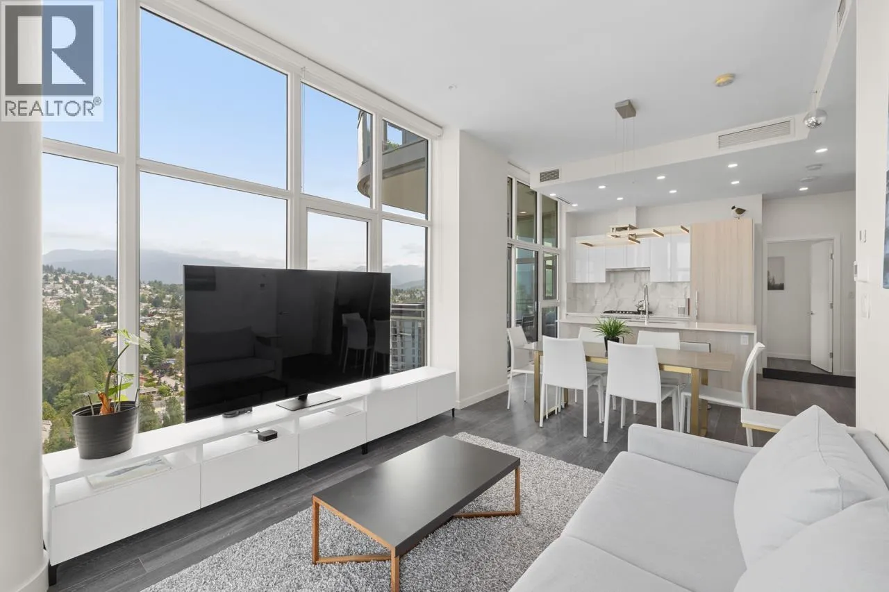 Stunning 2 Bed + Den, 2 Bath Sub-Penthouse in the heart of Brentwood! Bright corner unit with 10´5" ceilings, floor-to-ceiling windows, and panoramic NW city & mountain views. Chef´s kitchen with gas stove & high-end appliances. Luxurious primary bathroom with soaker tub & glass shower. Comfort year-round with heat pump heating & A/C. 2 balconies totally 375 square feet, access from primary bedroom, kitchen and the living room. Includes 2 EV parking stalls & storage locker. Resort-style amenities: outdoor pool, hot tub, full gym. Steps to transit, Amazing Brentwood, and quick access to Hwy 1. Urban living at its finest! Open House Sun 2-4! (id:27476)