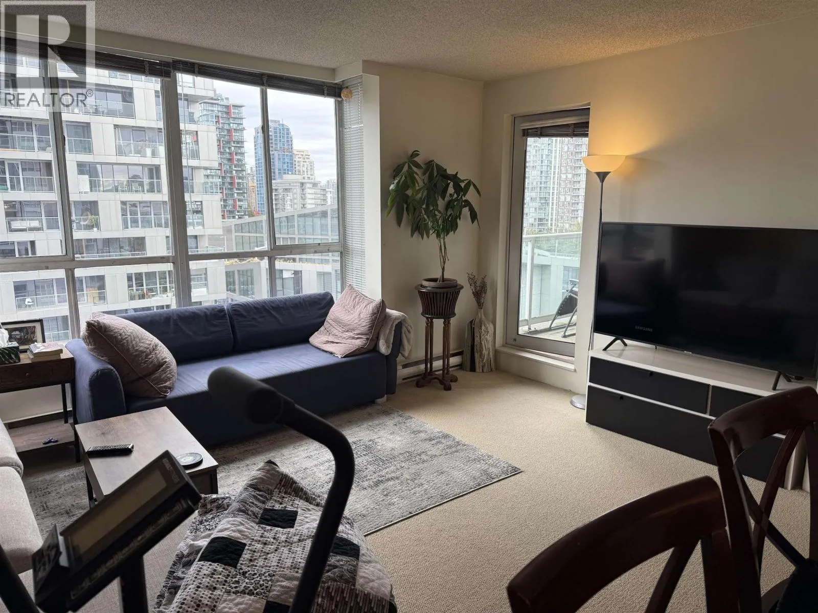 STEPS TO THE SEAWALL. Live in vibrant Yaletown, in a rare quiet and tranquil spot. Spacious and bright, open concept one bedroom condo, with a city view, and a peak at the water too. Some suite upgrades with room to add your own touches - shows well. With large principal rooms, there is loads of room to entertain, bedroom easily accommodates a king size bed. Features a patio for BBQ, in suite laundry room, parking, and storage. The Discovery is a well maintained, pet free concrete building with a live in building manager, guest suites, gym, sauna, hot tub, amenity room and a generous contingency fund. Open House Sunday November 9th from 2-4pm. (id:27476)