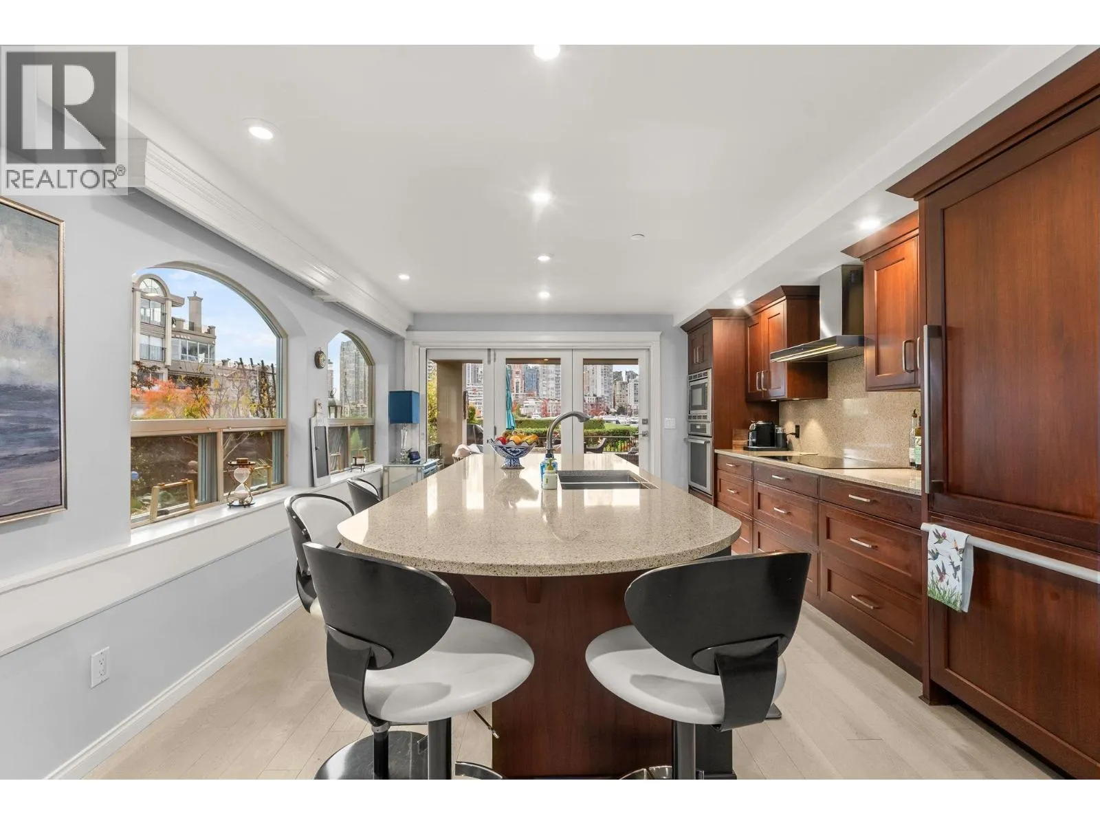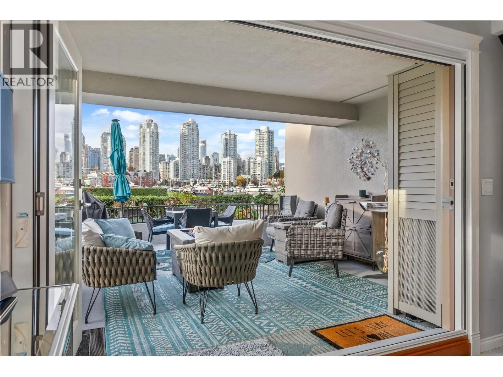 A stunning water view, waterfront condo that is set back from the False Creek Seawall giving privacy. This end unit has an expansive patio upfront with a garden to putter in alongside the whole length of the condo. Private entrance off the patio. A Walker´s Paradise.... A gourmet entertainer´s kitchen. High-end appliances. Spa-like bathrooms. A dining room area that will fit 8-10 people. All your friends will be coming over for a visit. AIR-CONDITIONING, GAS FIREPLACE, PET-FRIENDLY. One level, ground floor. Only one common wall with neighbour. Close to grocery, drug and hardware stores. Close to Granville Island, Olympic Village, VGH and the Canada Line Skytrain. Come live your best life! (id:27476)