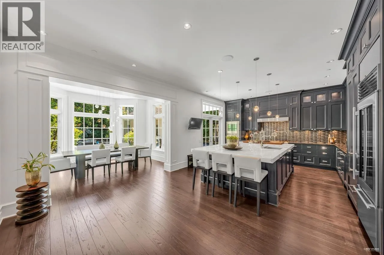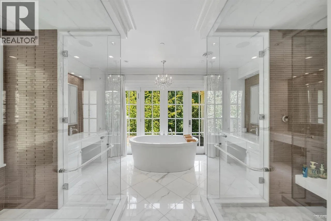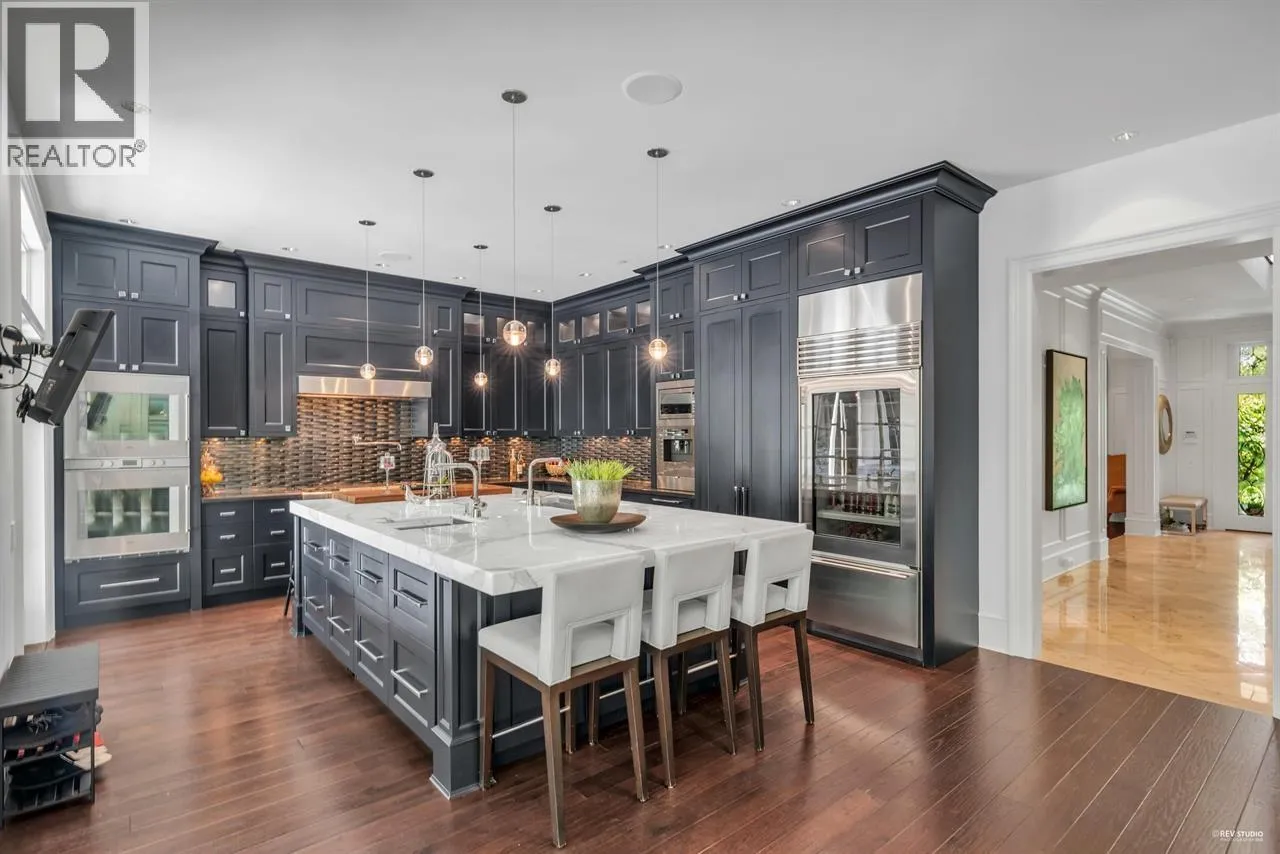 Luxurious custom built world class mansion in most prestigious FIRST SHAUGHNESSY area! Superior standards with high quality materials, workmanship & appliances on a sensational open floor plan sprawled over 4 levels. Situated on a large lot 14,659 SF, boasts 6260 SF elegant living space. This beautiful home with professional exterior and interior design, offers Gourmet Chef's Kitch w/high-end cabinetry and all top brand appls, delightful eating area with cozy bay windows; Master bdrm is oversized with walk in closet and spa like ensuite. Eclipse French Drs, inset panelling, Wine Cellar, Media rm, swimming pool, Jaccuzi & outdoor Cabana. Beautiful landscaped garden. Meticulous attention to detail. Truly a masterpiece of craftsmanship & architectural splendour. (id:27476)