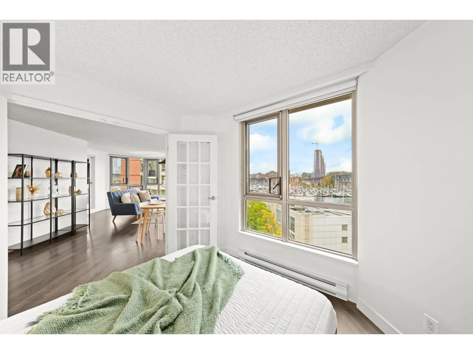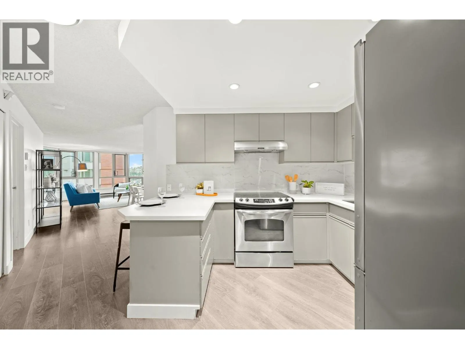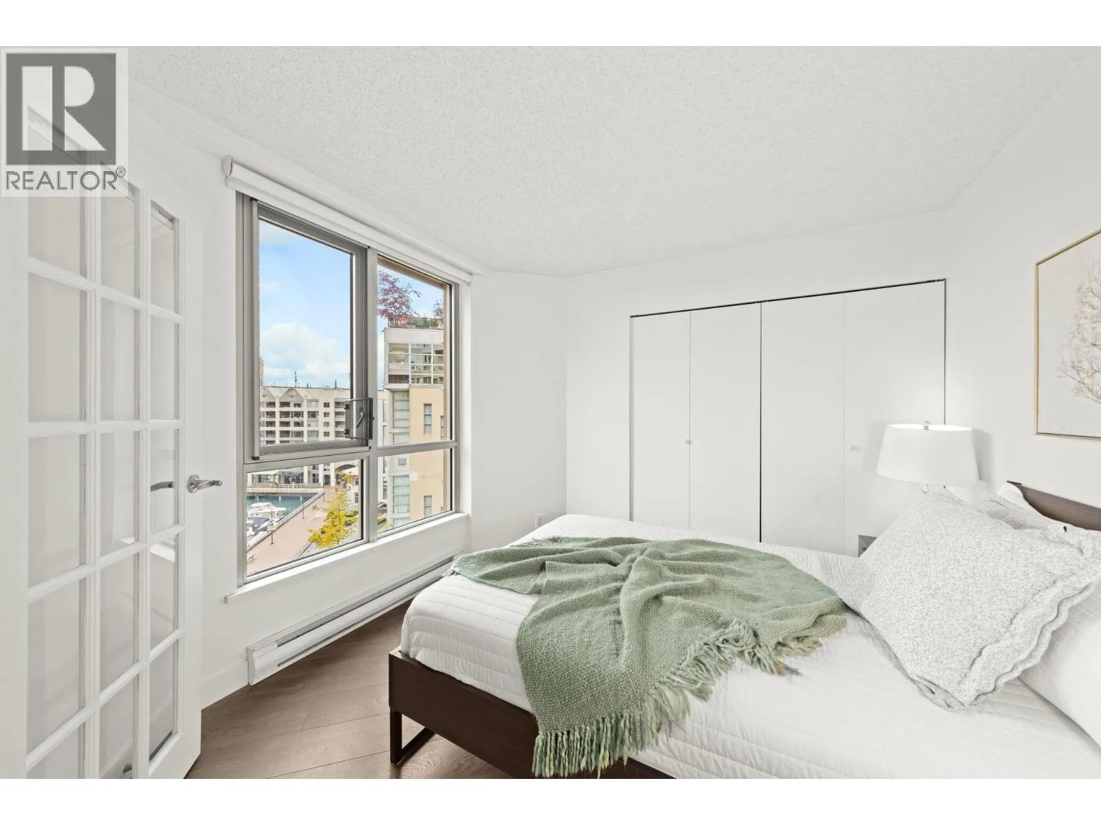 Experience waterfront luxury at this updated 2 bed 2 bath residence, perfectly positioned steps from Vancouver´s iconic Seawall. From sunrise to sunset, take in sweeping panoramic views of the ocean, marina, Granville Island, and the Burrard Street Bridge. Freshly painted & thoughtfully renovated, this unit features a modern feel with refined finishes and laminate flooring throughout. Updated kitchen with bar seating opens to bright dining and living room. Primary bedroom includes ensuite bathroom & walk through closet. Located in one of Vancouver´s most sought-after neighbourhoods, enjoy world-class dining, boutiques & waterfront strolls just outside your door. Prepaid lease until 2084. Includes same-floor storage locker & underground parking stall. OPEN HOUSE: SUN NOV 23RD 2:00-4:00PM. (id:27476)