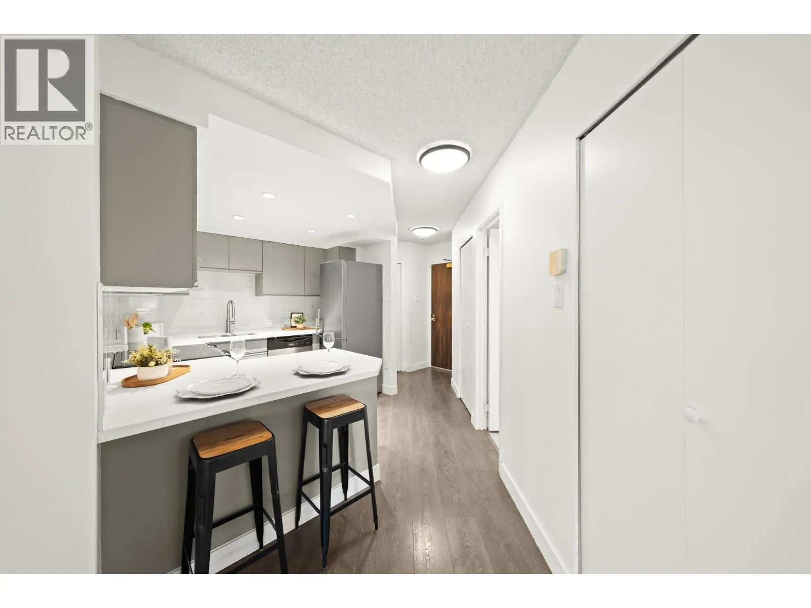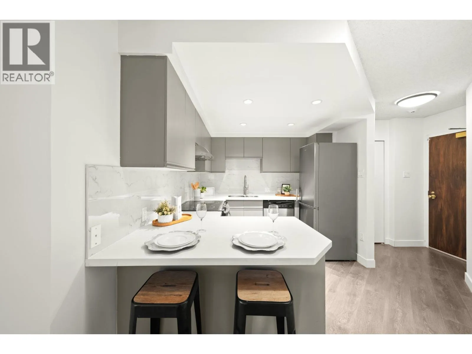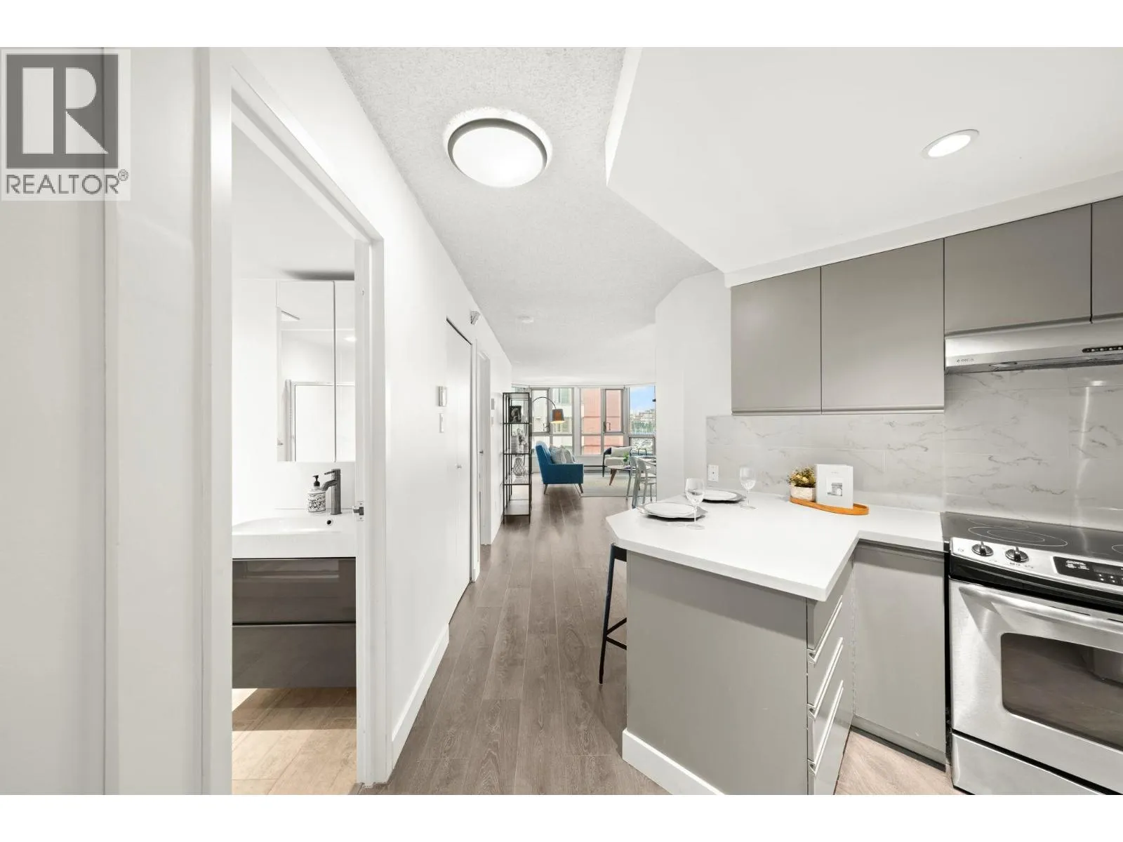 Experience waterfront luxury at this updated 2 bed 2 bath residence, perfectly positioned steps from Vancouver´s iconic Seawall. From sunrise to sunset, take in sweeping panoramic views of the ocean, marina, Granville Island, and the Burrard Street Bridge. Freshly painted & thoughtfully renovated, this unit features a modern feel with refined finishes and laminate flooring throughout. Updated kitchen with bar seating opens to bright dining and living room. Primary bedroom includes ensuite bathroom & walk through closet. Located in one of Vancouver´s most sought-after neighbourhoods, enjoy world-class dining, boutiques & waterfront strolls just outside your door. Prepaid lease until 2084. Includes same-floor storage locker & underground parking stall. OPEN HOUSE: SUN NOV 23RD 2:00-4:00PM. (id:27476)