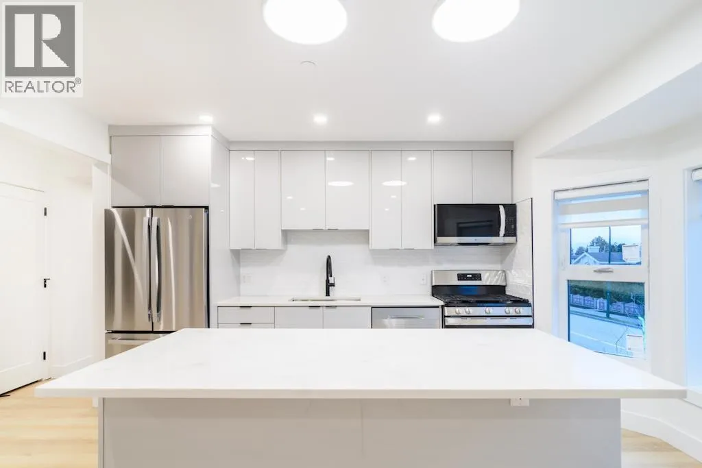 BRAND NEW, centrally located 3 bed, 2 bath, Air Conditioned single-level home on the main floor of an exclusive 4-unit complex. NO Strata Fees! Blends heritage charm with modern living. Efficient layout (no wasted space on stairs!), ideal for aging in place, with an open plan, 9' ceilings, abundant windows, and natural light. Stylish kitchen boasts SS appliances, quartz counters, and perfectly located island. Elegant bay window with wrap-around views. Spacious bedrooms with organized closets; primary features ensuite and walk-in closet. Enjoy drinks on spacious balcony with mountain views! Minutes from Hwy 1, parks, shopping. Walk to Skytrain, close to bike paths-perfect for car-free living. Across from Sir Wilfred Grenfell Elementary. Open House Sunday Nov. 16, 2-4 pm. (id:27476)