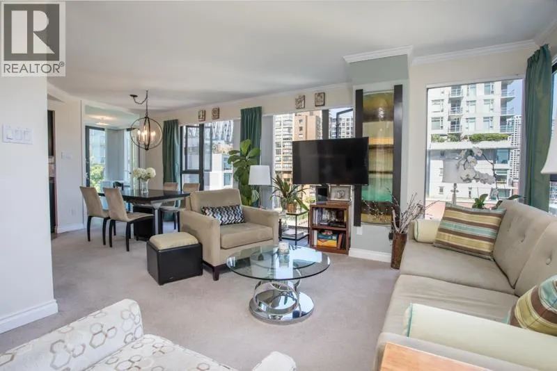 Perched on a bright corner, this 2 bed + 2 bath + solarium home is designed for both style and function. Floor-to-ceiling windows capture morning sunrises to the east and glowing sunsets to the west, filling the space with natural light and refreshing cross-breezes year-round.The kitchen is a rare standout with granite counters, stainless appliances, and its own picture window framing sweeping city views as you cook. Bedrooms are thoughtfully separated for privacy, while the versatile solarium makes an ideal home office or reading nook.City Crest offers resort-style amenities - a fully equipped gym, games room, resident´s lounge, and lush garden courtyard. Step outside and you´re moments from the Seawall, the marina, world-class dining, designer shopping, and the Canada Line. With secure parking, storage, and a pet-friendly community, this is your chance to claim the ultimate Yaletown lifestyle. Bring your design ideas! Open House Sat Nov 8th 1:30-3pm (id:27476)