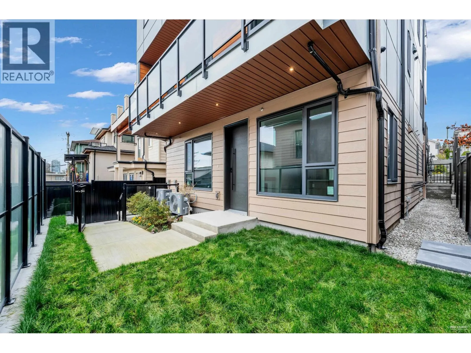 Modern 3 BDRM/2 BATH ground-level home in a premier 4-plex with high-end finishes & ZERO strata fees. Just 1 min walk to bus stop with direct SkyTrain & Waterfront access and 5 mins walk to restaurants & Canadian Superstore. Contemporary open-concept layout with triple-glazed windows, energy-efficient systems & highest noise-reduction level with upper floors. Features front & back two separated entrances & private yards, alarm, sprinklers, security cameras & abundant street parking. Inside: gas stove, heat pump (heating/cooling). This one is a MUST SEE! Condos nearby are sold at $1000/sqft! (id:27476)