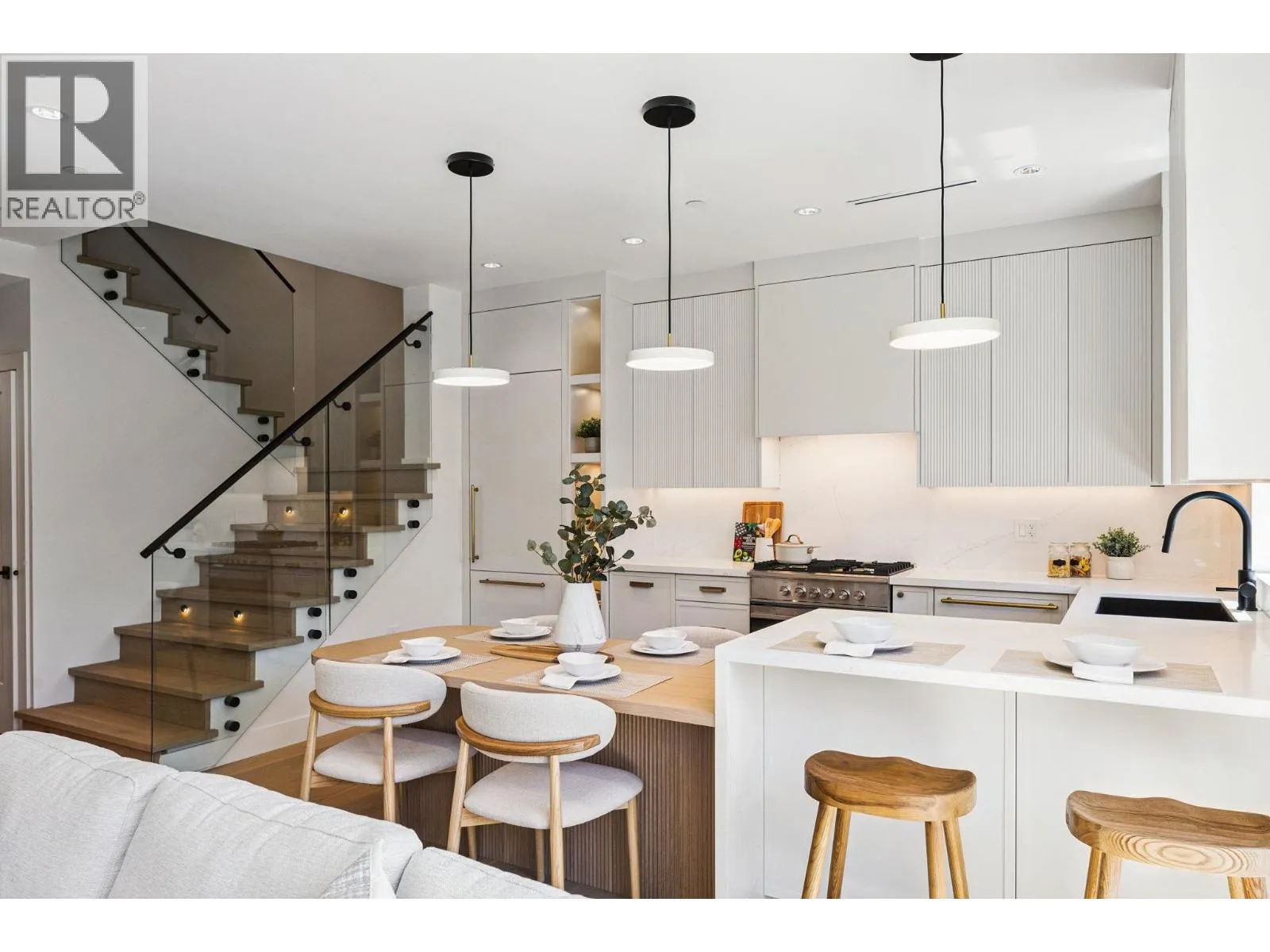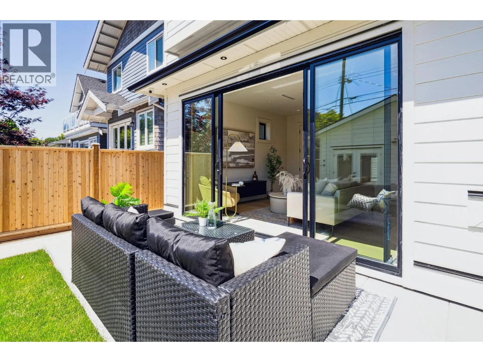 BACK UNIT SOUTH FACING DUPLEX in the Main area-3 bed, 3 . 5 bath home ftrs bright& well-designed living in one of Vancouver's top neighbourhoods . Enjoy an open layout w/custom built-in, entry closet, a dedicated dining area, custom designed modern kitchen with premium panel -ready appliances, breakfast bar. Large patio door leads indoor living space open to the bright south facing patio in the beautiful spacious backyard, BBQ hood-up ready . Great size master bedroom (king bed) with custom-made built in cabinet, double sinks bath. On the top floor, step out to a south covered oversized balcony for year-round use. Enjoy modern living in trendy MAIN ST-just steps from Oakridge Mall, Queen Elizabeth Park, vibrant restaurants and shopping. Extra storage on mainfloor & Heated garage for bonus! Open House Saturday ( Nov 15) 2-4 p.m. (id:27476)