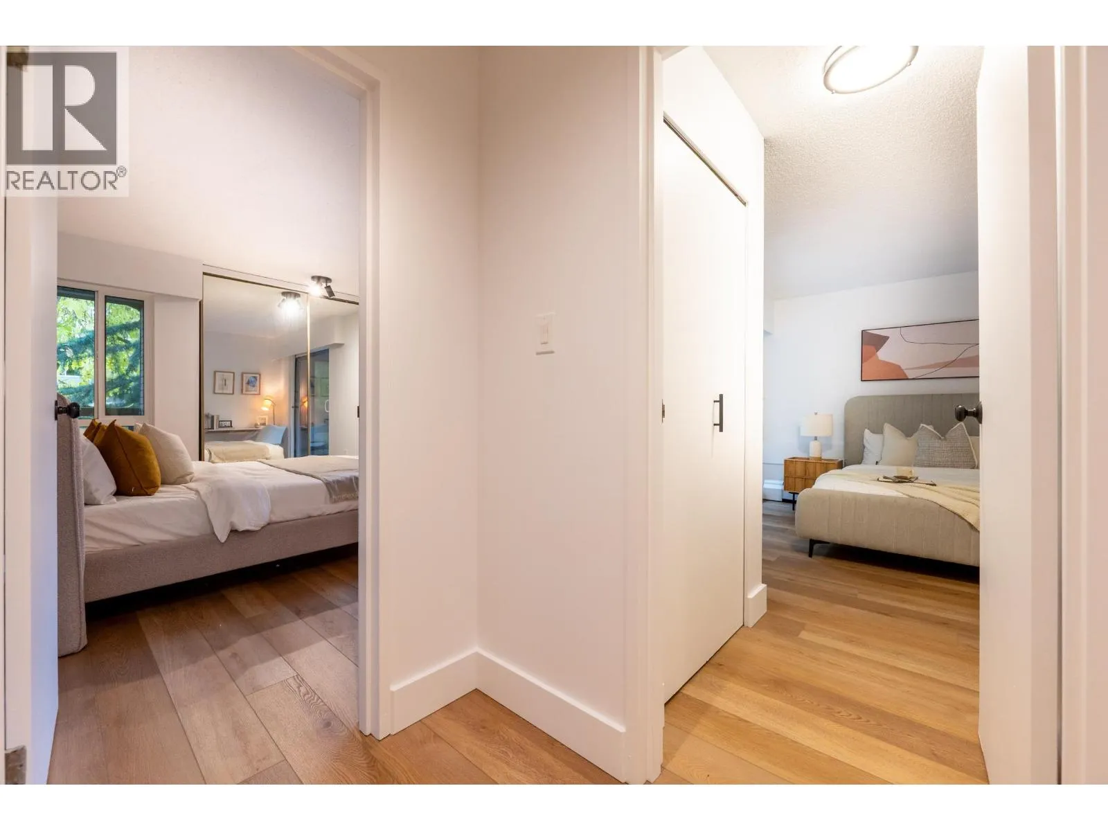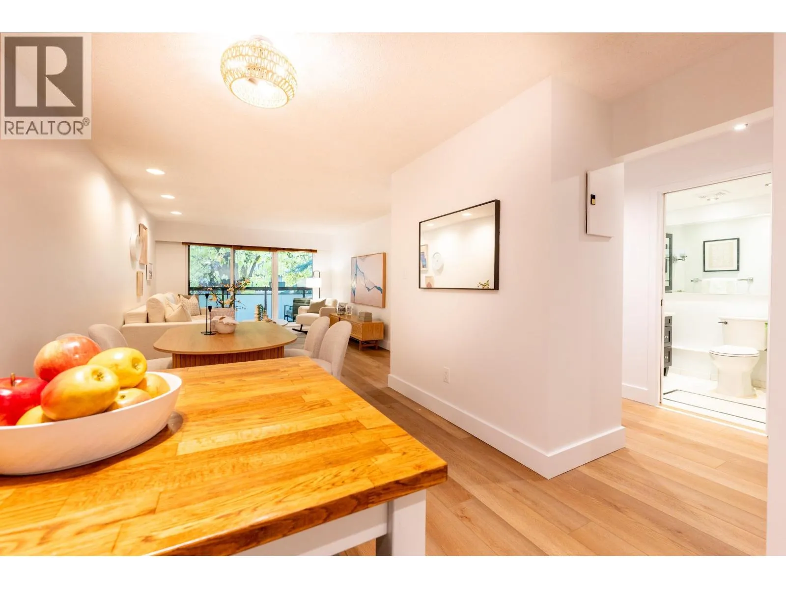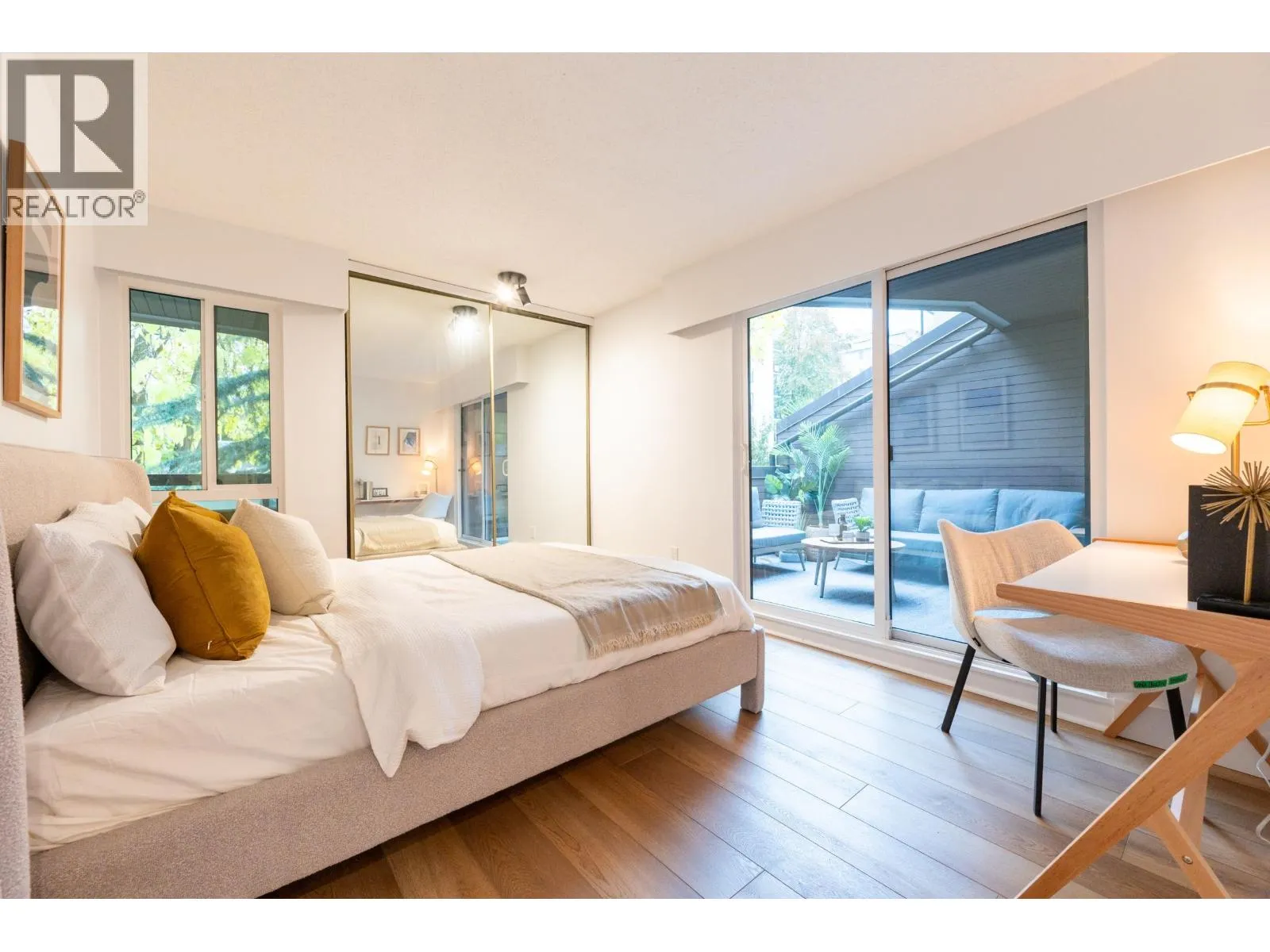 Tucked away west of Denman, this spacious 2-bedroom home offers rare privacy and walkability. Both bedrooms open onto a unique patio framed by mature trees. A 2nd patio extends off the main living area - ideal for summer dinners or year-round barbecues. Extensively renovated and move-in ready, this home features updated flooring, paint, light fixtures, kitchen appliances and bath finishes. Bright in summer, cozy in winter, and steps from English Bay, Stanley Park, and Denman Street´s shops, cafés, and groceries. Includes 1 parking space and a storage locker. A relaxed, well-kept building with a professional and friendly vibe-an inviting retreat in the heart of the West End. Open House: Sun Nov 16th 3:30-4:30pm (id:27476)