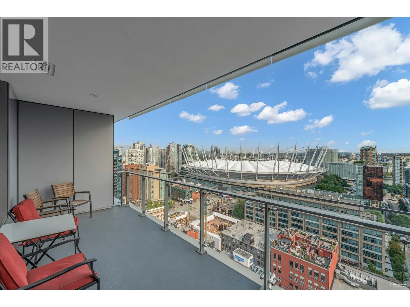 Embrace upscale Yaletown living at The Smithe by BOFFO! This impressive 2-bedroom, 2-bathroom suite faces south, offering views of BC Place and a hint of water. Includes 1 parking spot and storage locker. The home showcases sophisticated details like fully tiled marble floors, a Savant smart home system with integrated Nest thermostats, air conditioning, custom Italian cabinetry, and illuminated built-in wardrobes. Bathrooms feature heated floors, and the spacious patio is perfect for relaxation. Equipped with premium Wolf and Sub-Zero appliances, plus a wine fridge. Residents enjoy incredible amenities: a full-service concierge, over 4,000 square feet of indoor and outdoor lounges, a fitness center, and a unique bike elevator with a workshop. Located just steps from EVERYTHING! (id:27476)