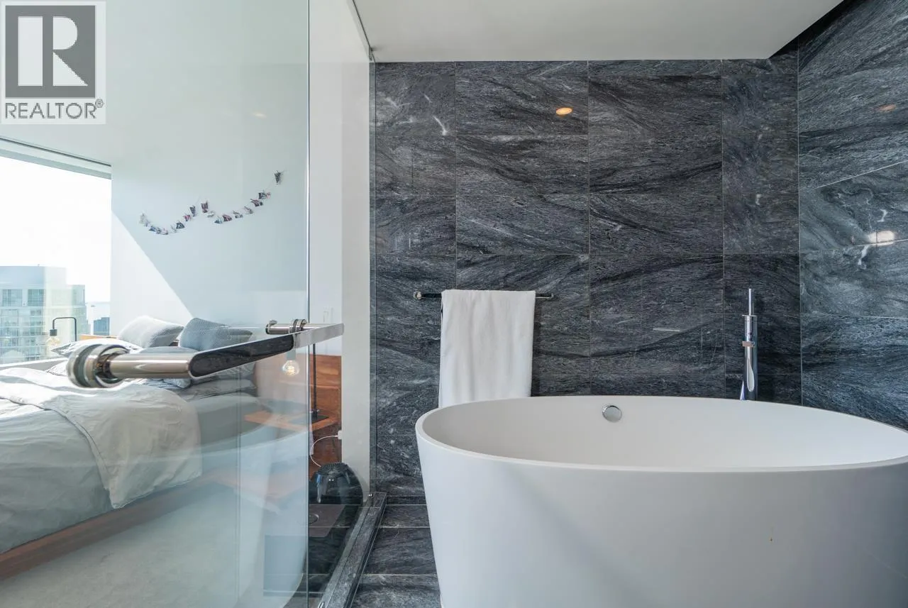 Stunning 180 degree Unimpeded VIEWS of Ocean, English Bay, North-Shore Mountains, Lions Gate Bridge & Stanley Park, Coal Harbour. Designed by Arthur Erickson, sitting in the heart of Downtown Vancouver. This luxurious 2 bdrms & 3 bathrooms (all ensuites) plus den feature 1,167 sqft living spaces, Italian kitchen with Gaggenau appliances, wine fridge, steam oven. Upgraded with Italian closets, art lighting, wall paper. Enjoy the convenience of A/C, and smart home technology. World class amenities: Drai's pool bar & night club, Mott 32 fine dining Chinese restaurant,Spa, Tecnogym fitness Centre, Rolls Royce hotel car services and 24/7 Concierge. 1 PARKING and 1 locker. Absolutely AMAZING! (id:27476)