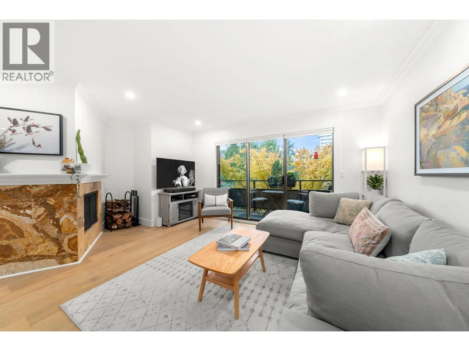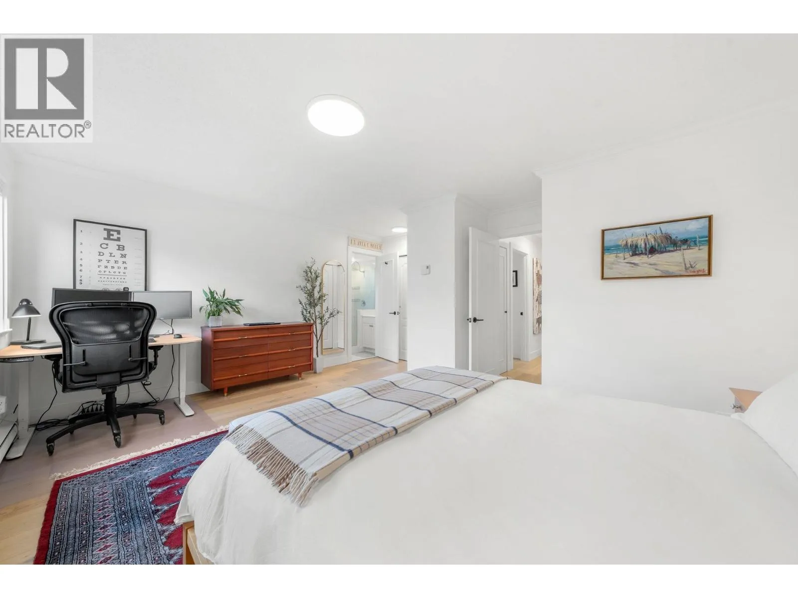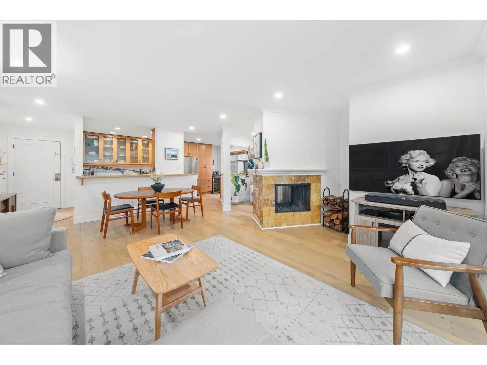 Boutique, 5 unit strata in a no fuss, easy maintenance building! Suite 201 occupies the entire front half of the floor, allowing for windows on 3 sides of the home. At nearly 1,200 sqft, there are zero compromises on space. The suite has been caringly updated & features wide plank Oak hardwood, updated lighting, blinds, paint & trim throughout. Enjoy open concept living & a large L shaped deck for summer evenings. Features include a dual-sided f/p, cozy den, & large updated kitchen with coffee bar area. The bedrooms are spacious, including a primary with dual closets & a full ensuite. Tons of in suite storage, plus 2 external lockers & 1 parking. Pets allowed & in suite laundry allowed with strata approval. Roof recently replaced! Walking distance to future Broadway line and VGH! (id:27476)